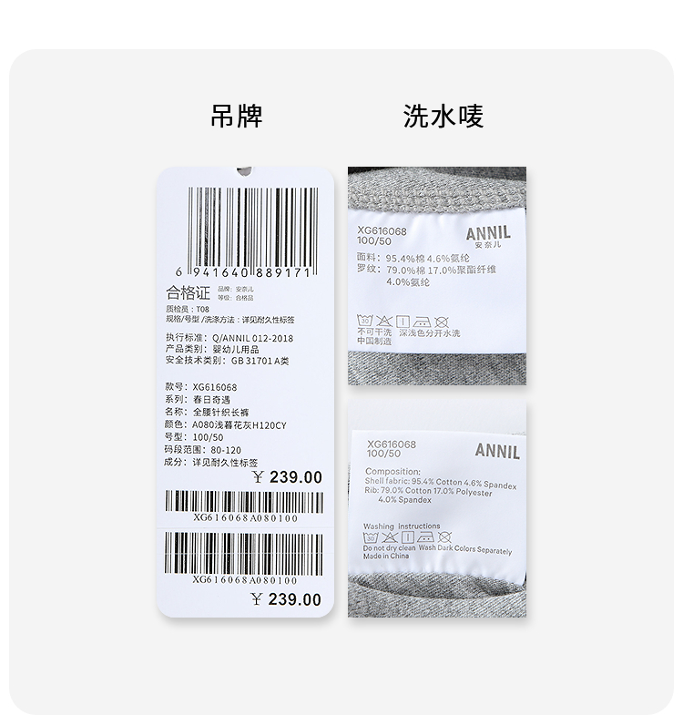 【实体店同款】女童全腰针织长裤春季新款安奈儿童装XG616068