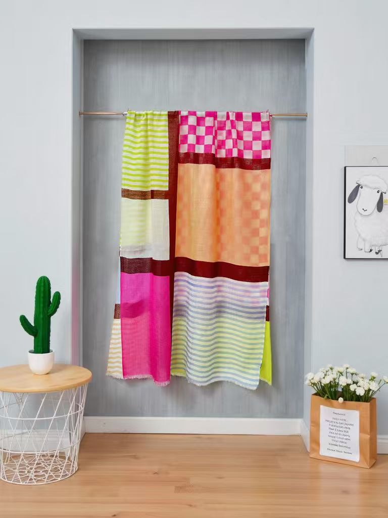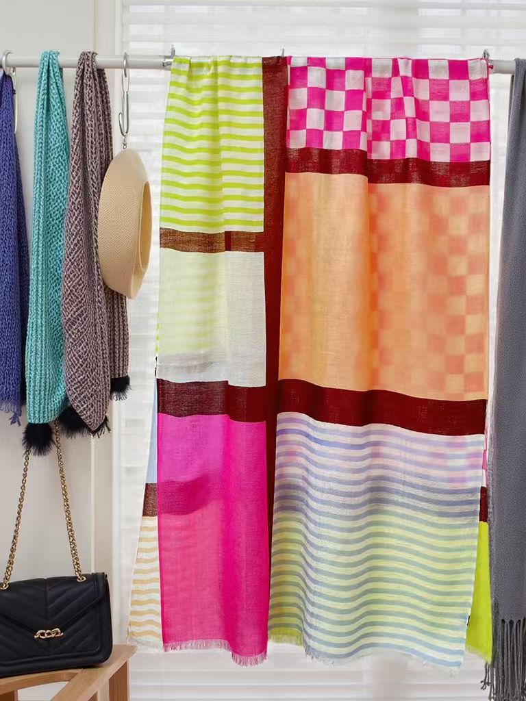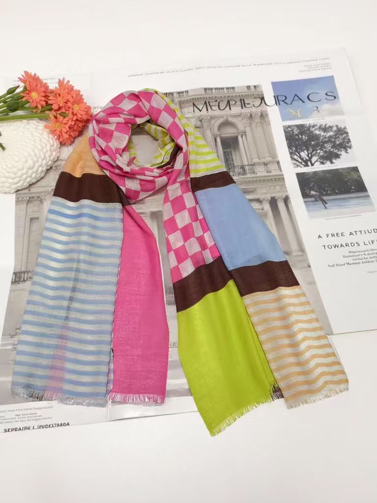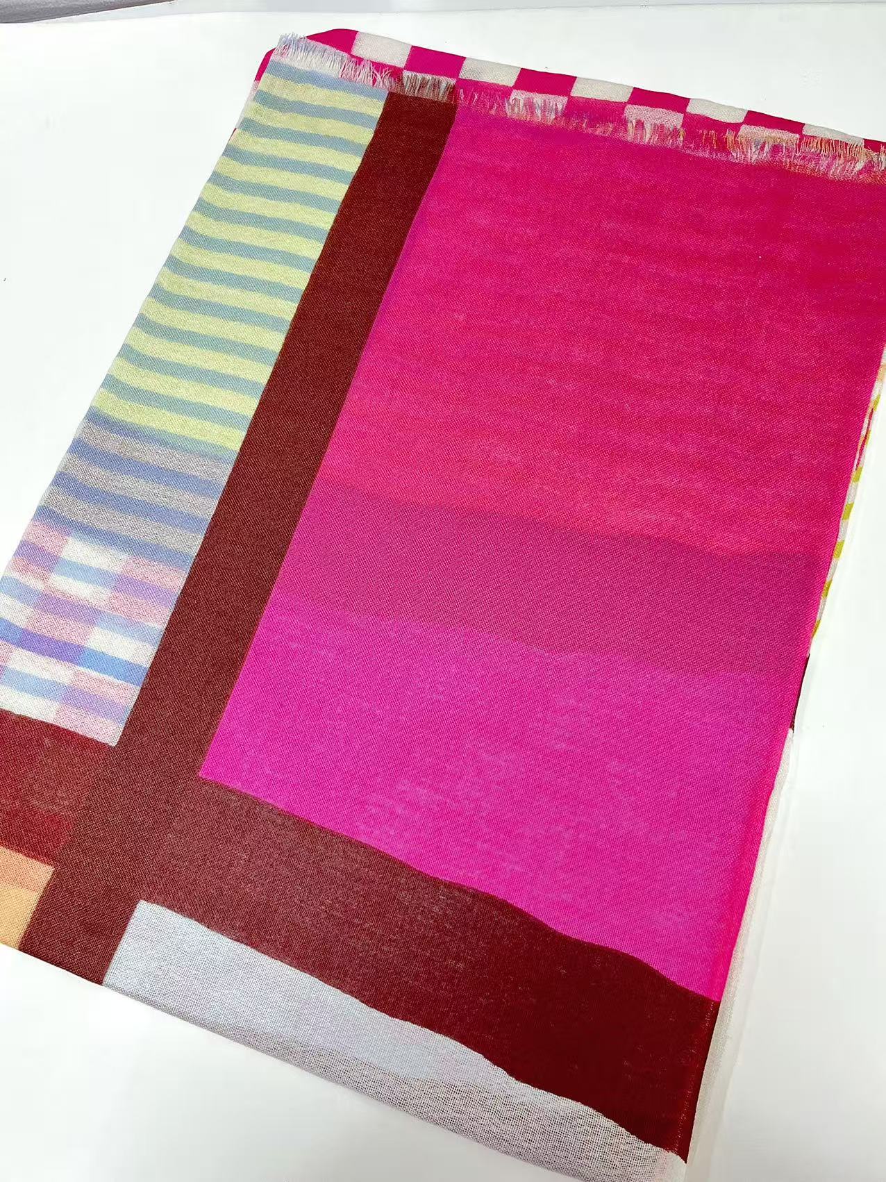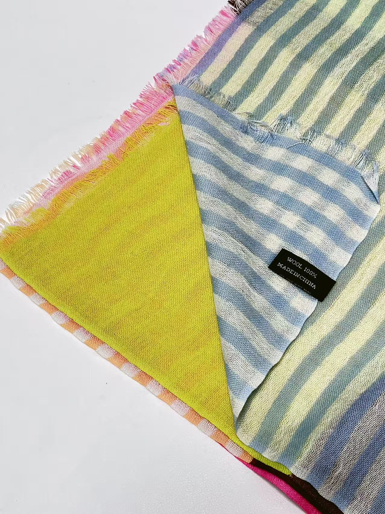 {特卖}100%羊毛围巾花型三十二彩条格撞色~喜出