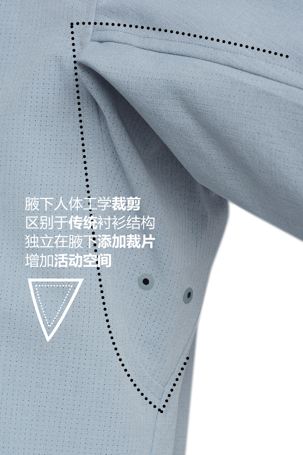 同时腋下配有激光透气孔,让夏日更加清爽