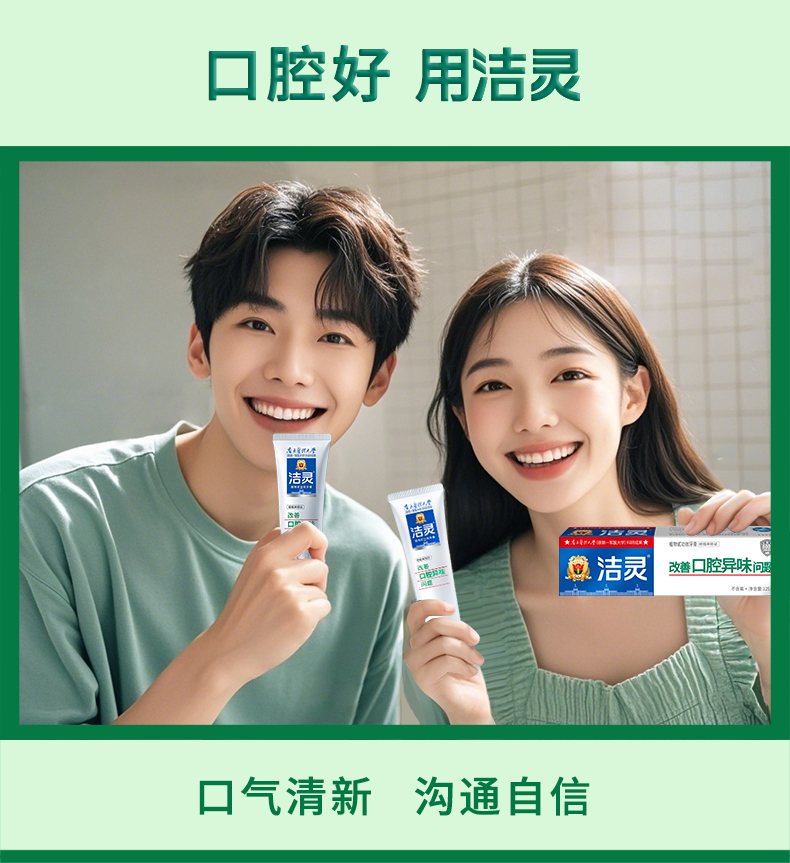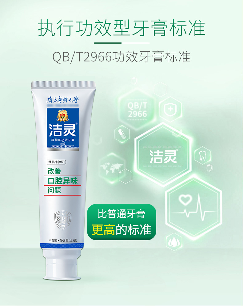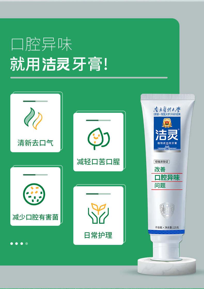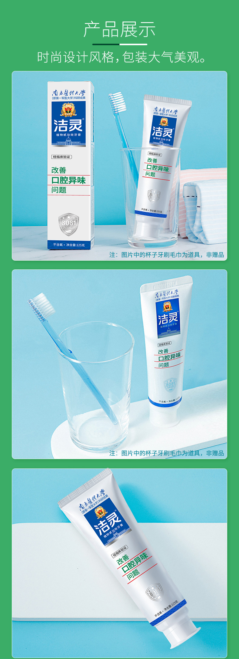 洁灵改善口腔异味问题牙膏125g 成人清新口气去口臭口苦无氟