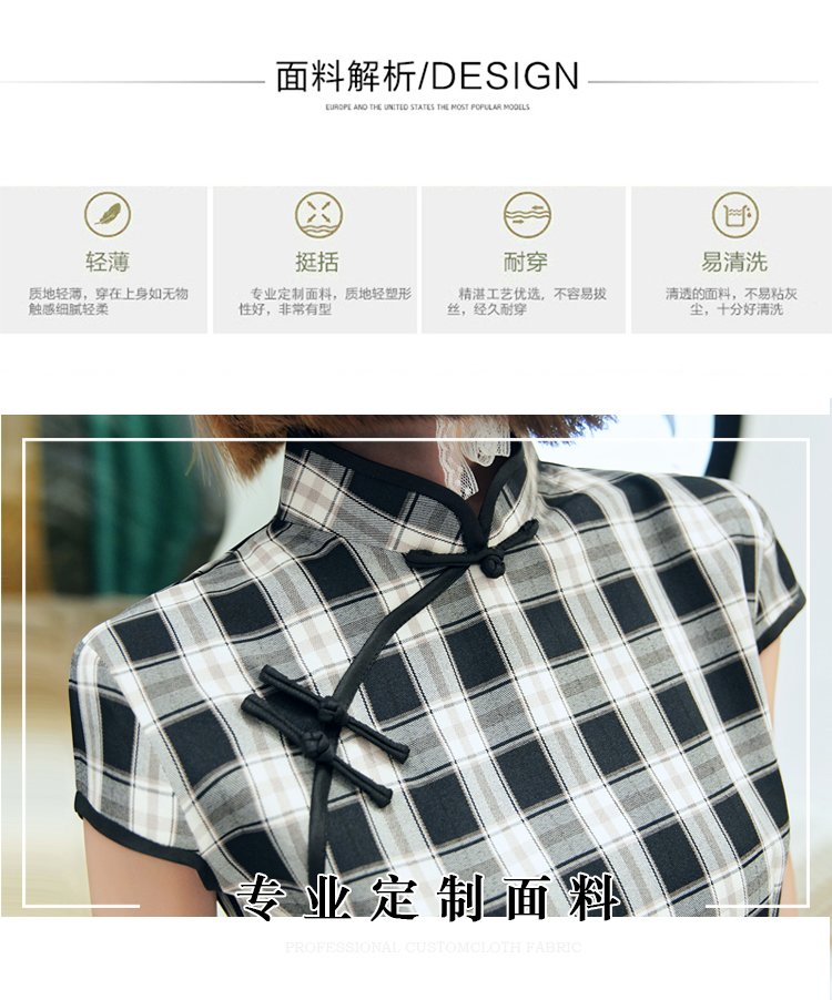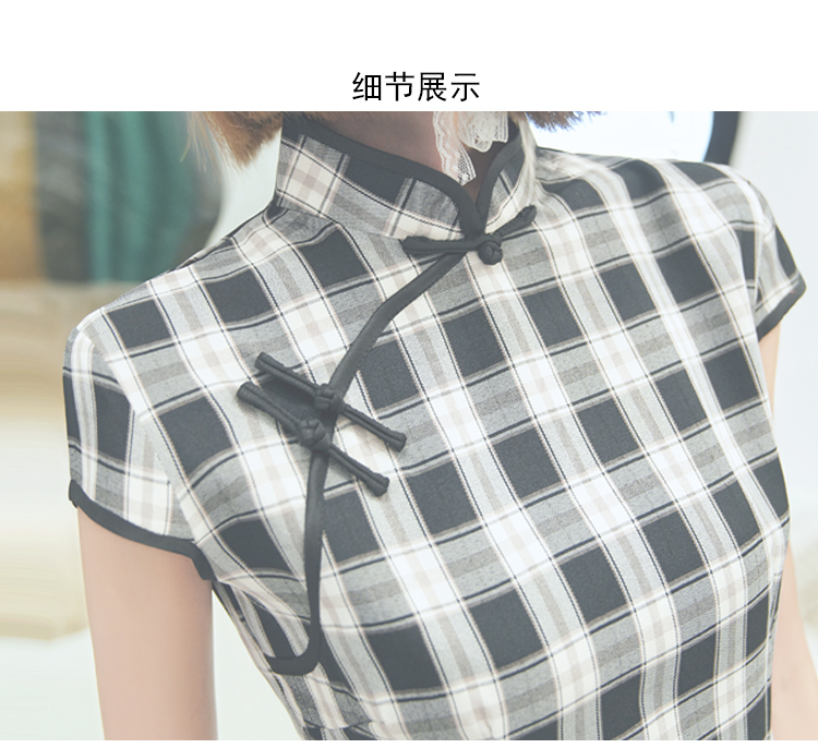 WZNH-YC65D87005新款时尚黑格子收腰显瘦短旗袍