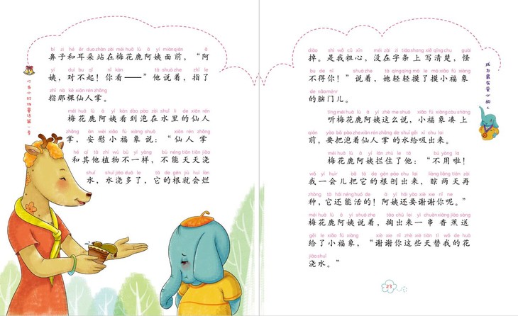 “叮当小铃铛童话第一季”是一套励志童话书,也是一套儿童由看图画过渡到读文字的桥梁书。书中以小朋友们喜爱的动物呼噜猫、萝卜兔、米喜熊、小福象为主人公,写了涉及儿童成长各个方面的故事,将善良、爱心、友谊、诚实、勇敢、机智、分享等美好品质巧妙地融合进童话故事里,让小读者们能够在阅读中增长智慧,增强信心、敢于自我肯定、勇于战胜困难。 书中插图色彩明亮,形象可爱,再加上注音,是专为学龄前儿童和小学一、二年级学生设计的。每个故事后设有“悄悄话板块”,起到画龙点睛的作用,引导小读者对本篇故事的主题进行思考和领悟,也特别适合父母和孩子亲子阅读时引发讨论话题,起到抛砖引玉的作用。