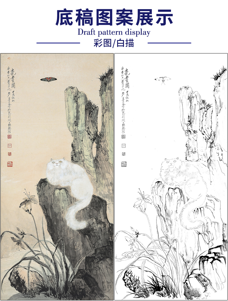于非闇花鸟工笔画白描底稿《耄耋图》临摹勾线高清打印稿HS37