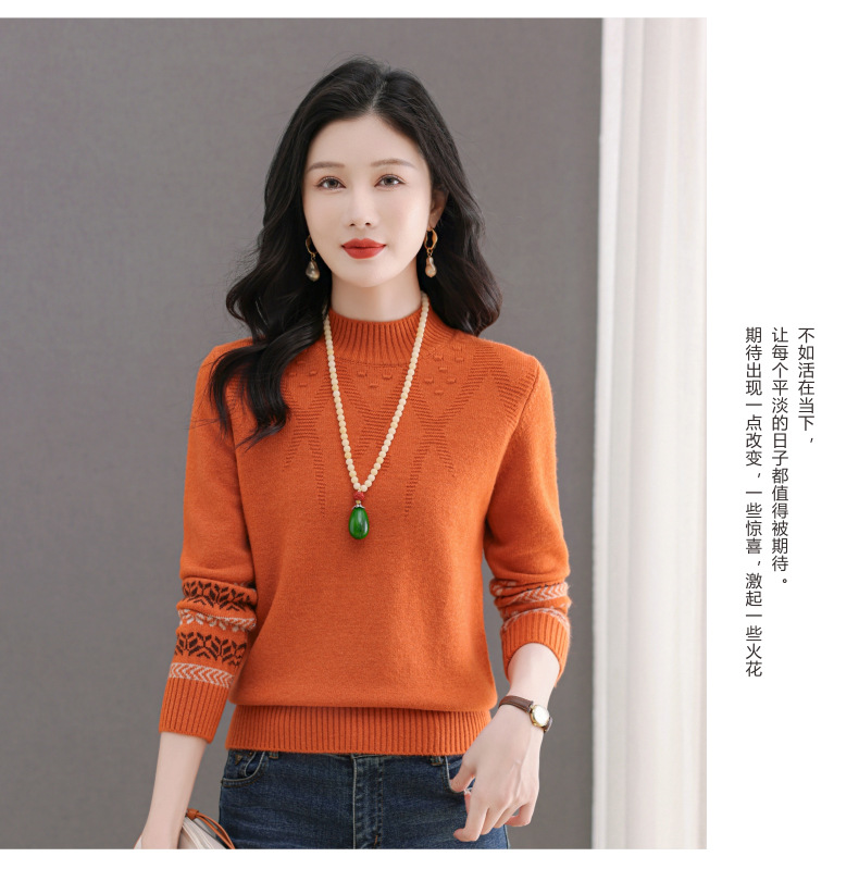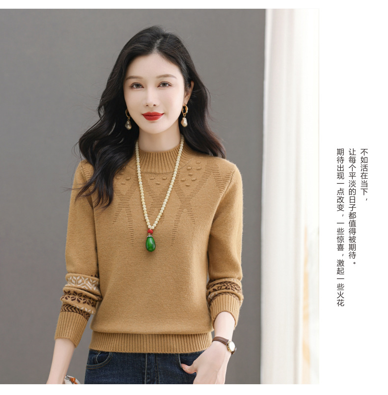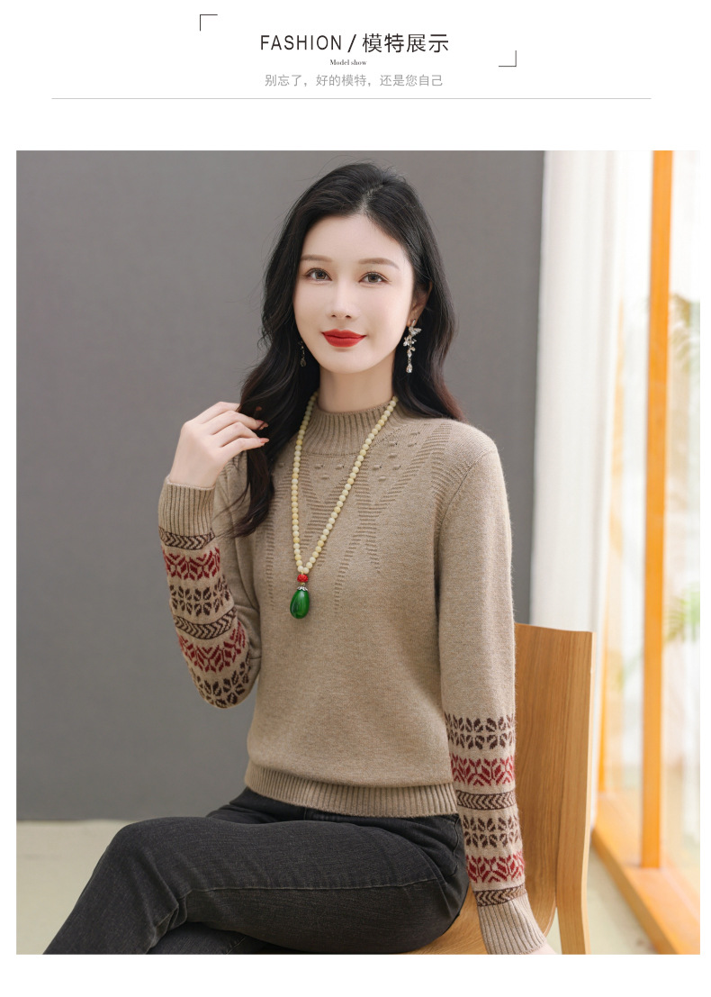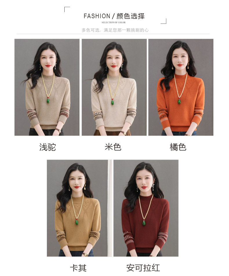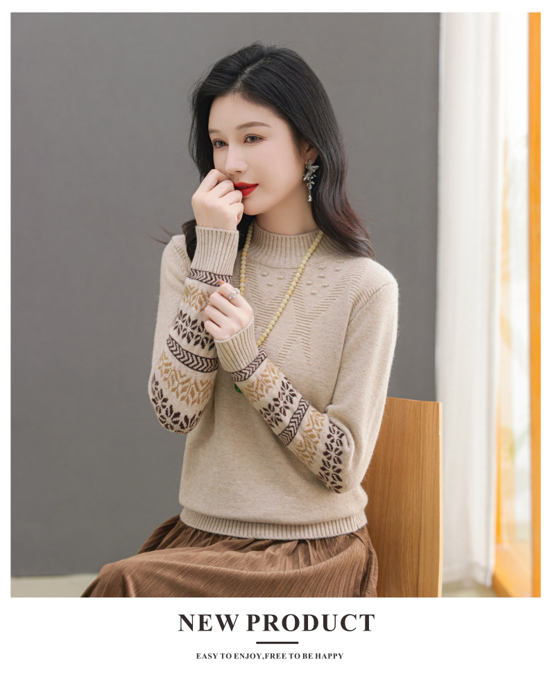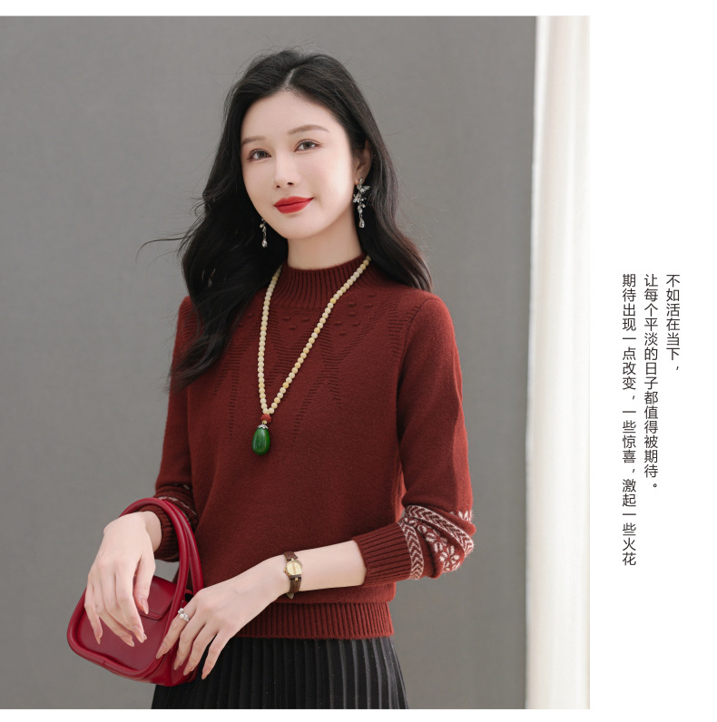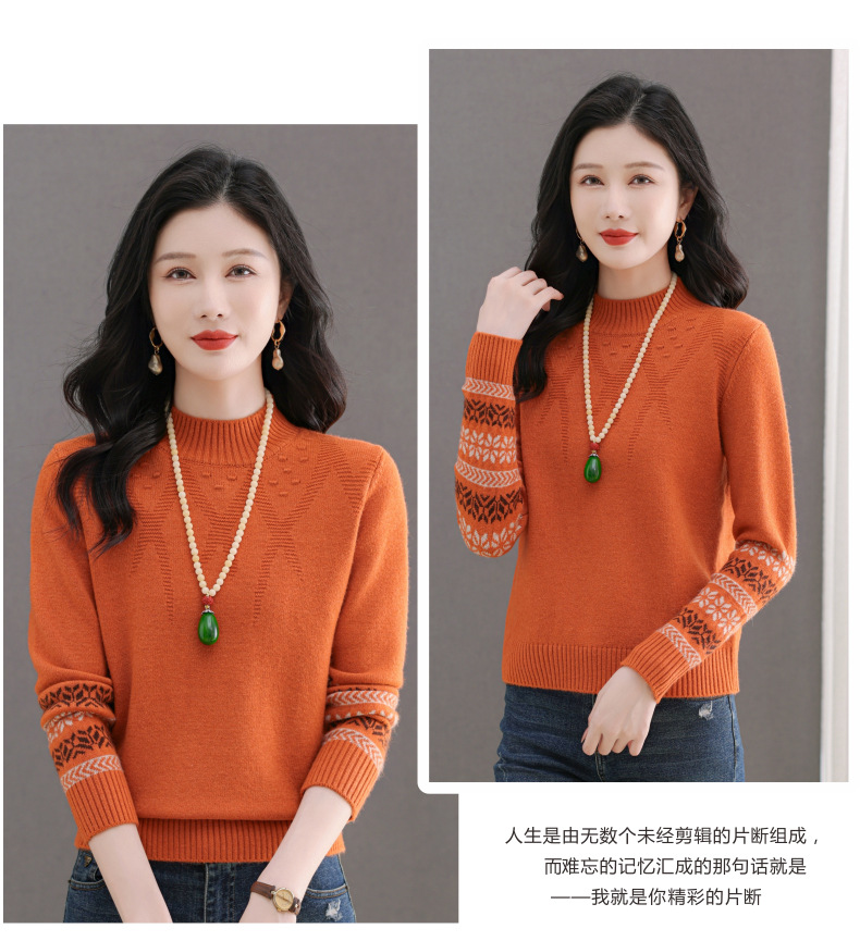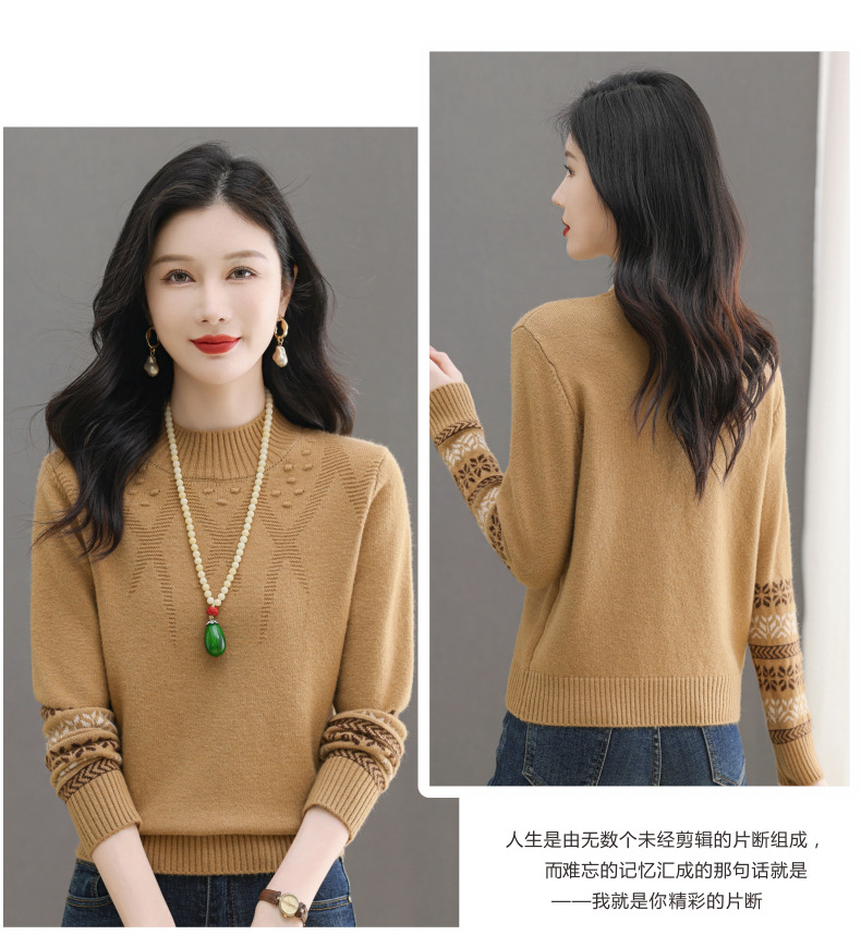 CC-103-66139半高领羊毛打底衫女秋冬洋气内搭提花毛衣短款显瘦针织衫