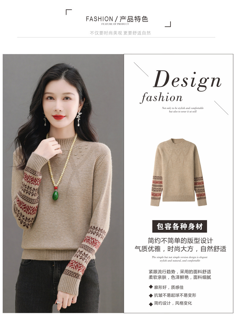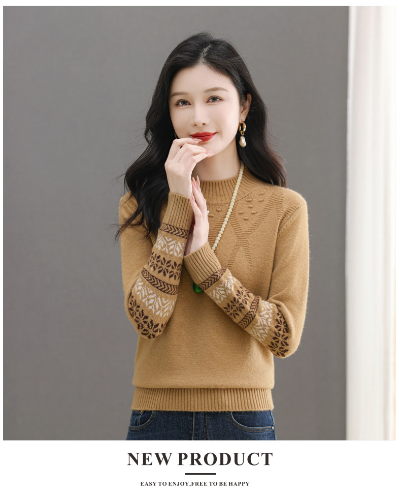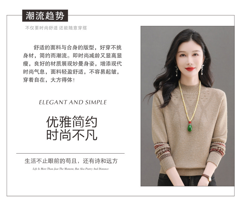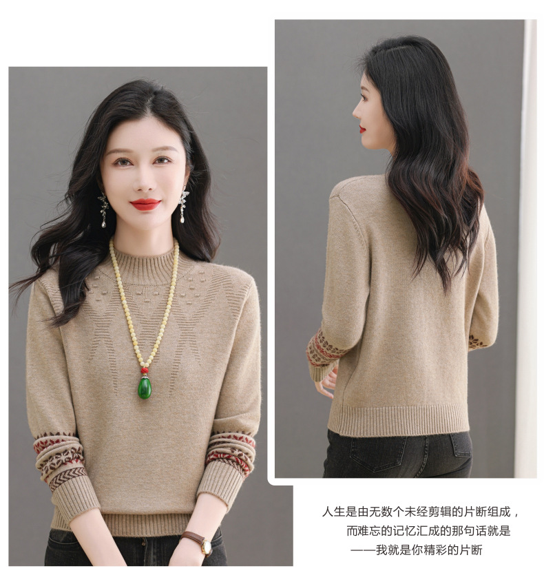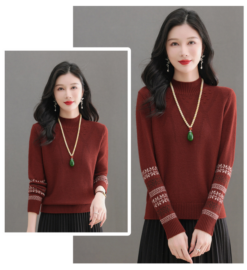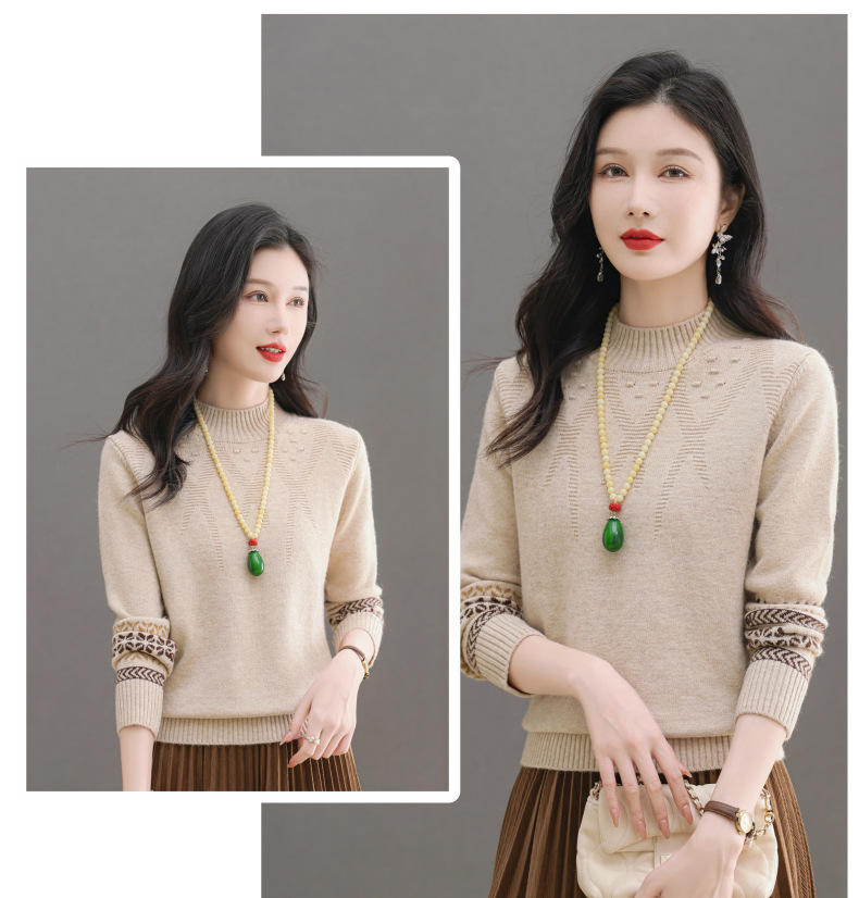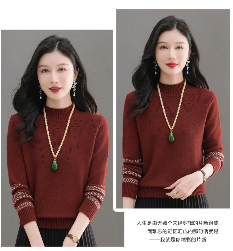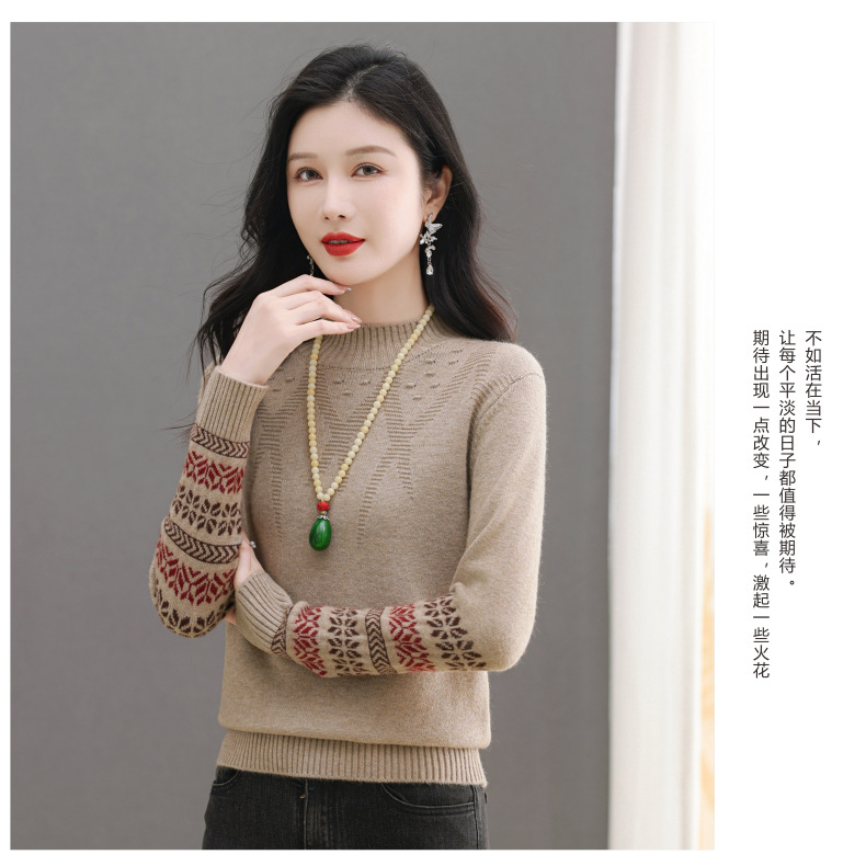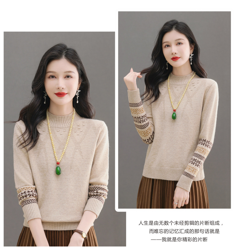 CC-103-66139半高领羊毛打底衫女秋冬洋气内搭提花毛衣短款显瘦针织衫