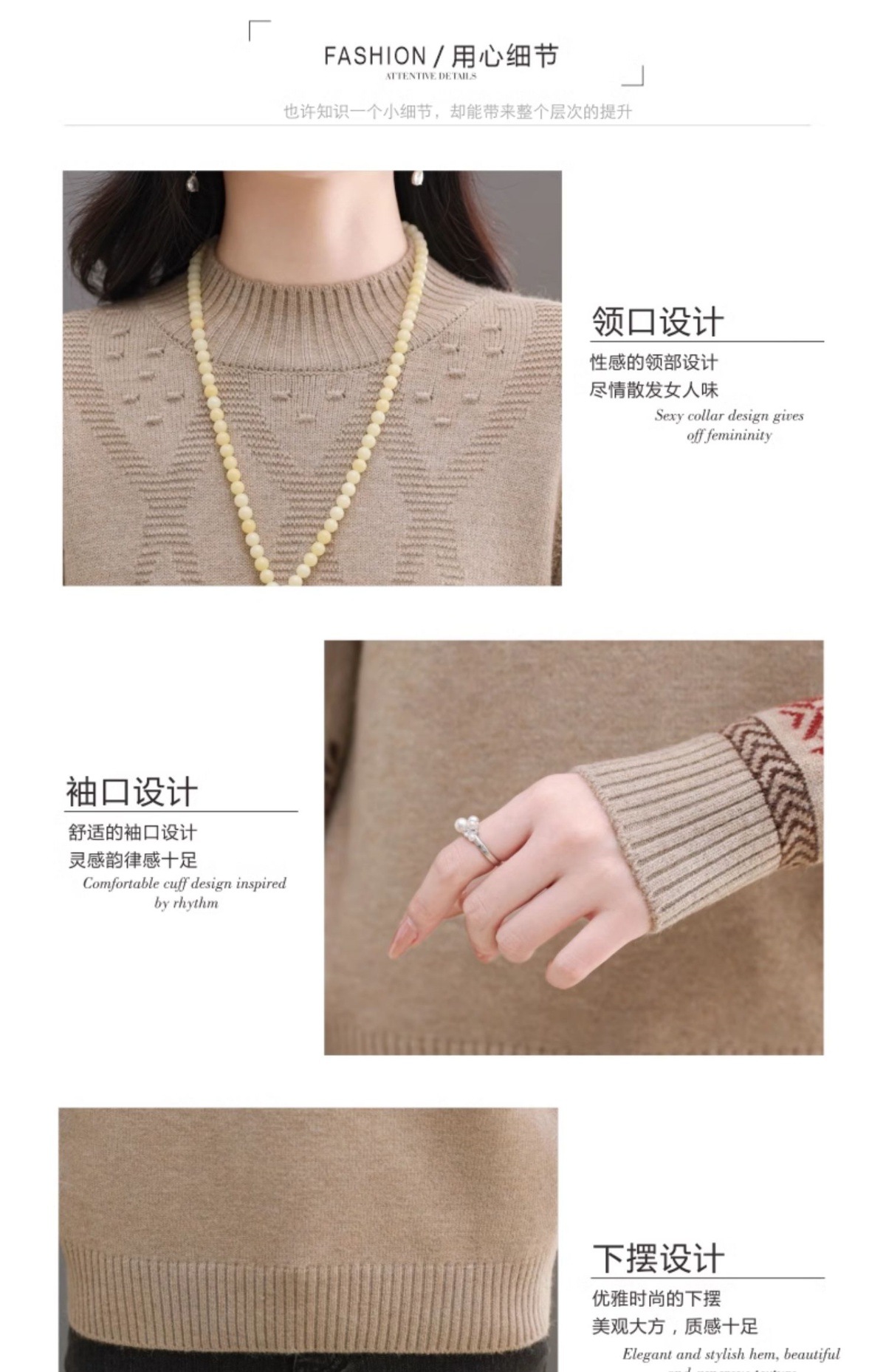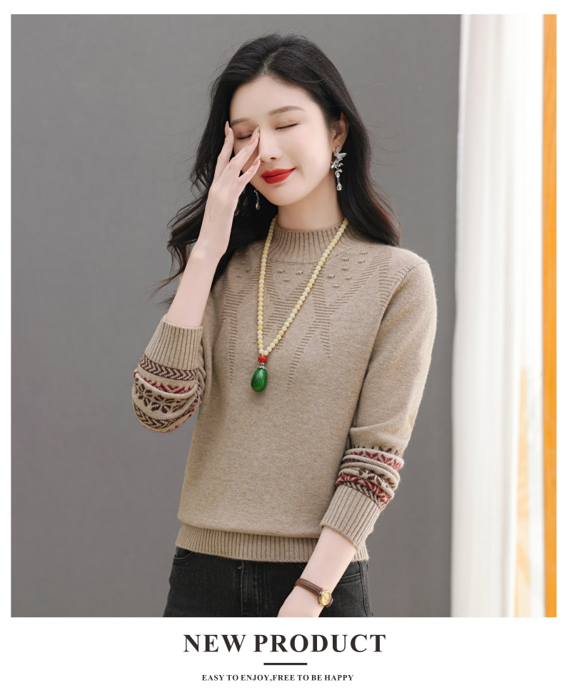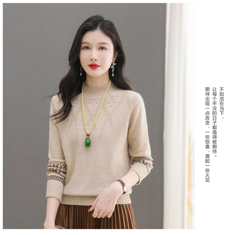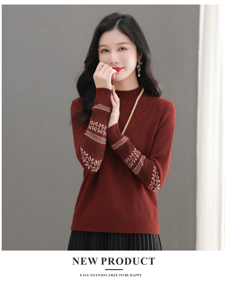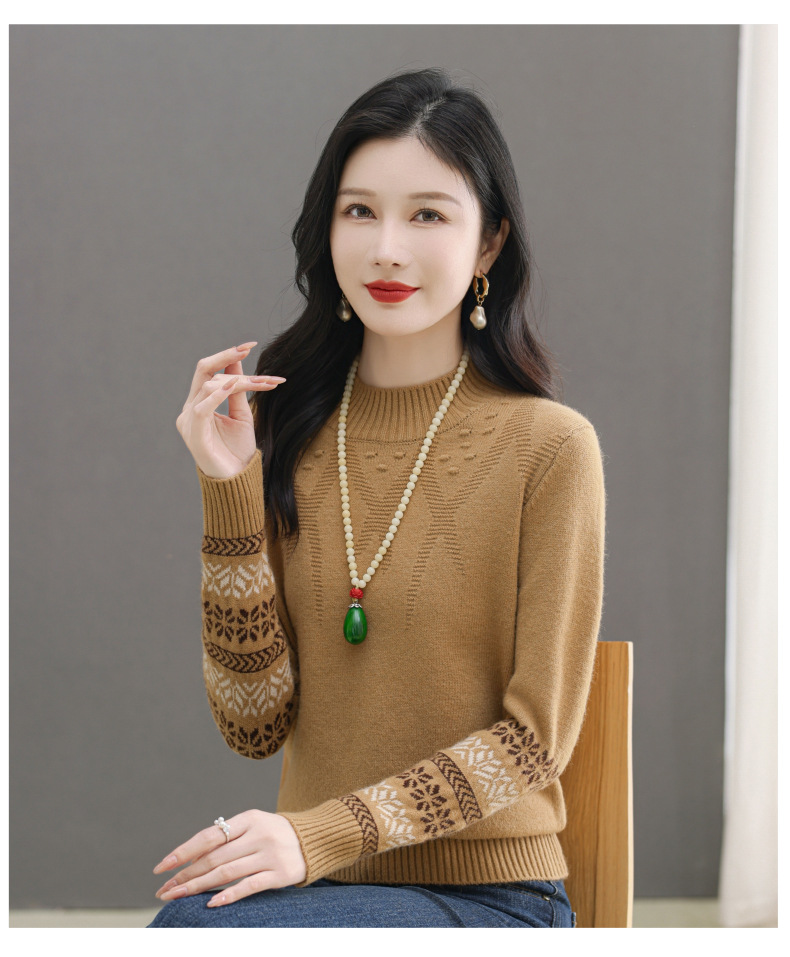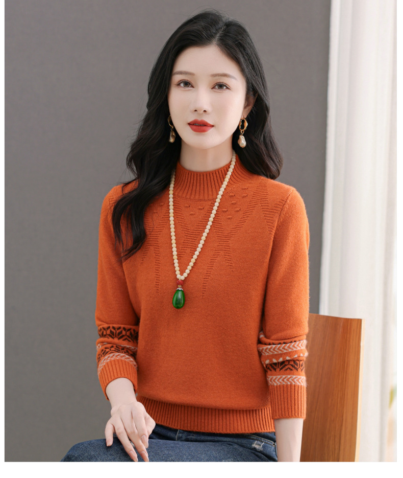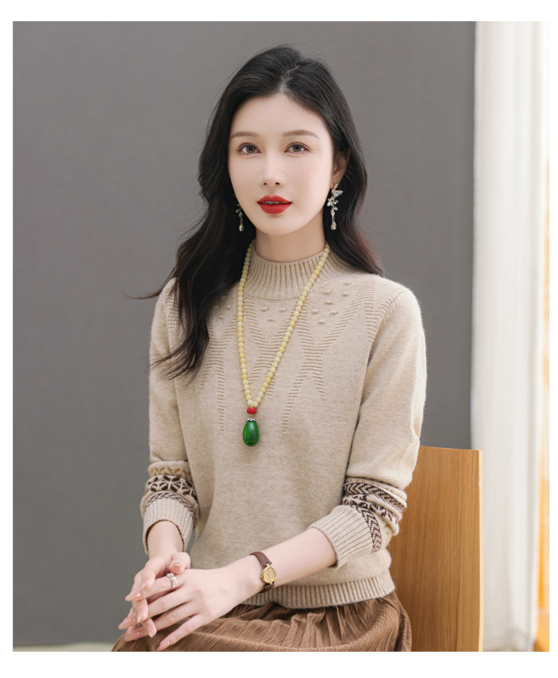 CC-103-66139半高领羊毛打底衫女秋冬洋气内搭提花毛衣短款显瘦针织衫