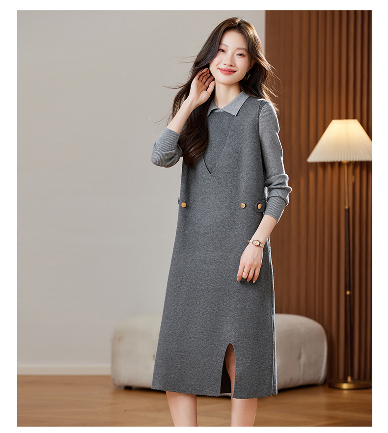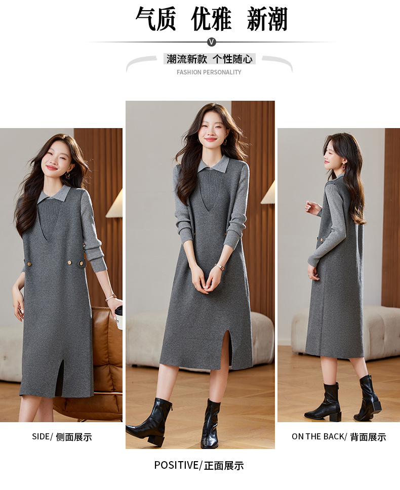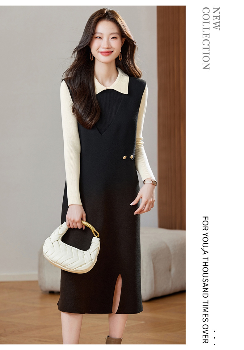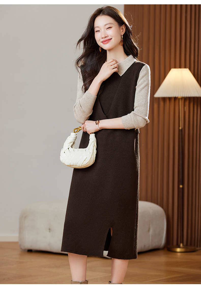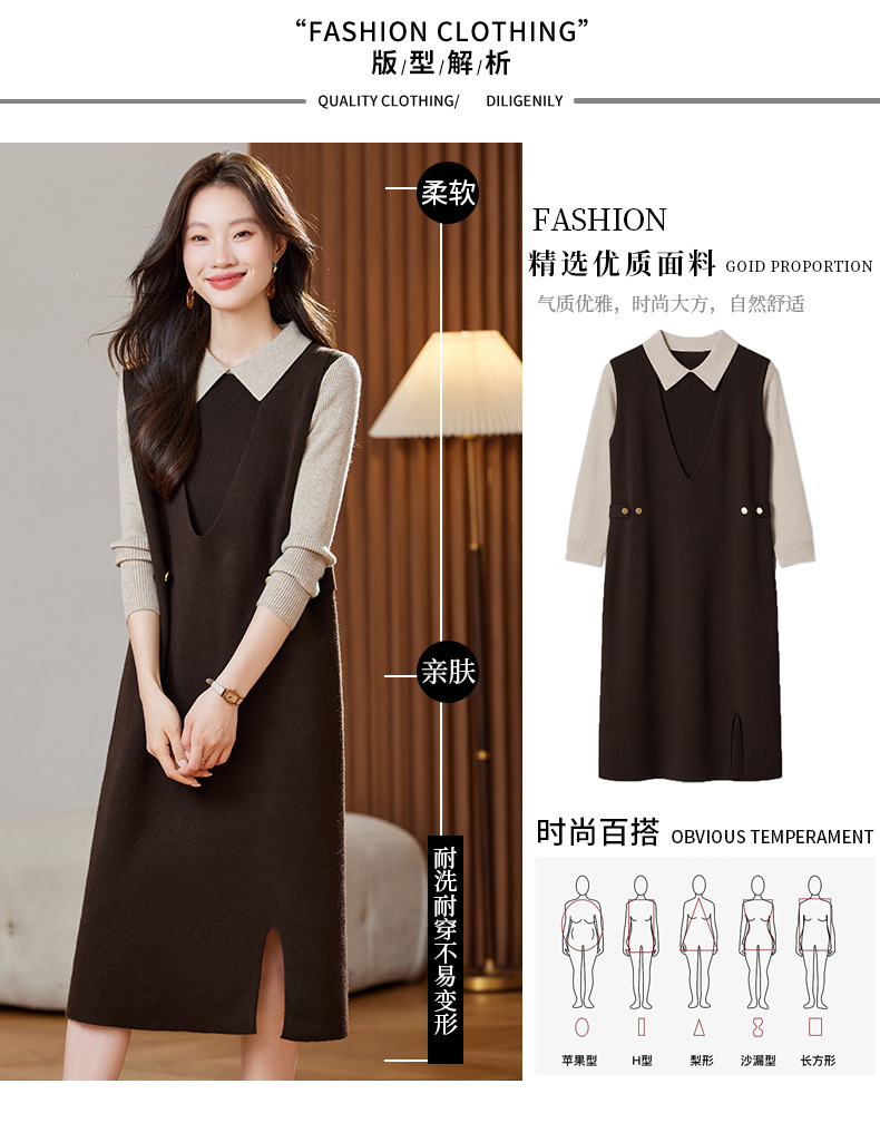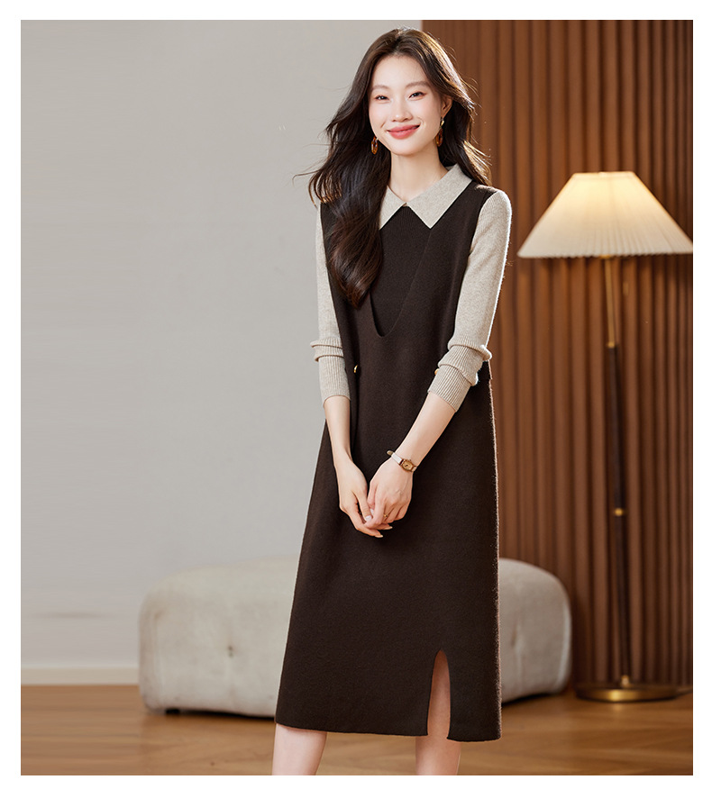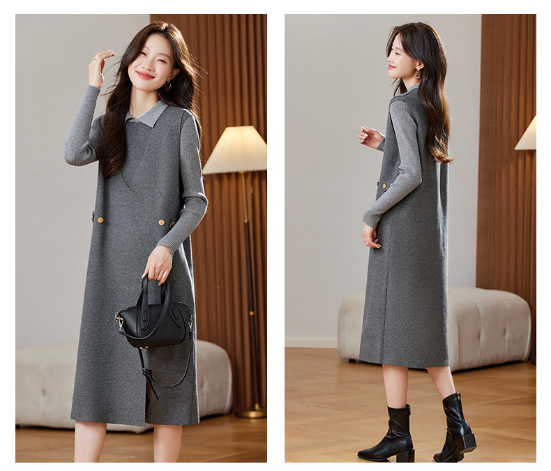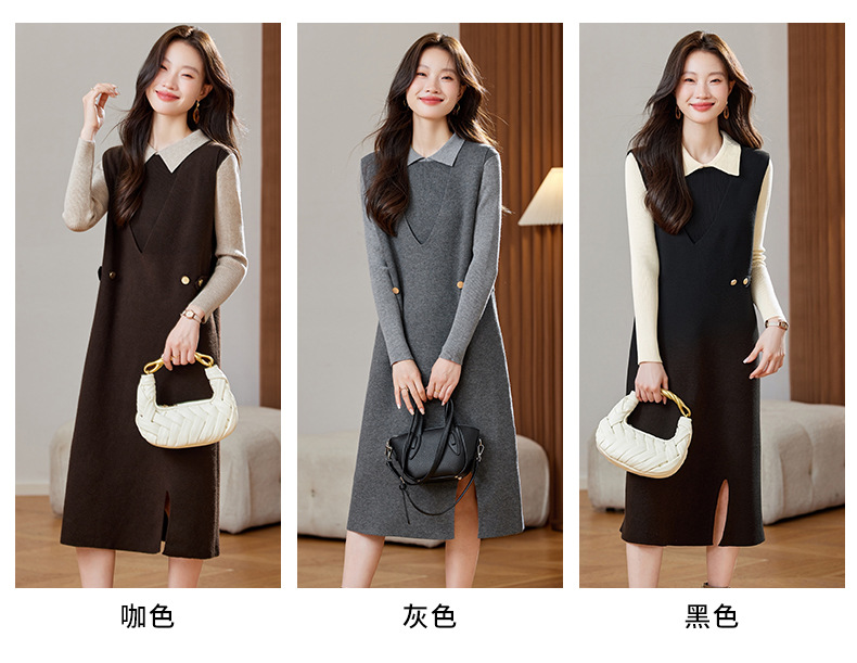 XFY-3130娃娃领针织连衣裙2025秋冬新款小个子高级感配大衣毛衣裙两件套装