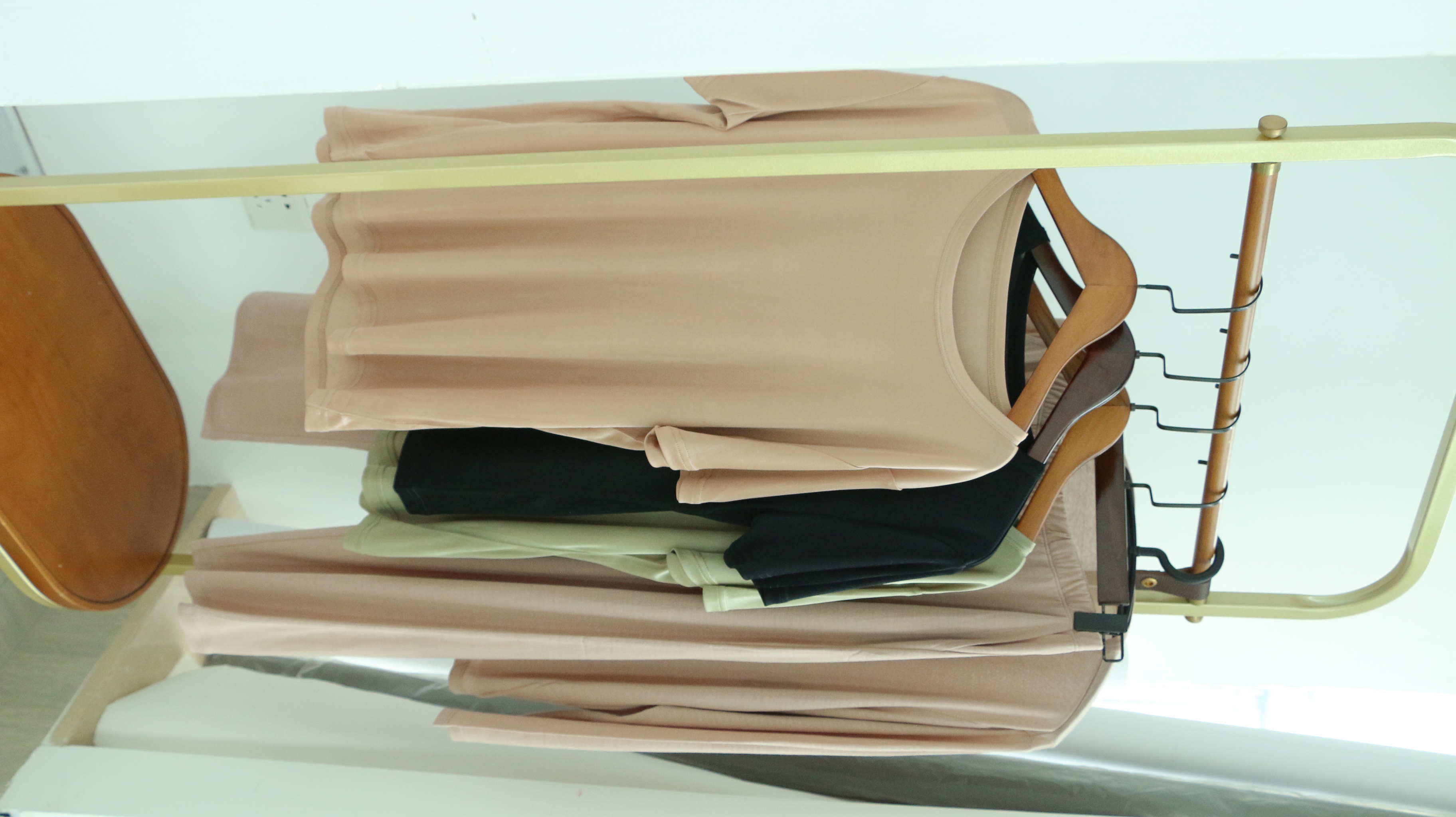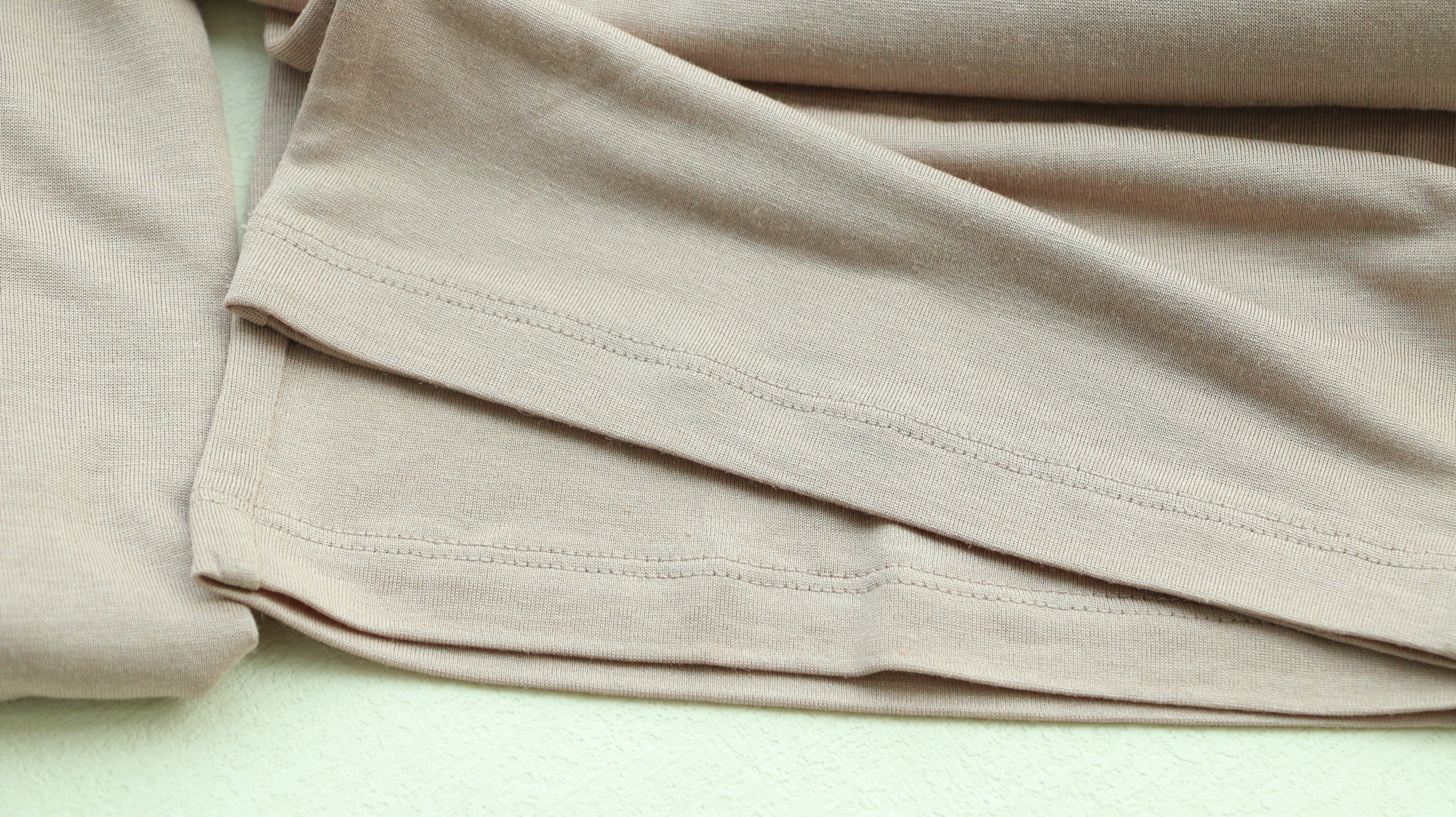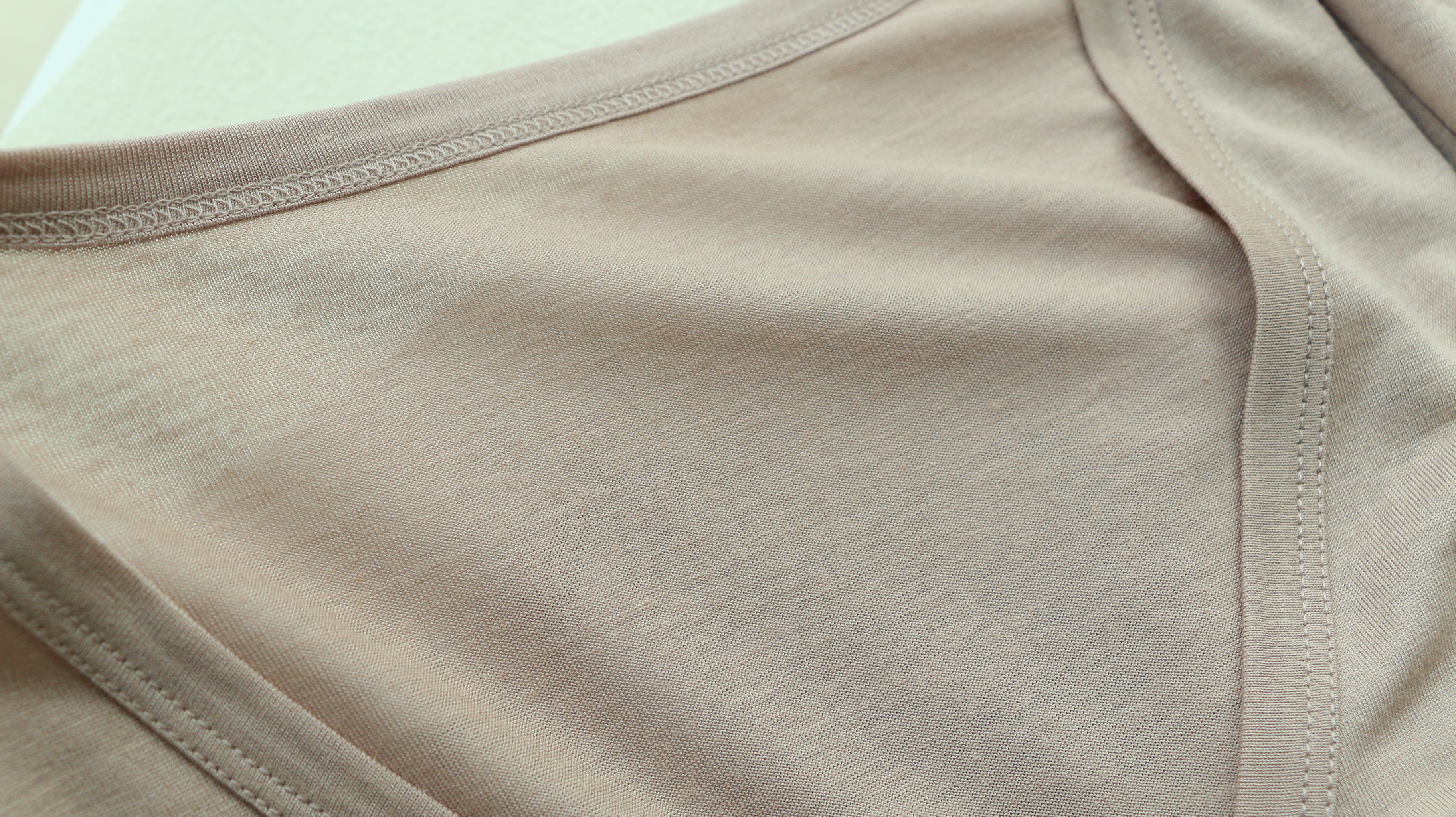 一款是4色的真丝+醋酸面料T恤,现在有绿色,灰色,黑色,卡其色,整体面料轻盈,丝滑,贴肤柔和,另外不是容易皱的质感,丝毫不会感觉邋遢。大圆领,带弹,睡眠时轻薄无量感的一件,适当保温。出门穿,就是一件极简的T,随意搭配下装。