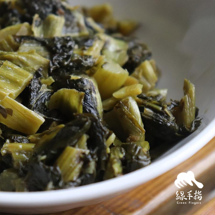 芥菜来自农场自产按照有机方式种植的芥菜和日晒的无碘盐,不含任何防腐剂、色素等添加剂。