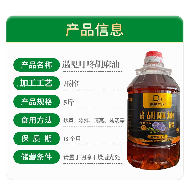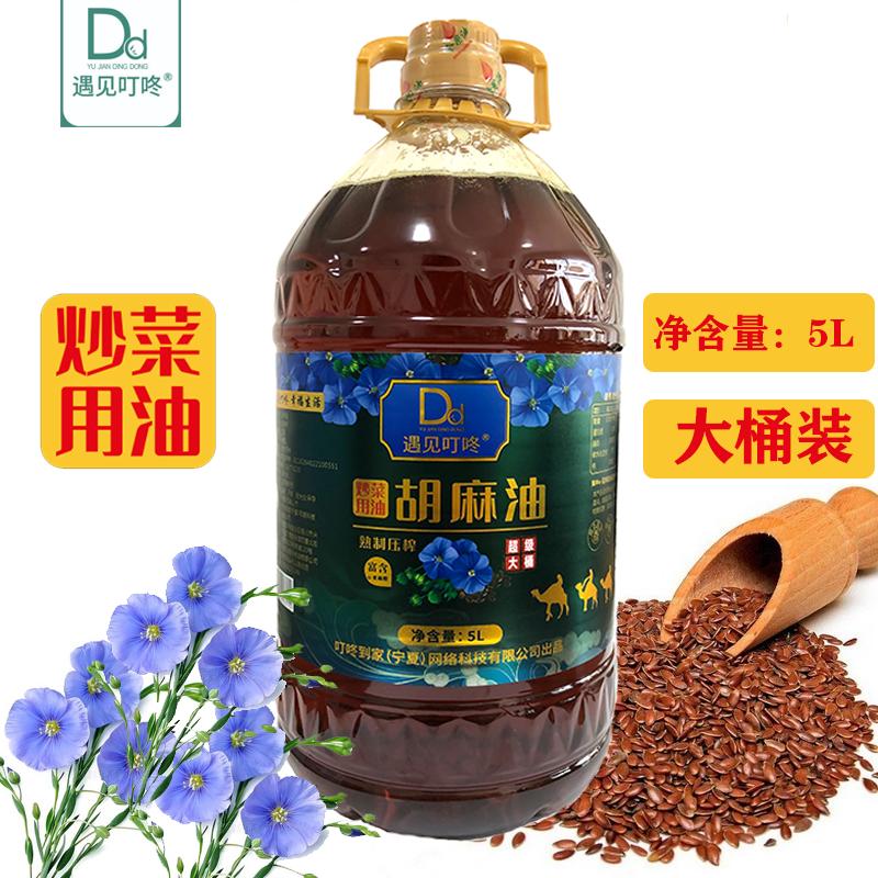 【源头工厂】5斤/桶正宗宁夏压榨浓香炒菜纯胡麻油熟榨亚麻籽食用油