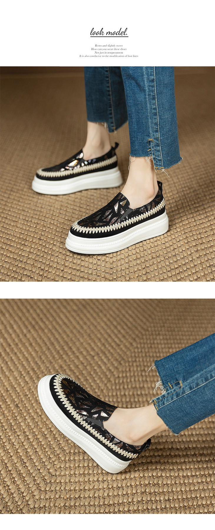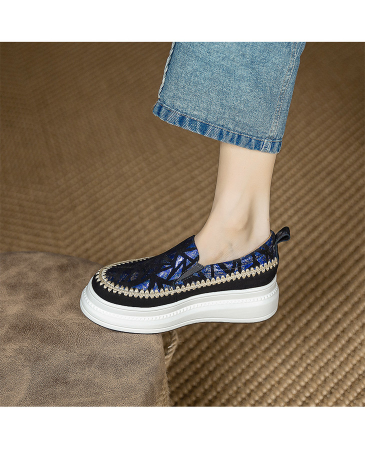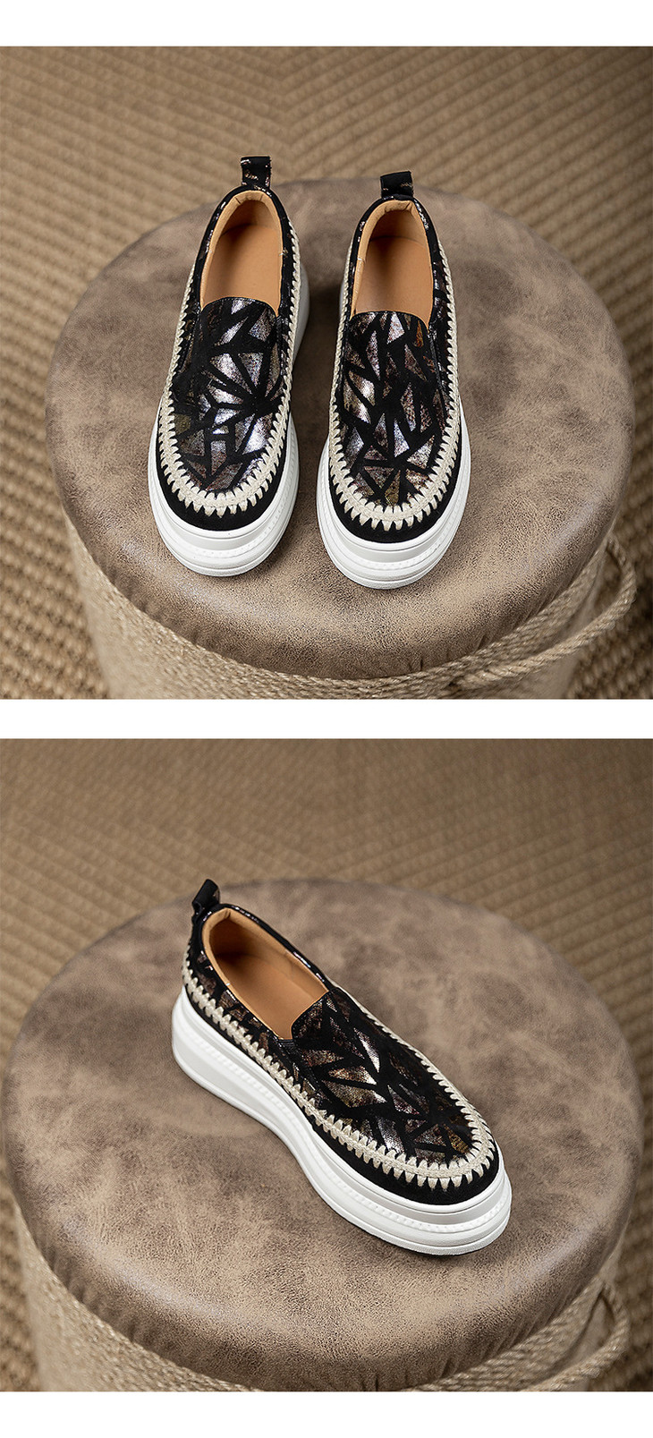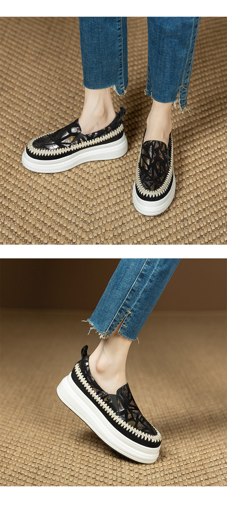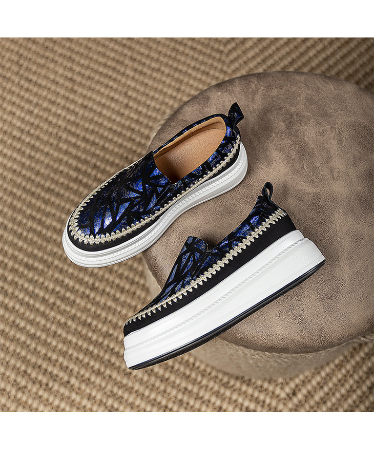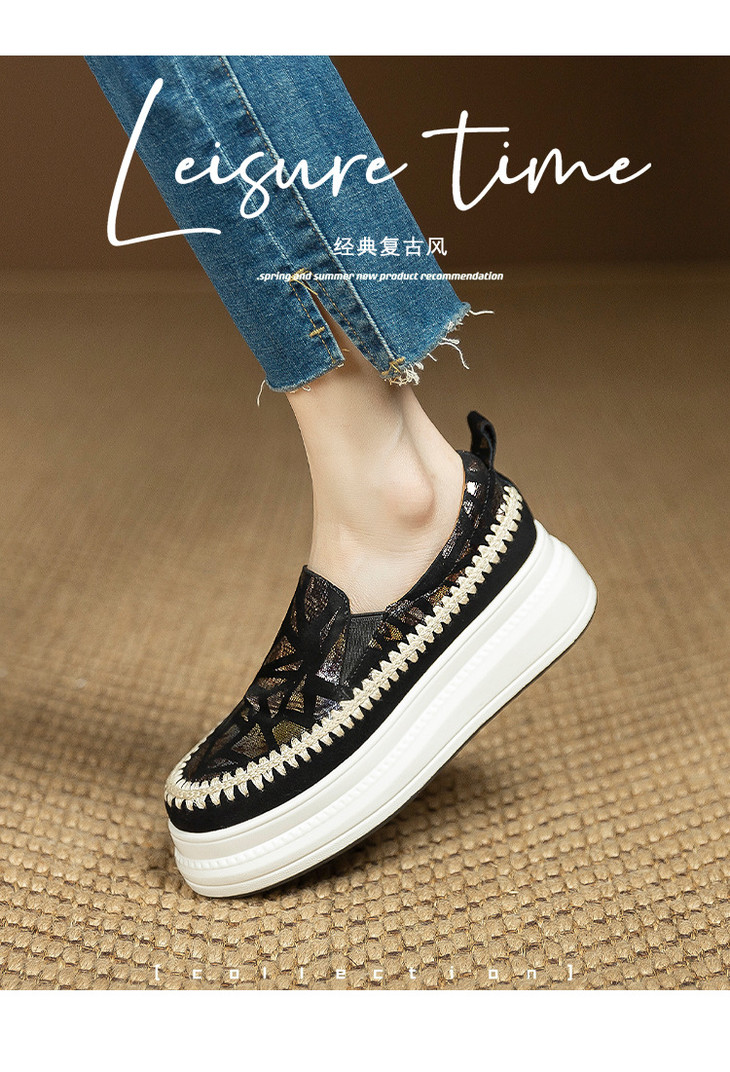 【预售5天】韩版潮洋气外穿春秋款单鞋,爆款真皮松糕鞋女厚底鞋休闲鞋黑色银色ZMXY&A6613-1