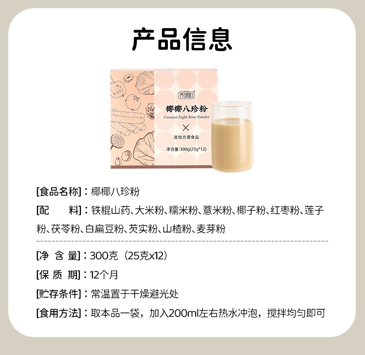 【甄选】椰椰八珍粉精选新鲜食材匠心工艺制作粉质细腻300g/盒(25克×12袋)