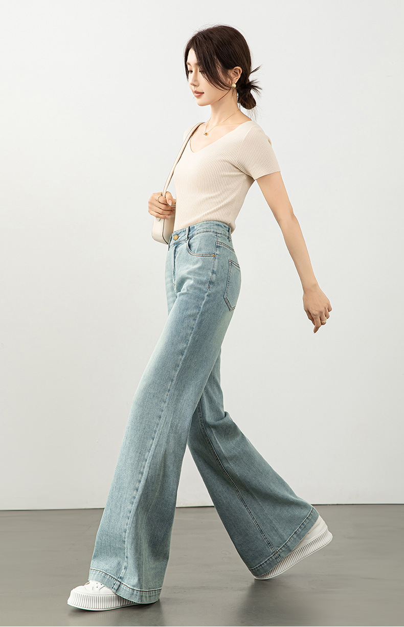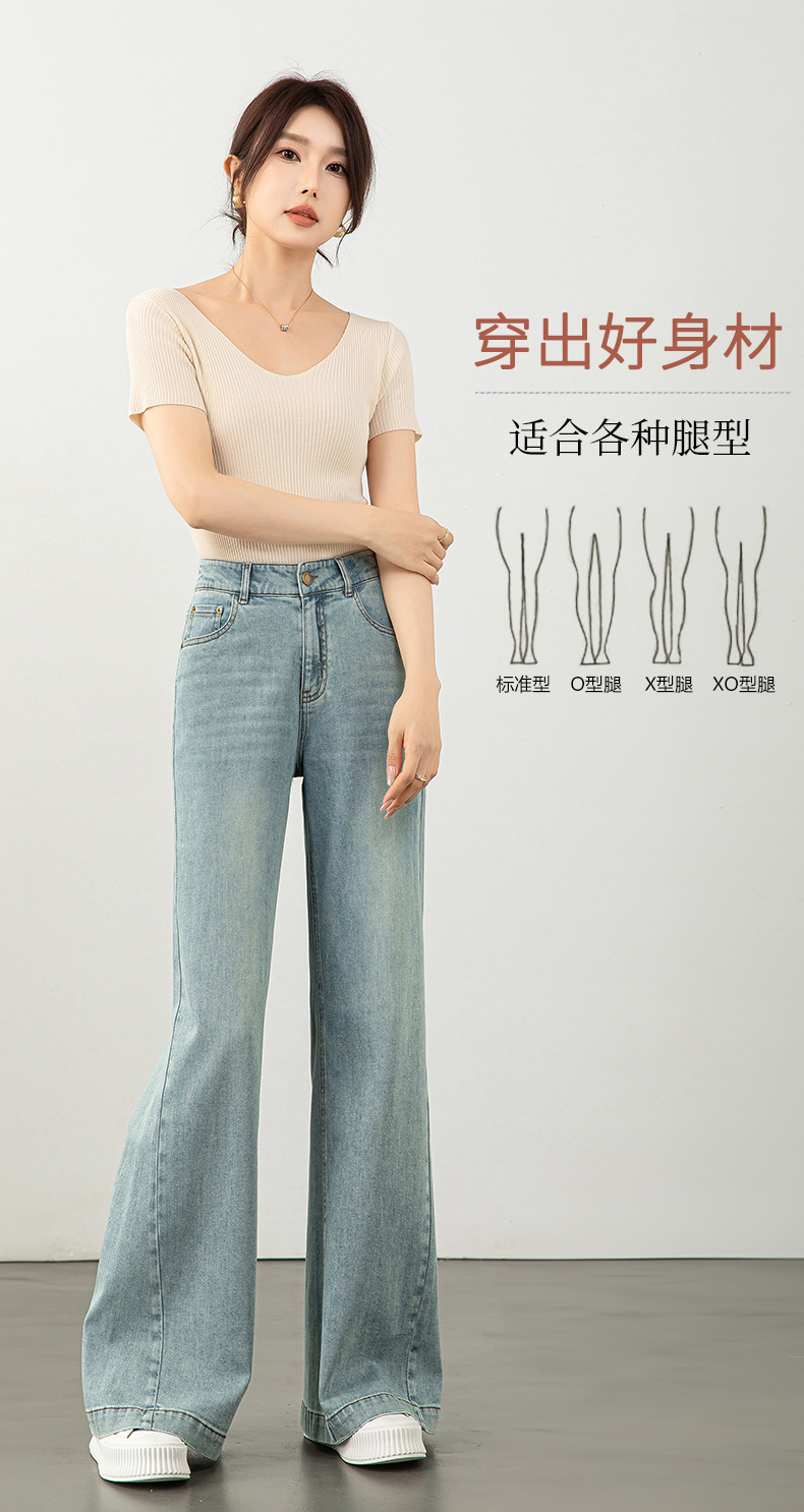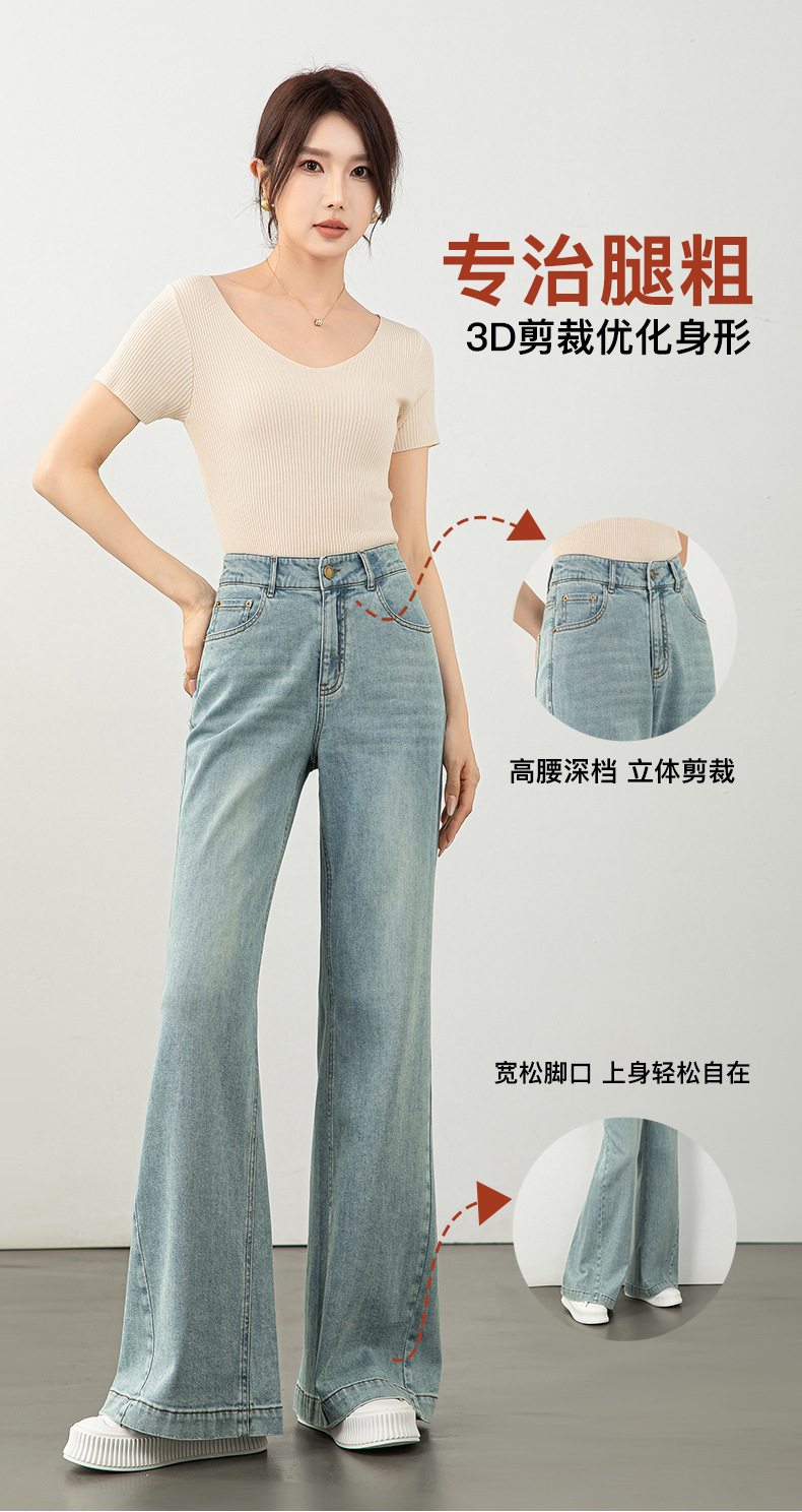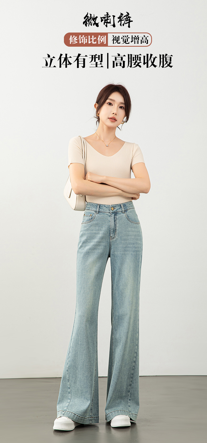 丁摩 弹力微喇牛仔裤女春夏新款宽松高腰显瘦拖地喇叭裤5ZF-8103