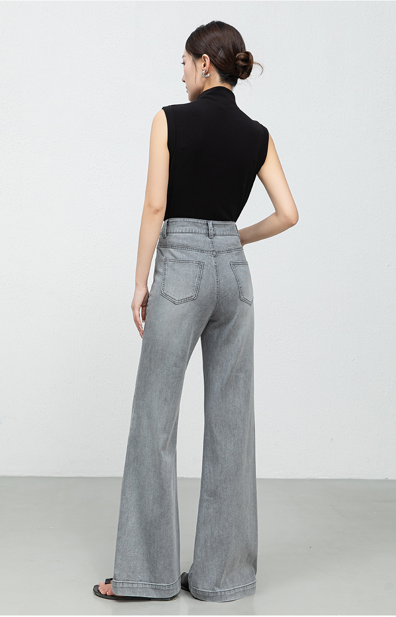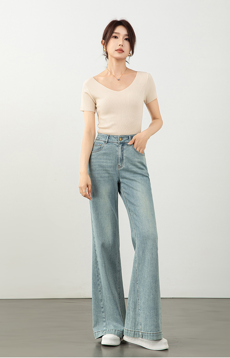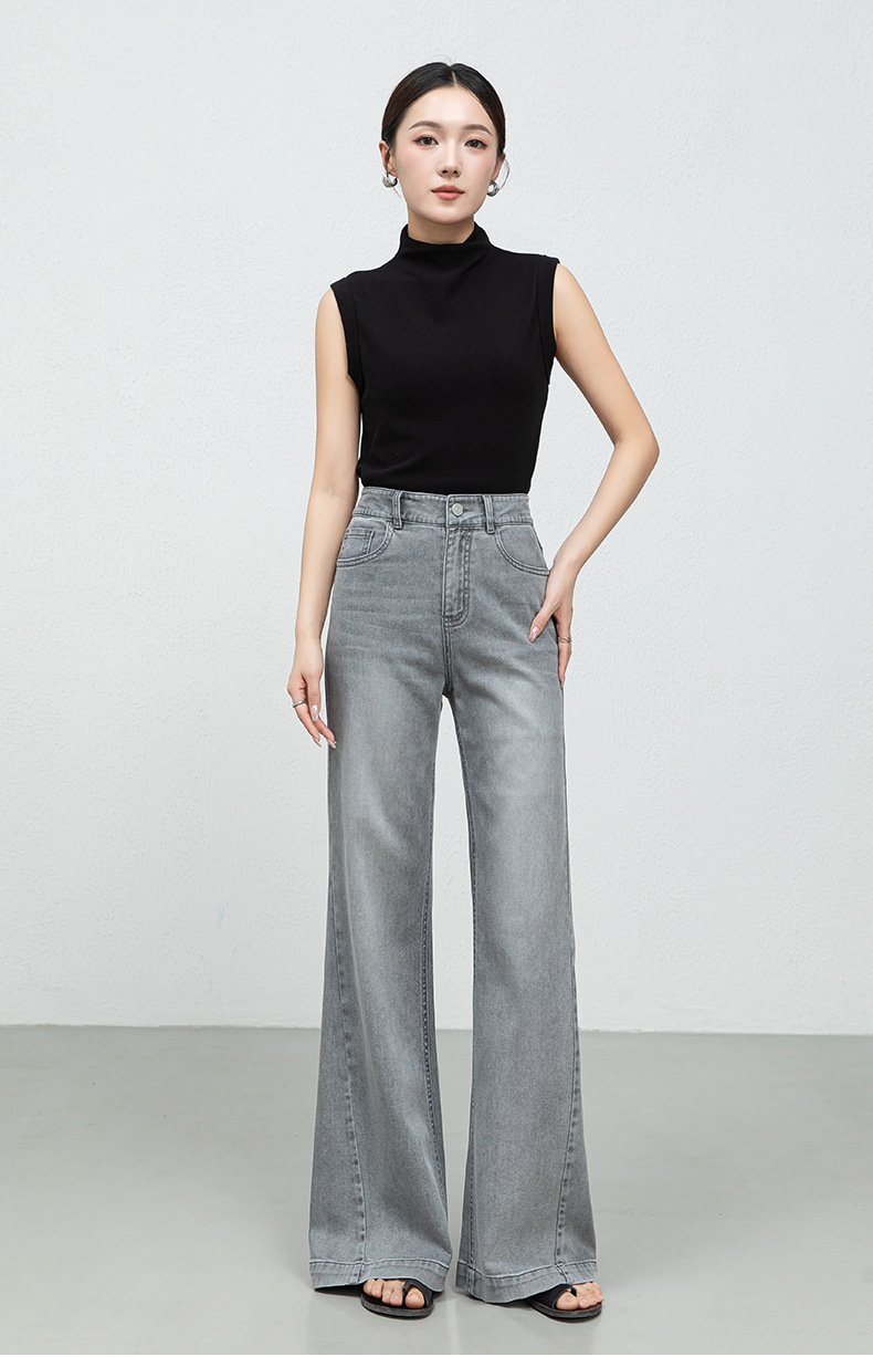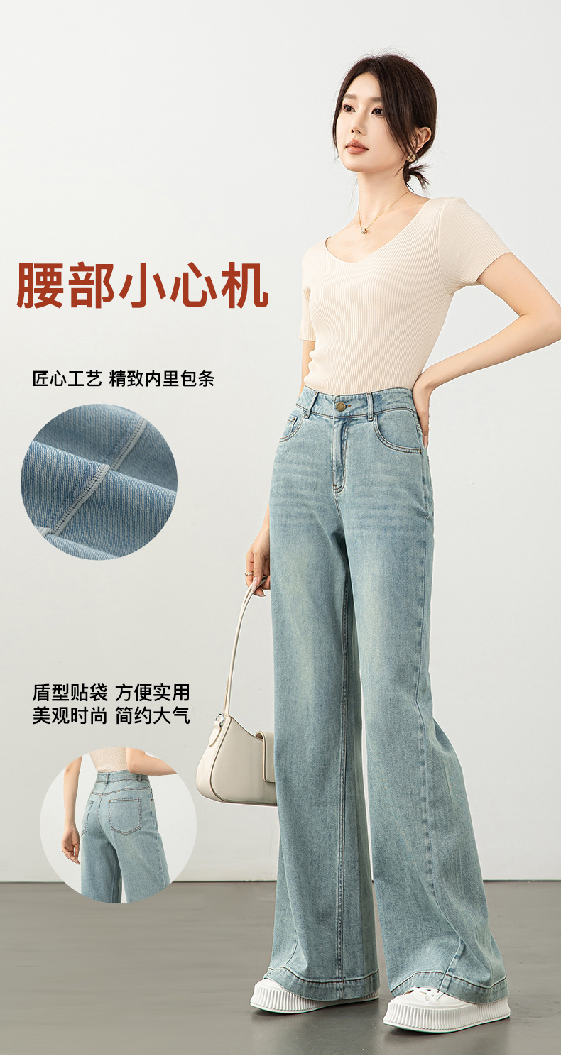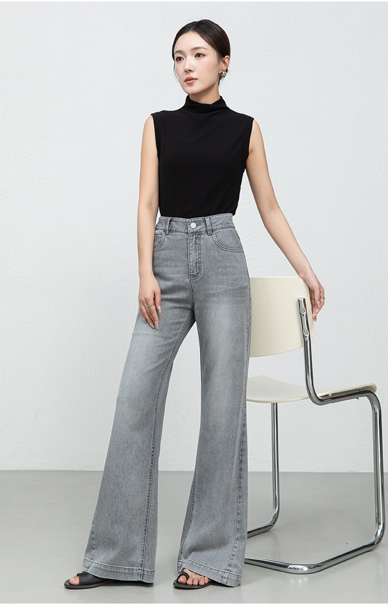 丁摩 弹力微喇牛仔裤女春夏新款宽松高腰显瘦拖地喇叭裤5ZF-8103