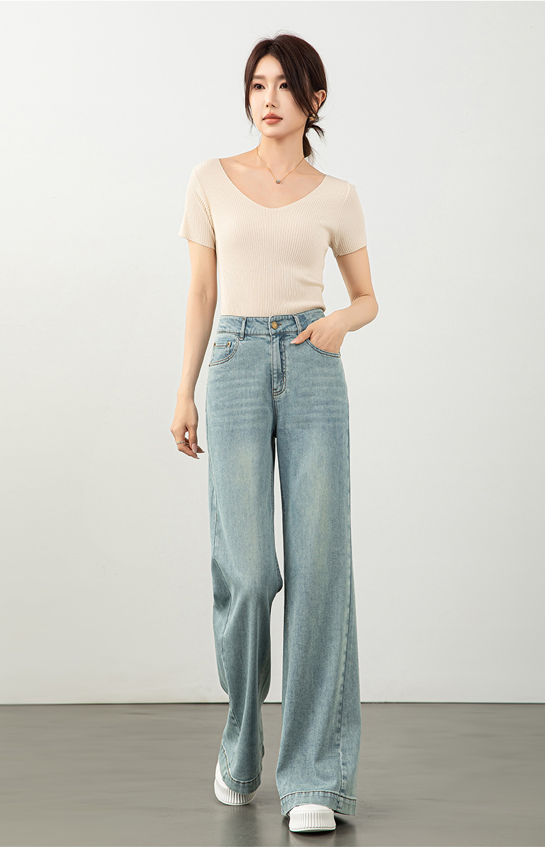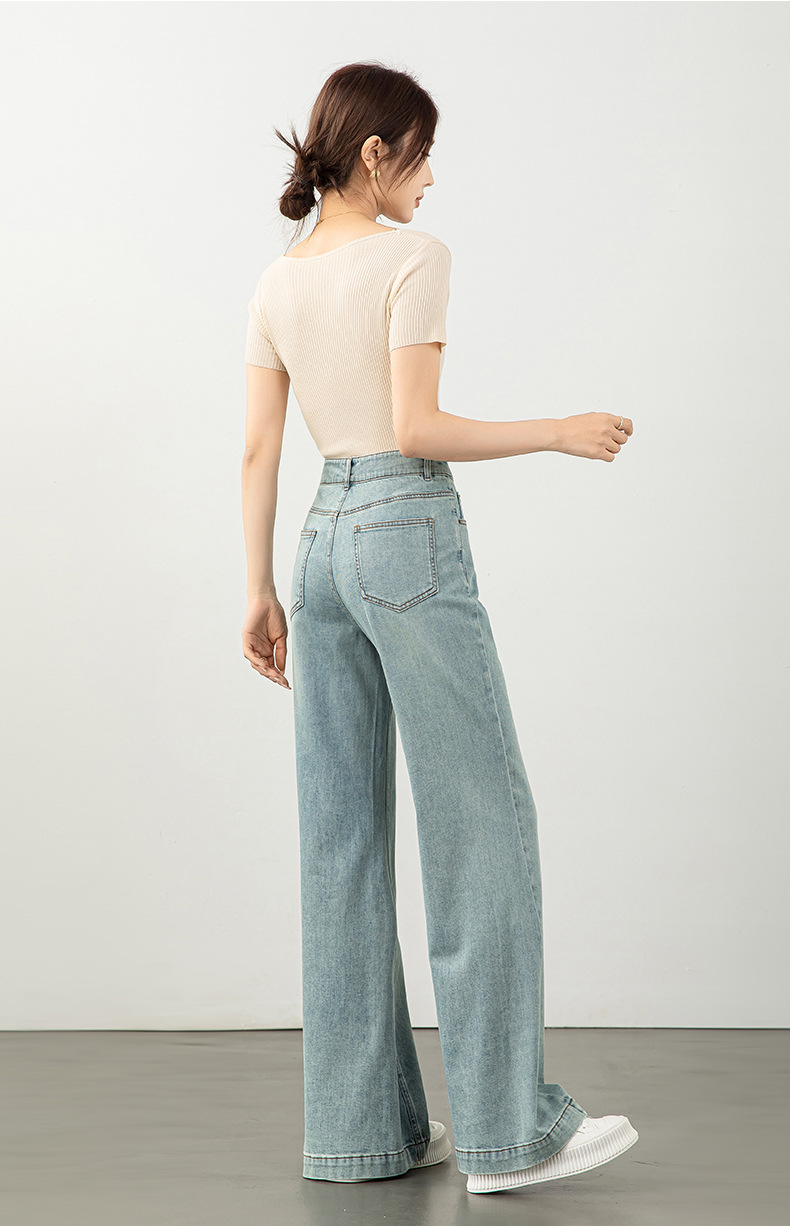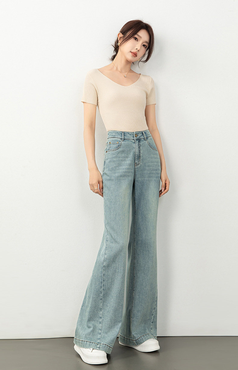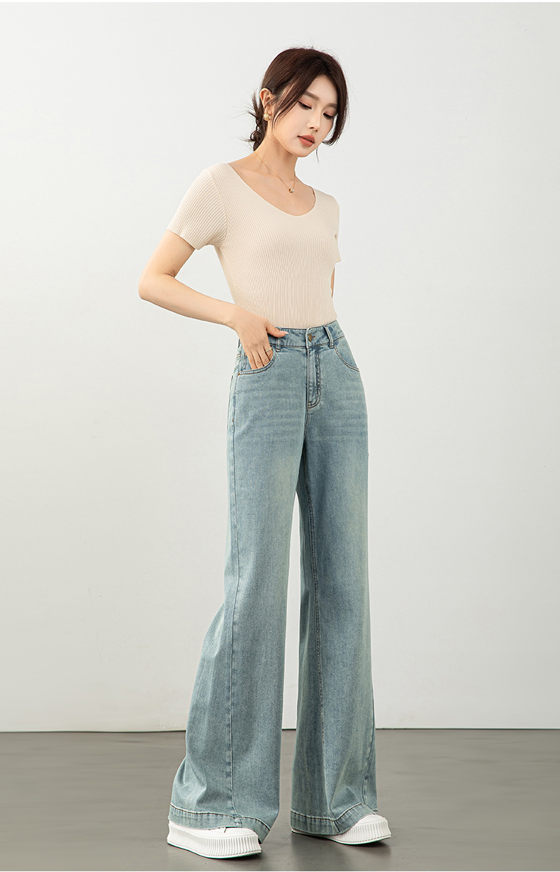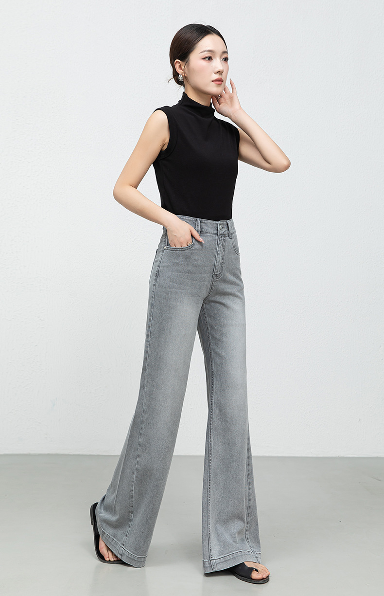 丁摩 弹力微喇牛仔裤女春夏新款宽松高腰显瘦拖地喇叭裤5ZF-8103