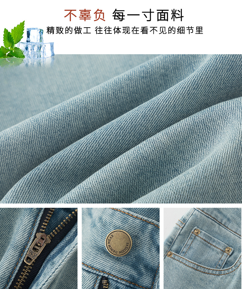丁摩 深蓝色国风绣花洗水窄版阔腿牛仔裤女春秋新款高腰垂感直筒裤6ZF-1956