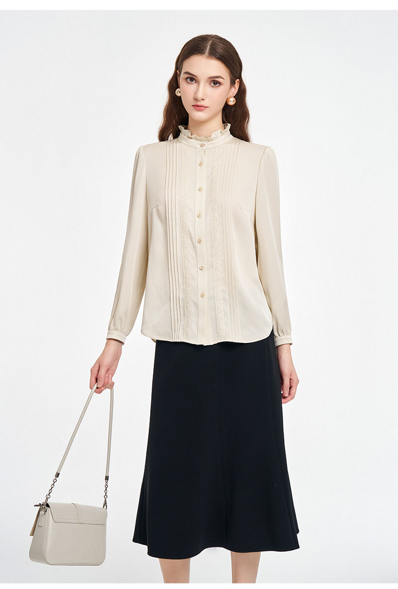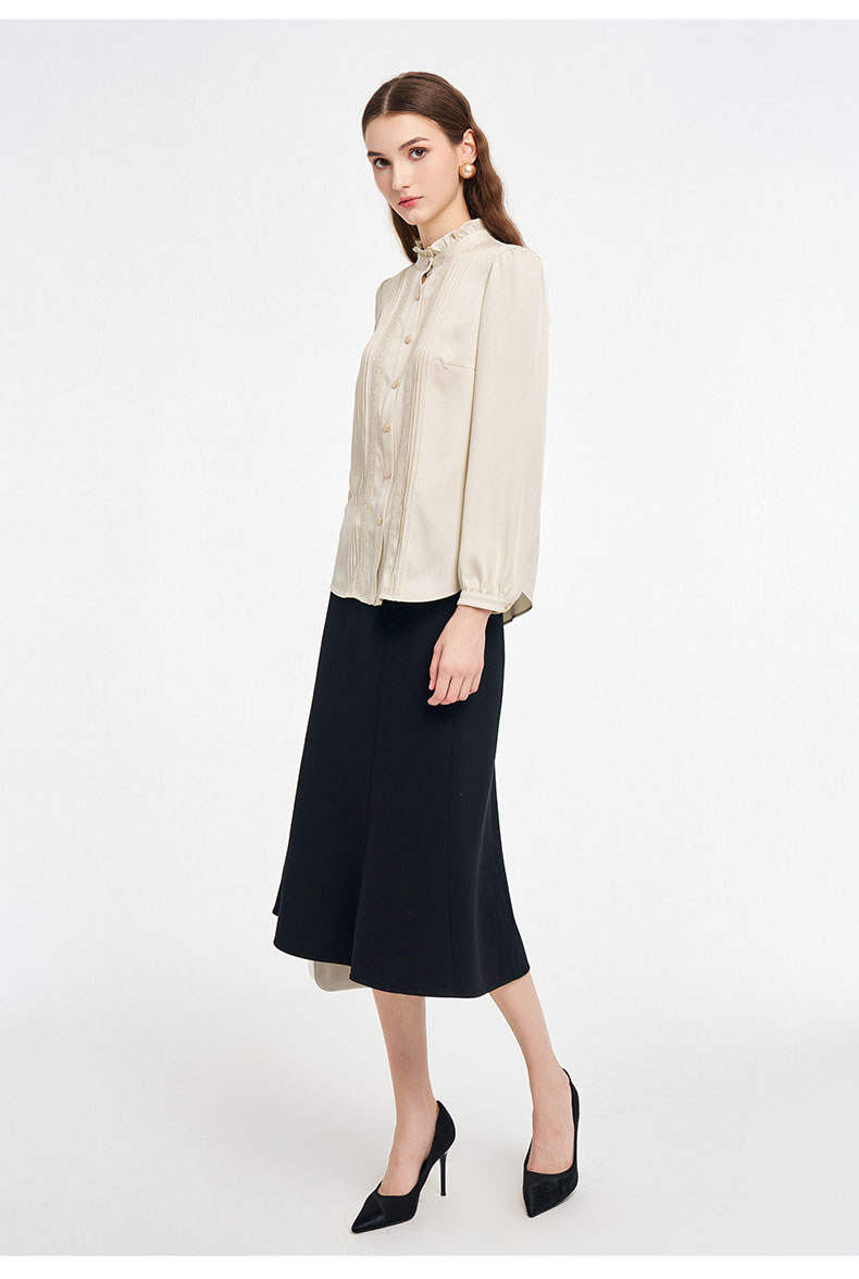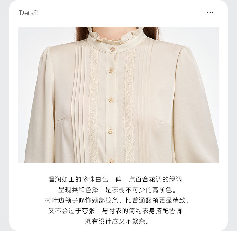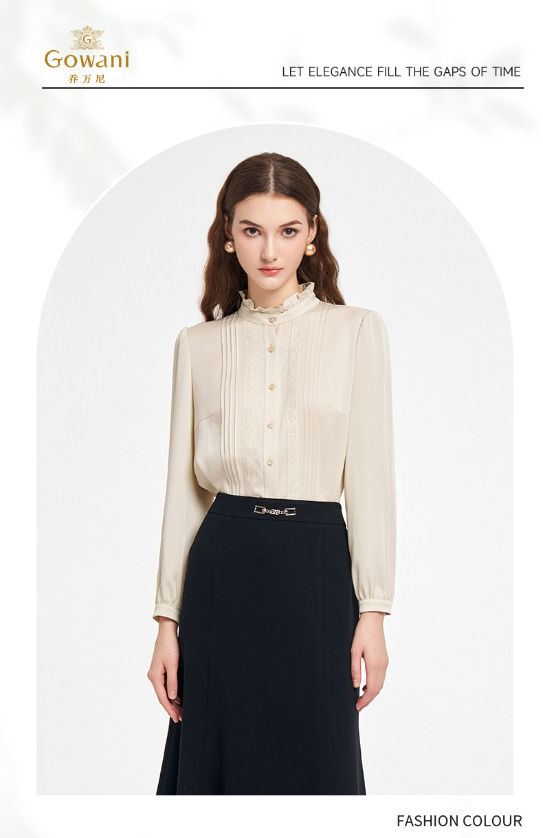 乔万尼2025秋新品精致珍珠白顺滑荷叶领通勤衬衫ED3C313