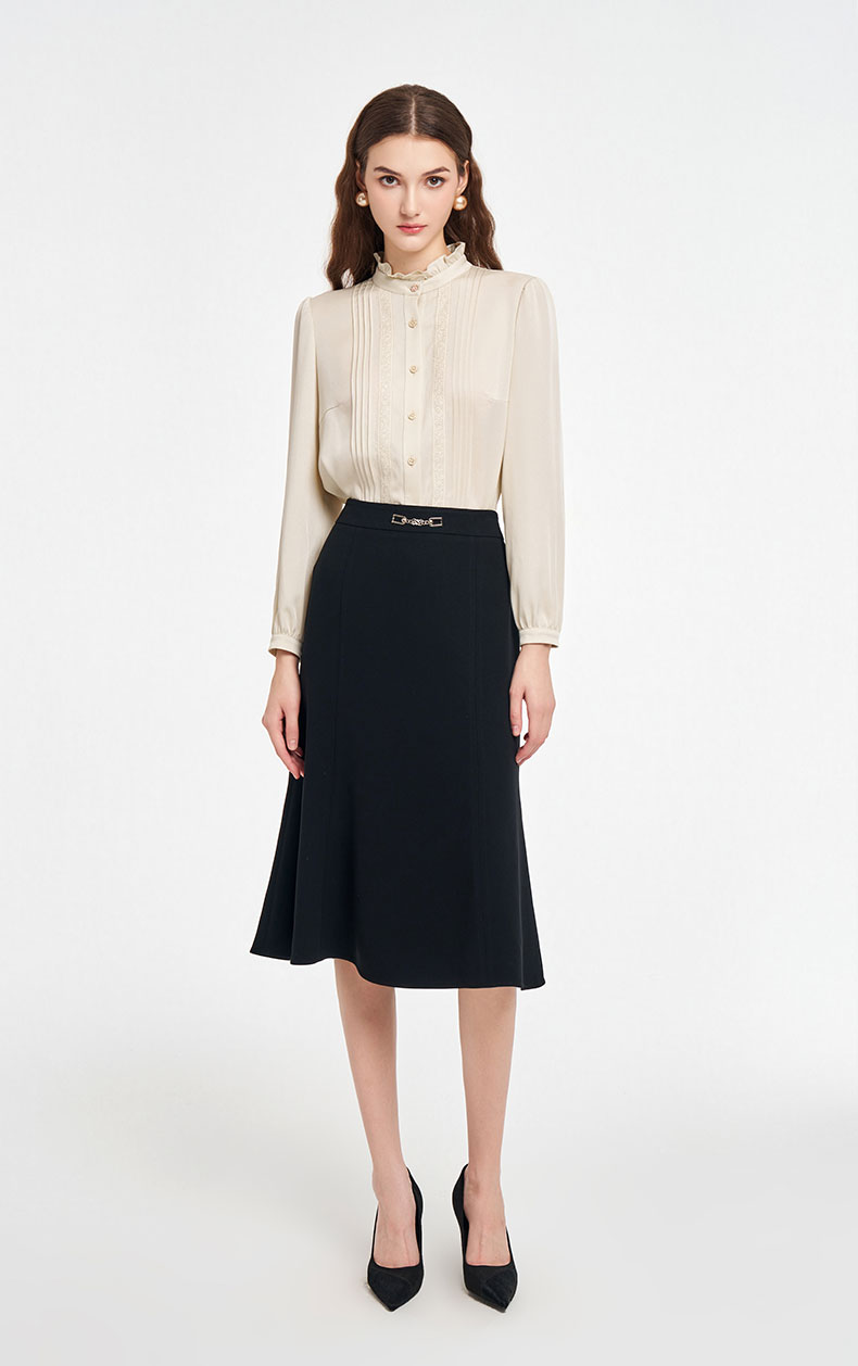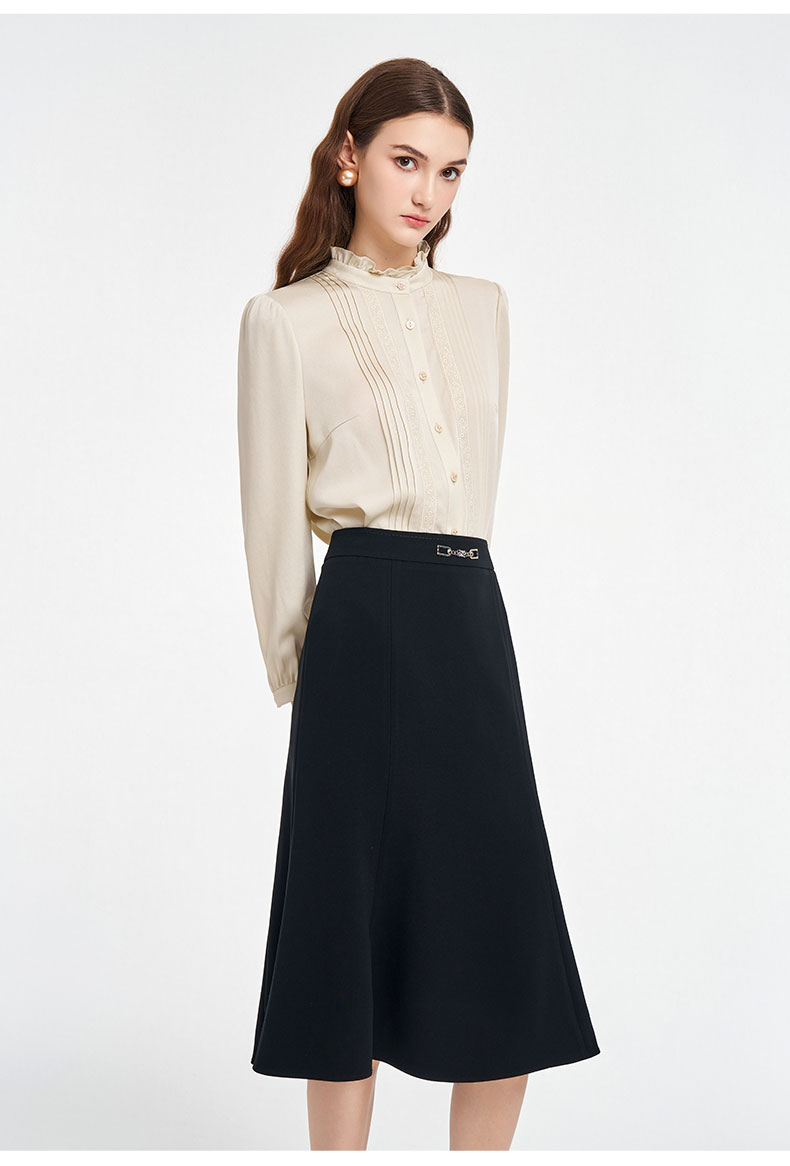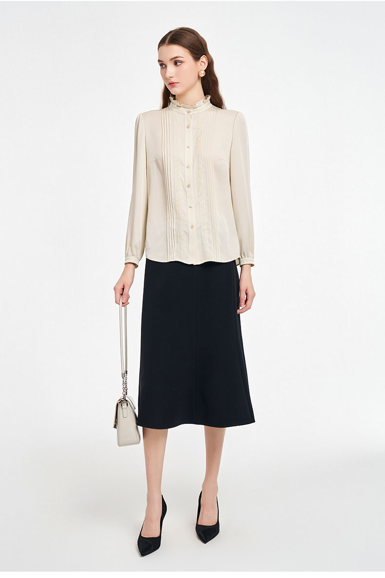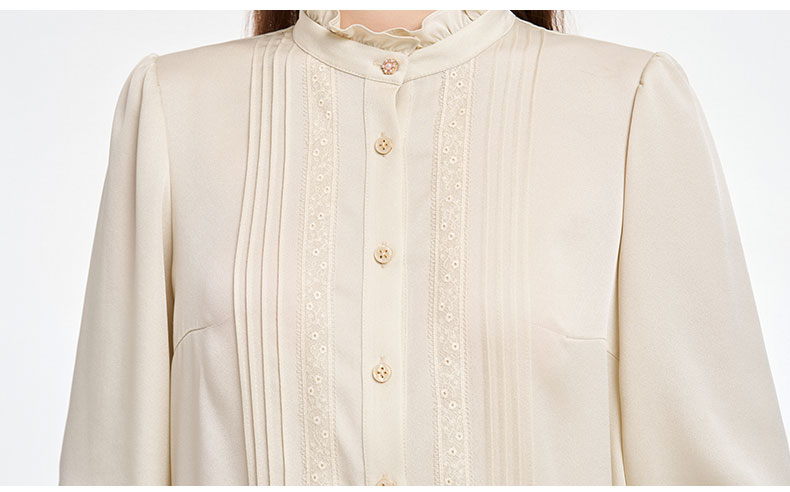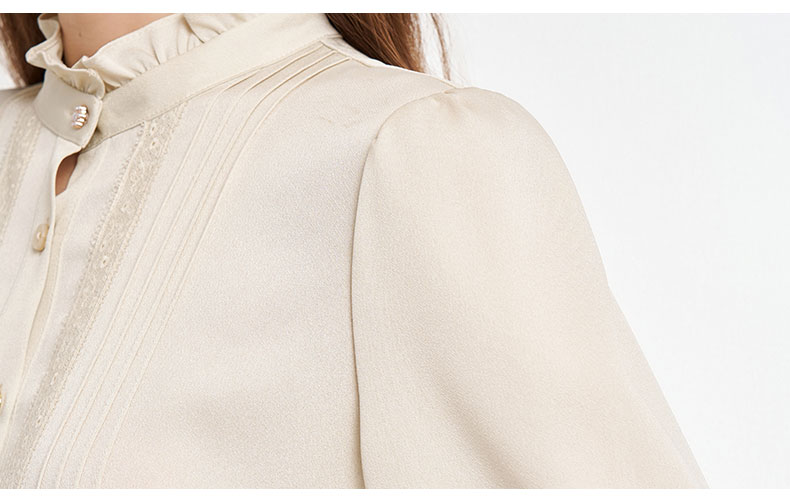 乔万尼2025秋新品精致珍珠白顺滑荷叶领通勤衬衫ED3C313