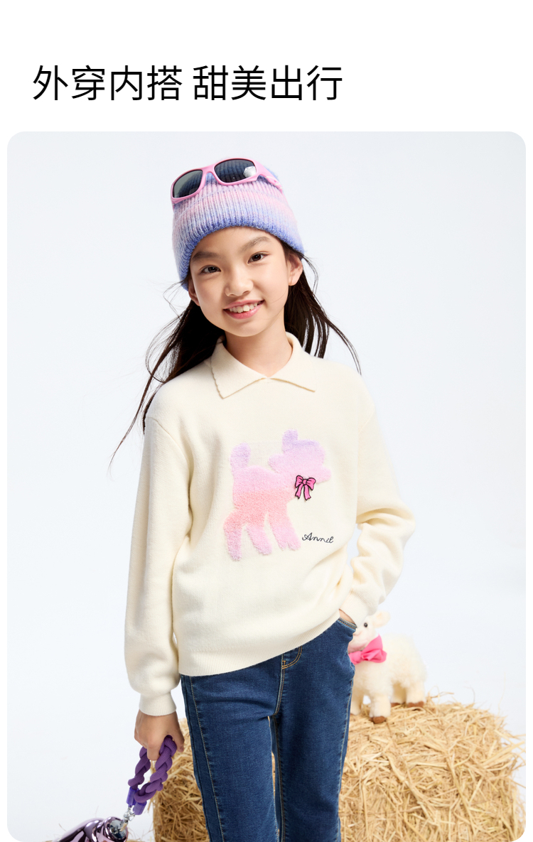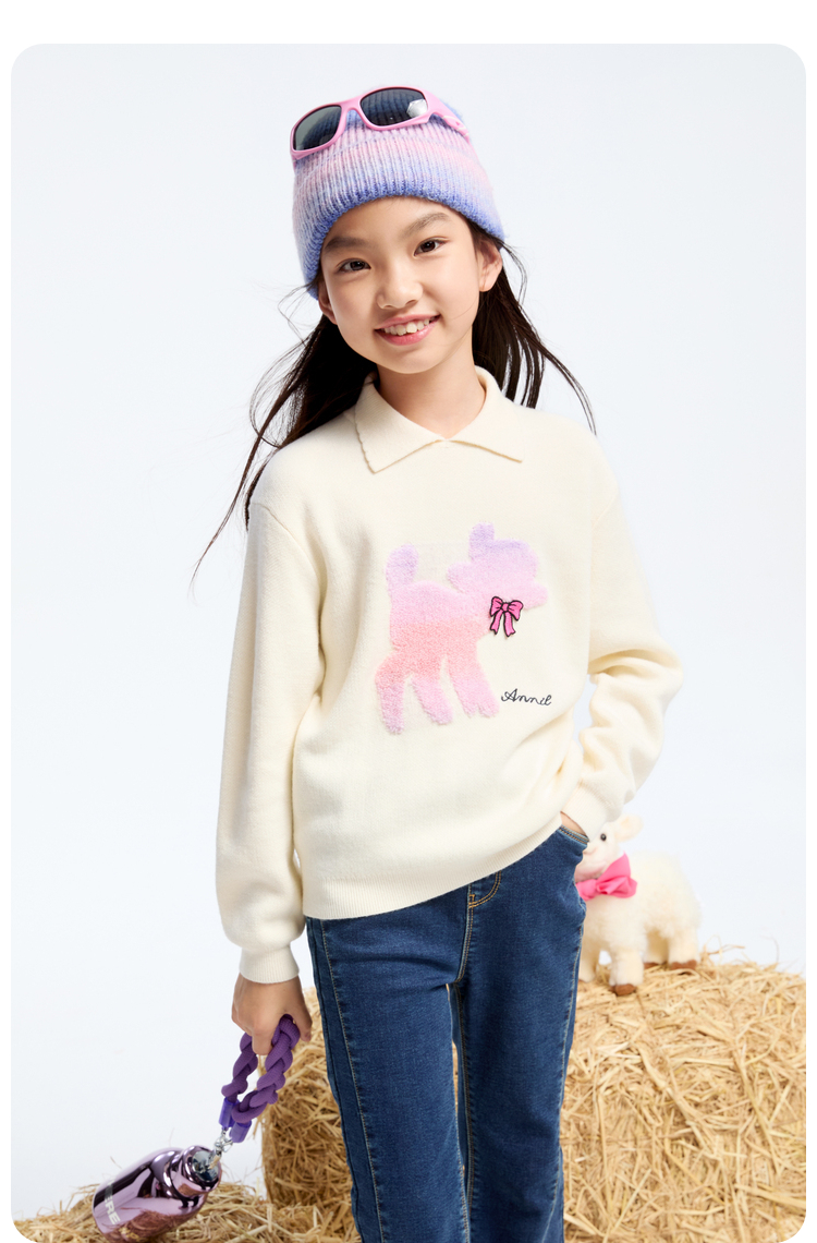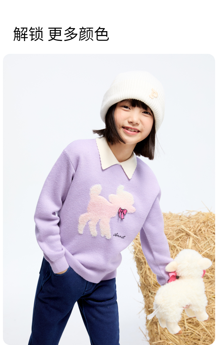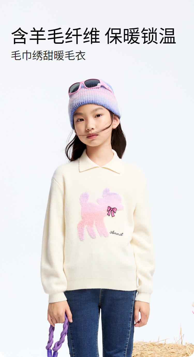 女童毛巾绣甜美毛衣冬季新款安奈儿童装实体店同款AG444622
