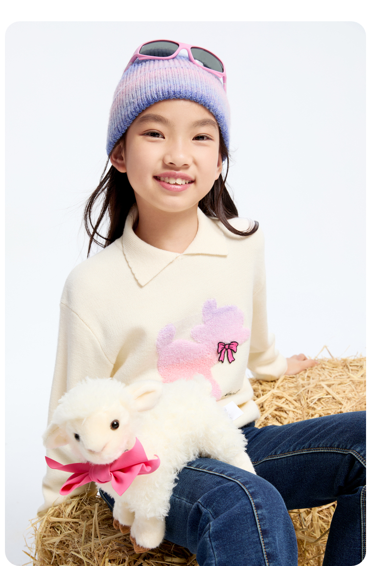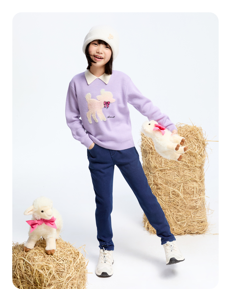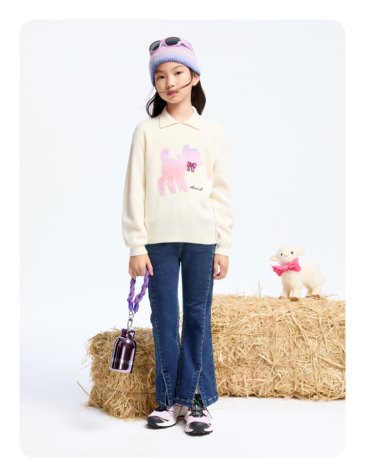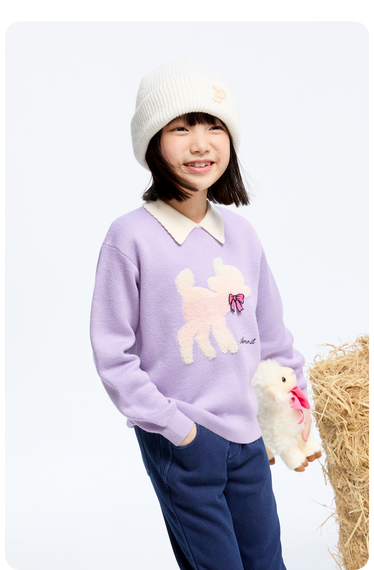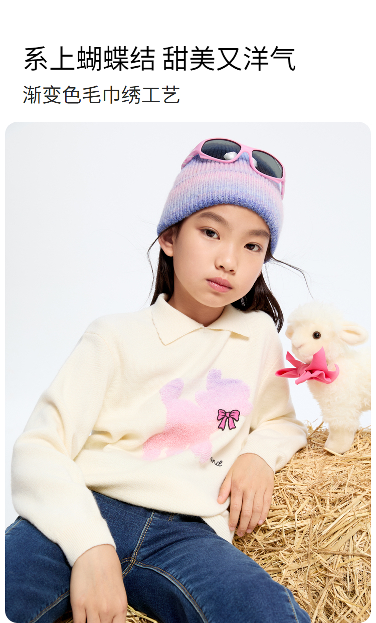女童毛巾绣甜美毛衣冬季新款安奈儿童装实体店同款AG444622