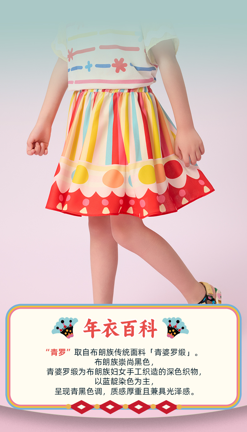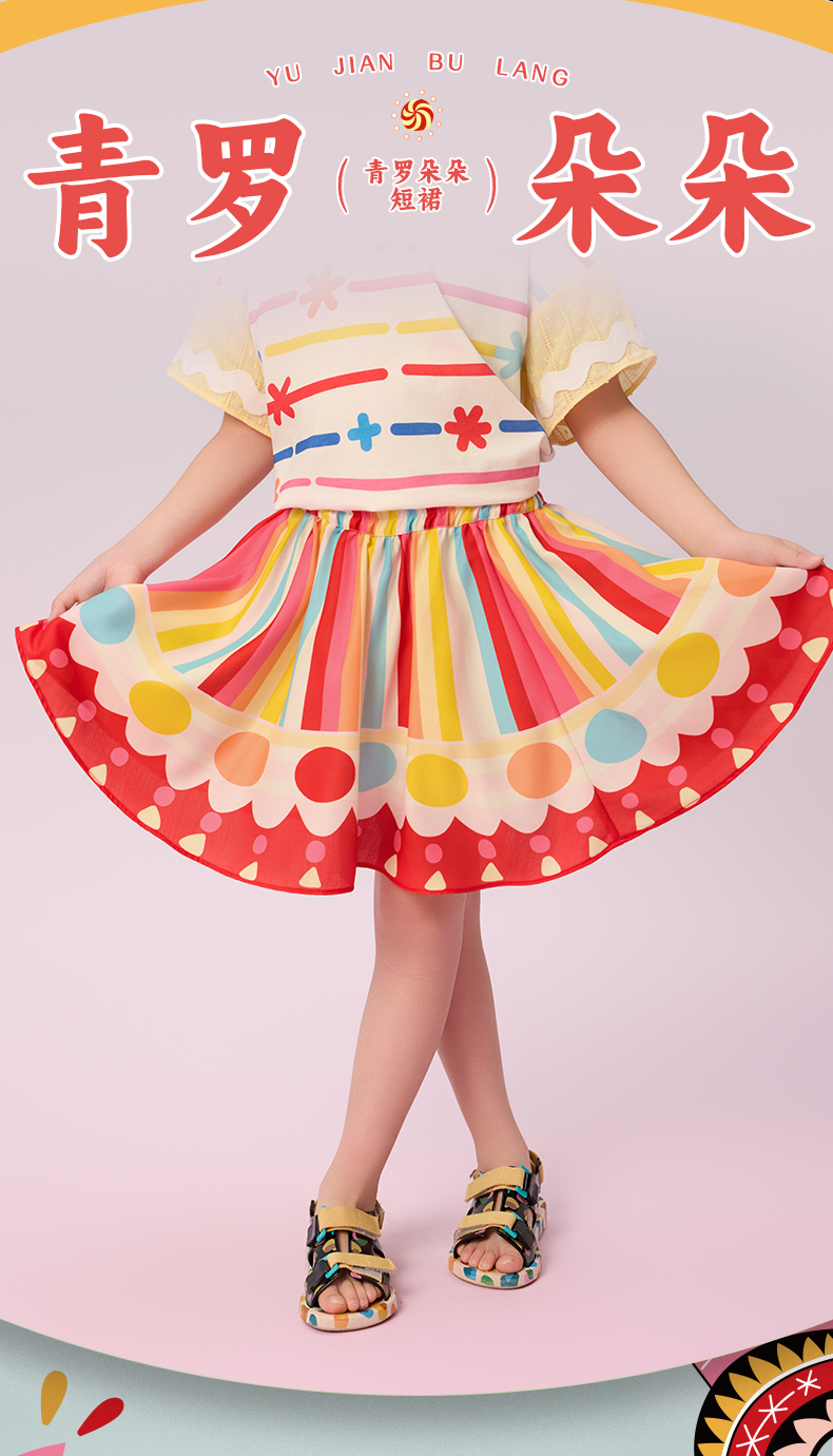 【年衣】女童半身裙2025夏季新款儿童国风马面裙子短款青罗朵朵短裙