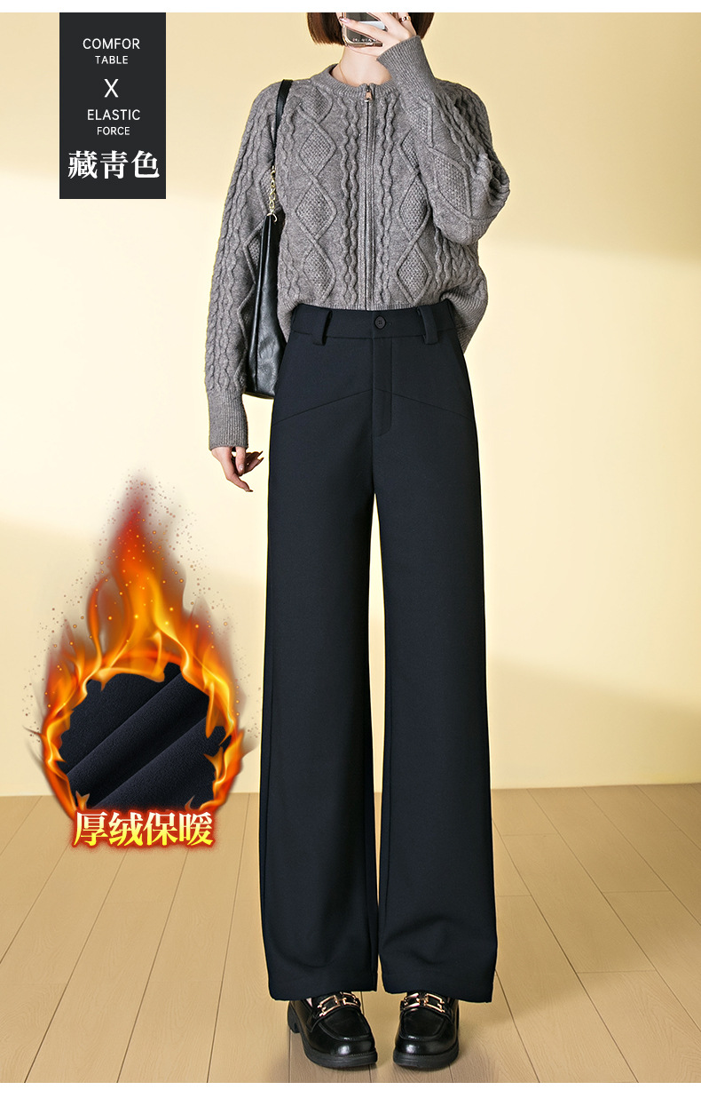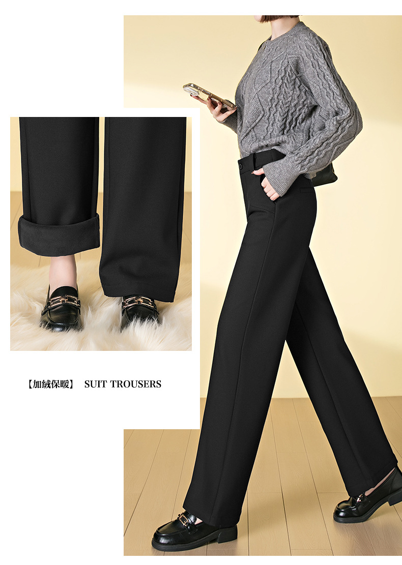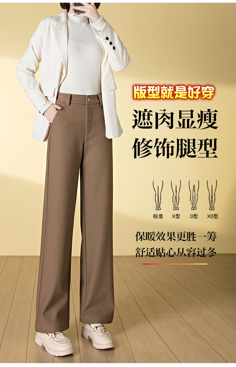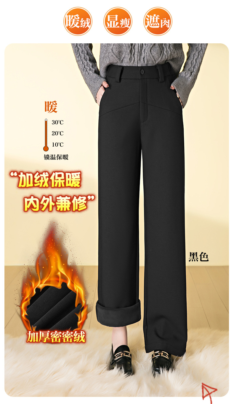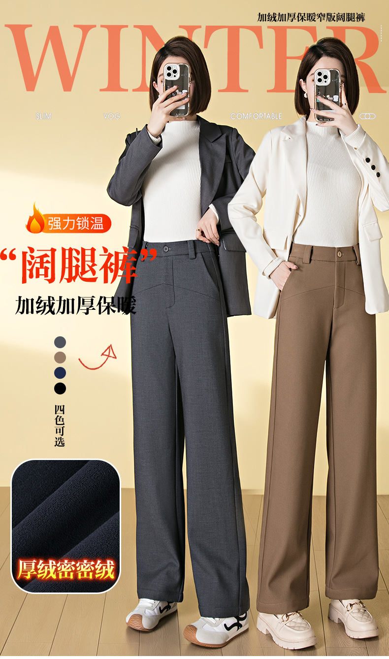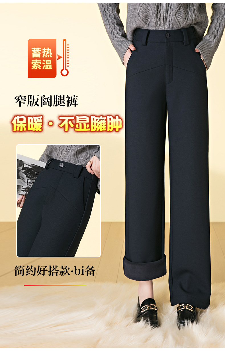 HSS 2816A窄版阔腿休闲裤加绒加厚显瘦百搭直筒裤