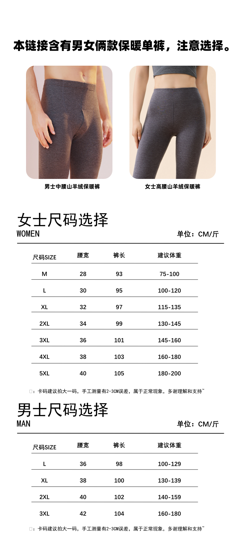 【云朵般手感 添加山羊绒+桑蚕丝】 7A抑菌双面磨毛情侣保暖裤