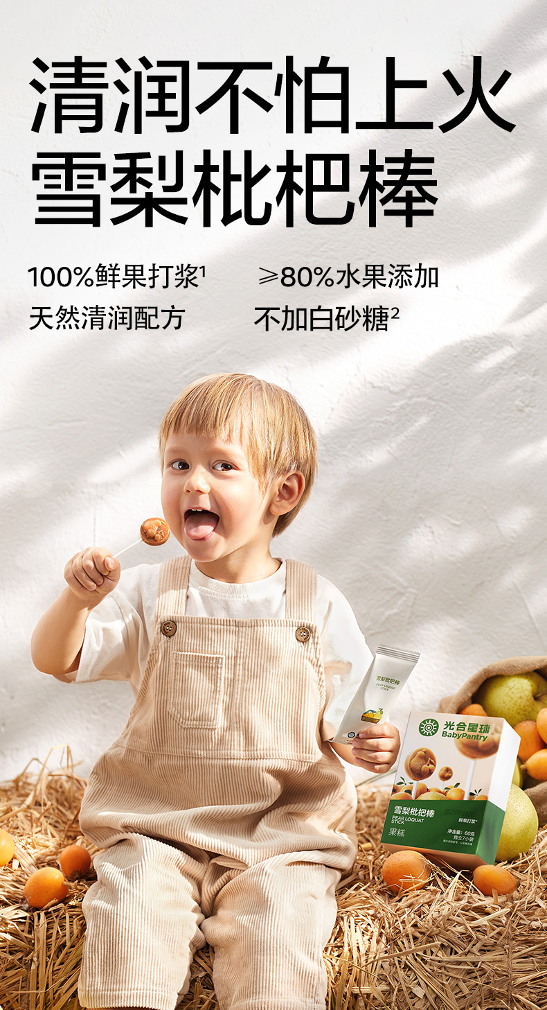 babycare棒棒糖光合星球雪梨枇杷儿童零食辅食水果条棒无添加3岁+