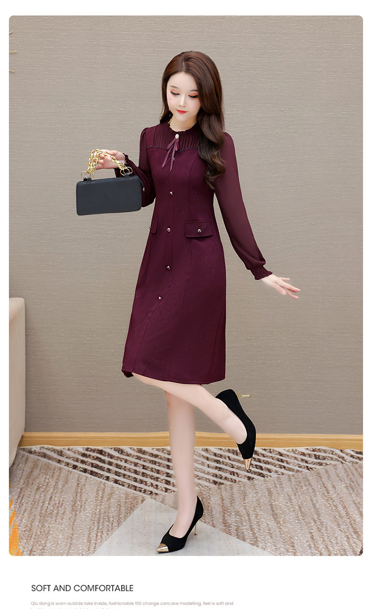 QYM 54A2505-Y连衣裙时尚新款镶钻中长裙 商品图4