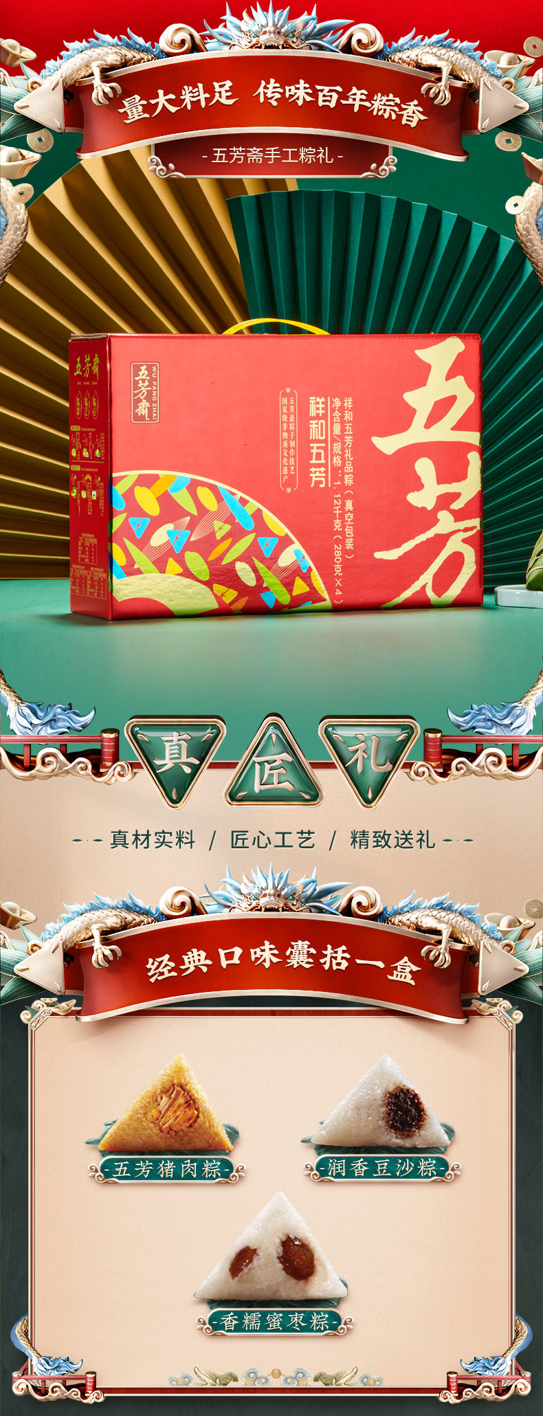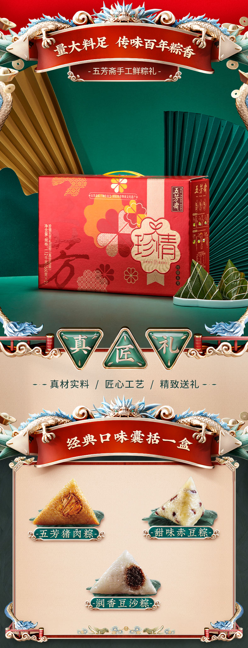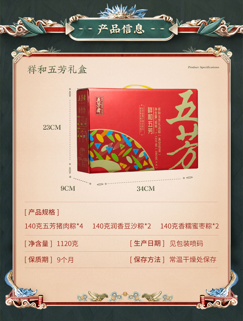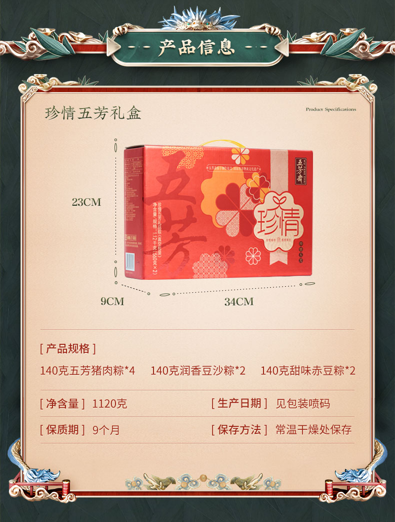【五芳斋粽子】珍情五芳粽子礼盒 端午节 嘉兴特产 1120g