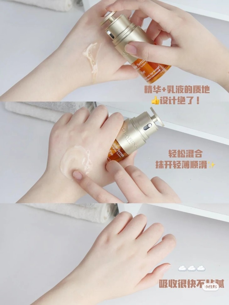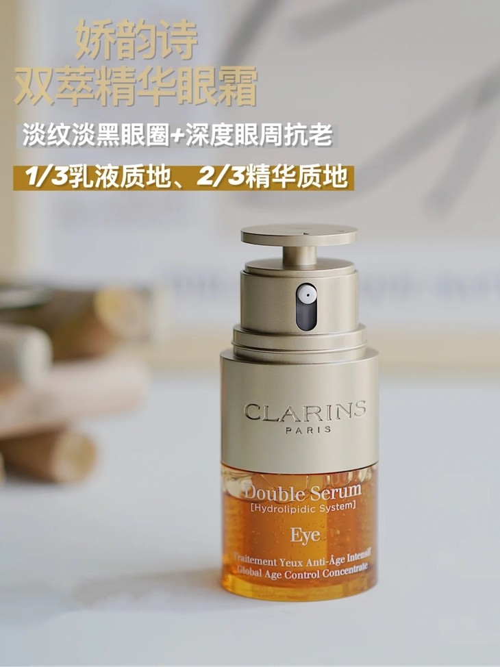娇韵诗双萃二合一精华眼霜20ml 👍双萃出眼部保养品啦!专门针对淡化黑眼圈👀、眼纹而生,含有1⃣0⃣中植萃,咖啡因、峨参精粹等,可以促进眼周循环🌀,紧致眼周,抗老效果也十分优秀。搭配双萃明星成分姜黄酮、牛油果🥑、角鲨烷,提亮眼周的同时还能强韧肌肤屏障。不含酒精,挤出来和双萃一样是两种质地,三分之一的白色是眼霜☁️,三分之二的橘色是眼精华,混合在一起是乳白色的乳液😆,上脸滋润保湿但不厚重!㊙️你可以永远相信双萃~