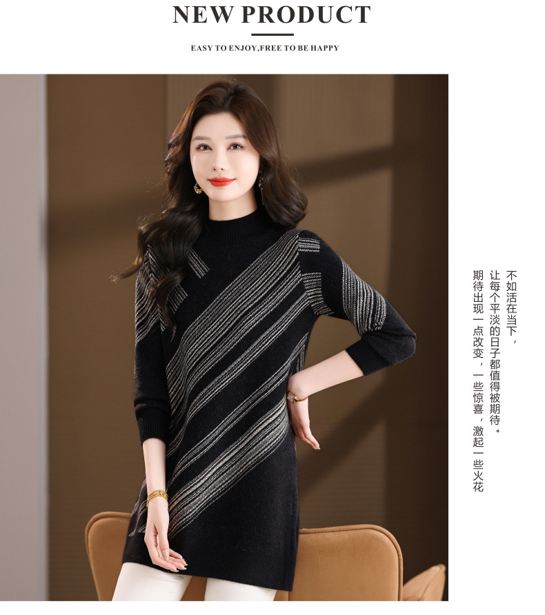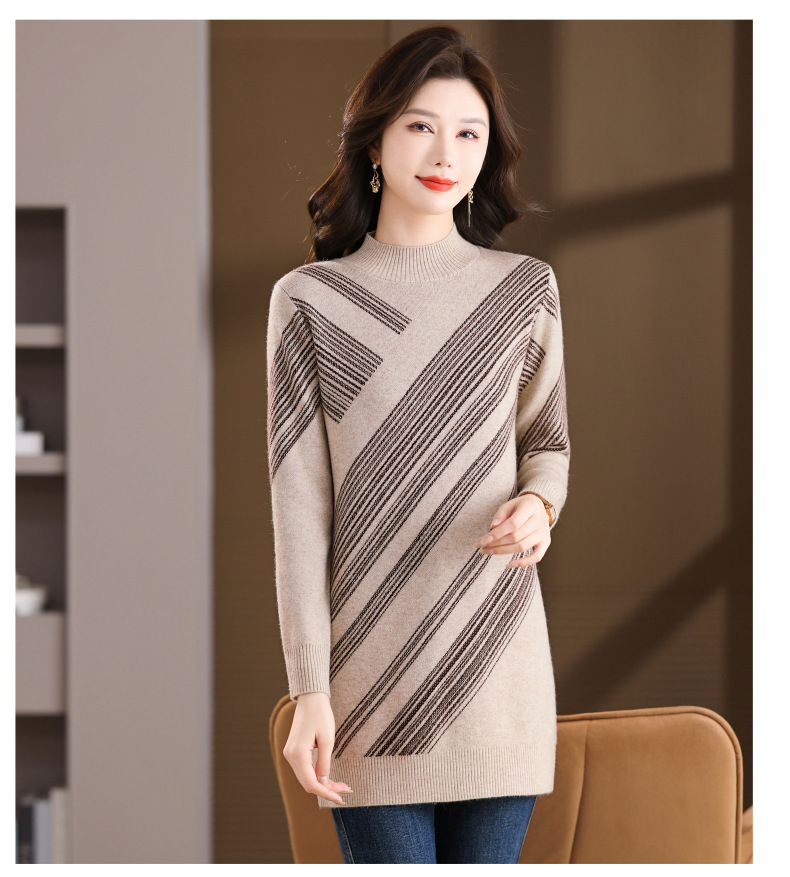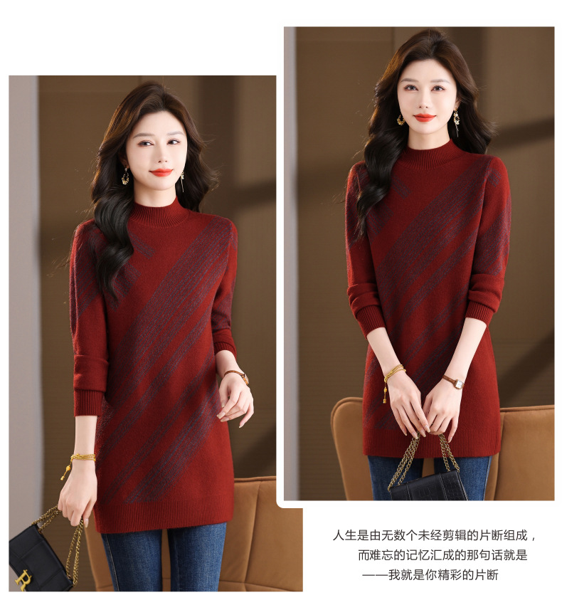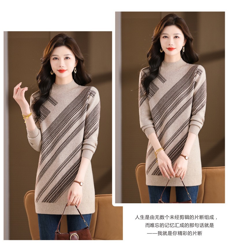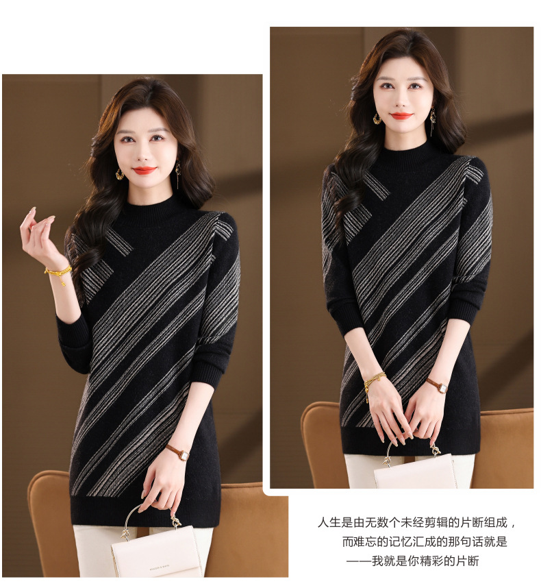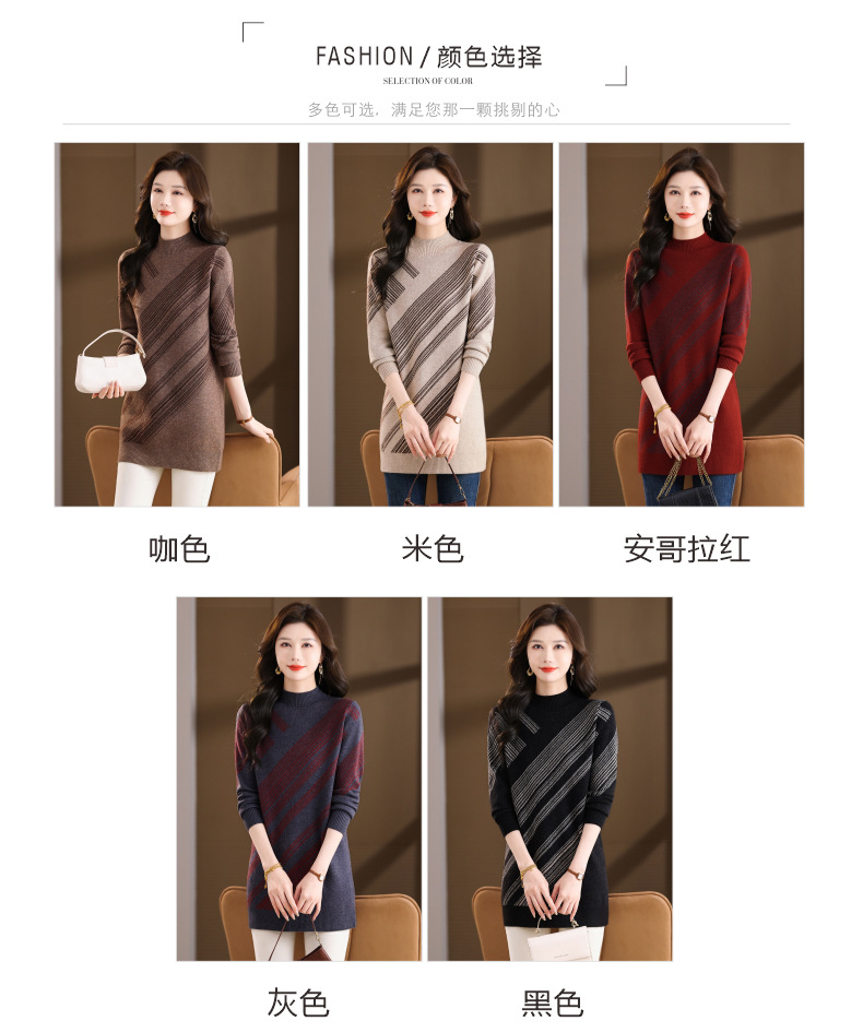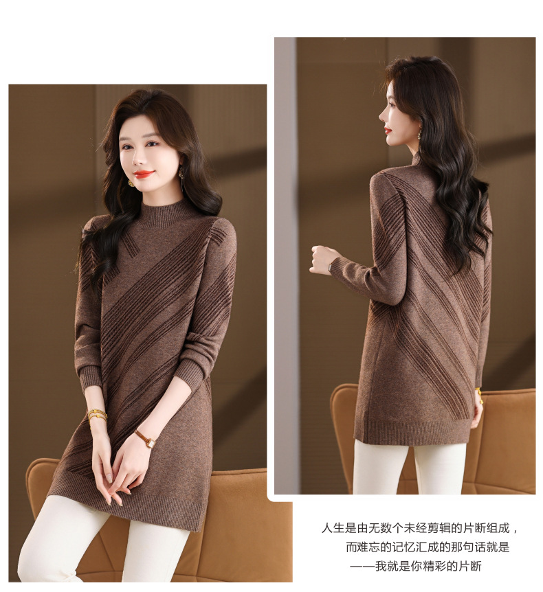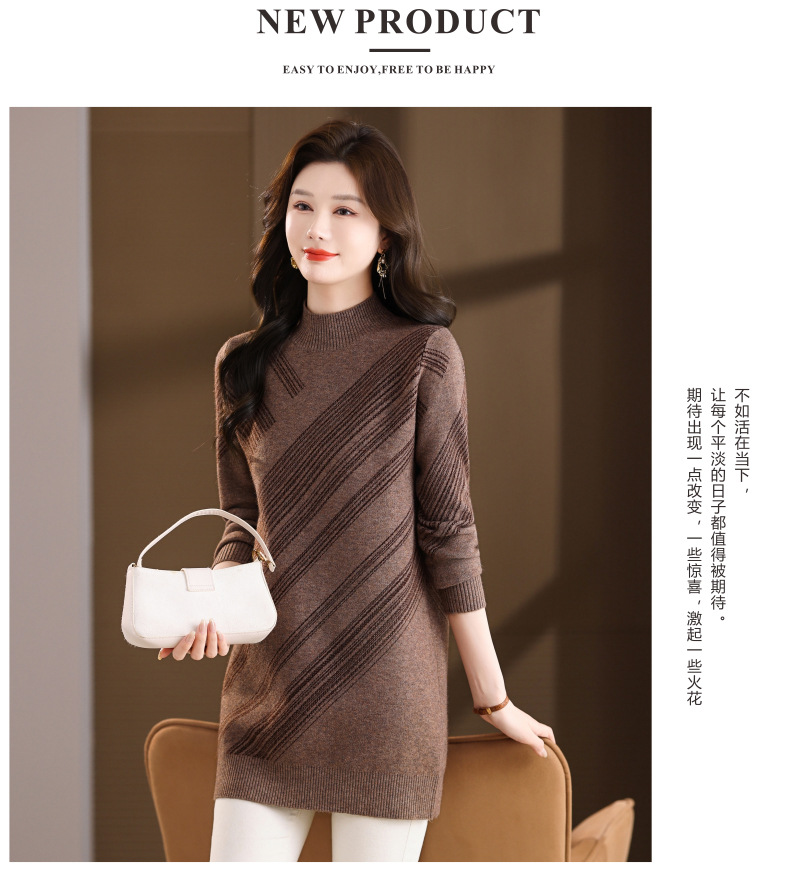 103-26769半高领针织连衣裙女秋冬季斜纹修身中长款气质显瘦保暖百搭毛衣裙