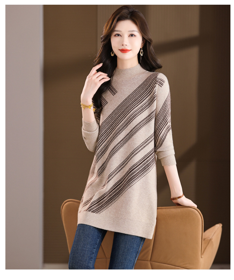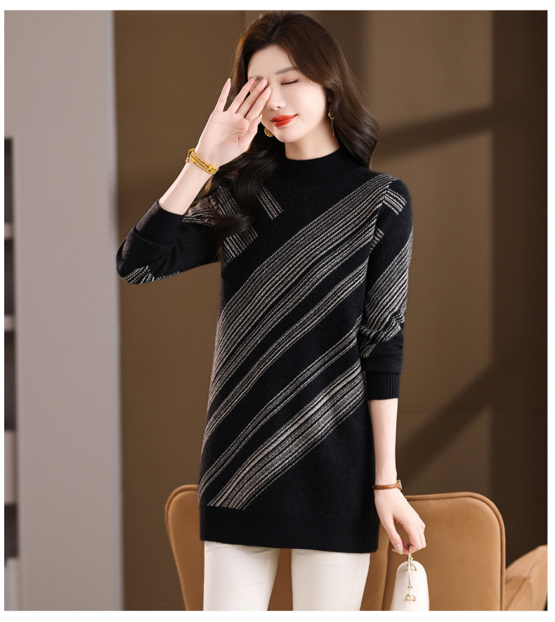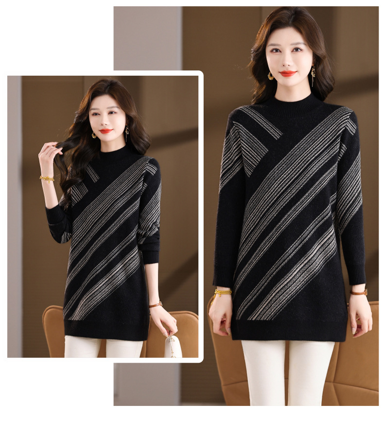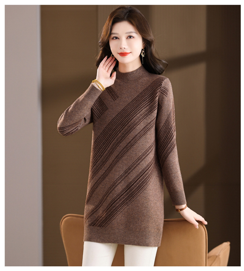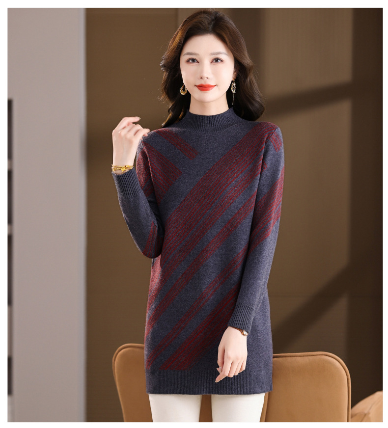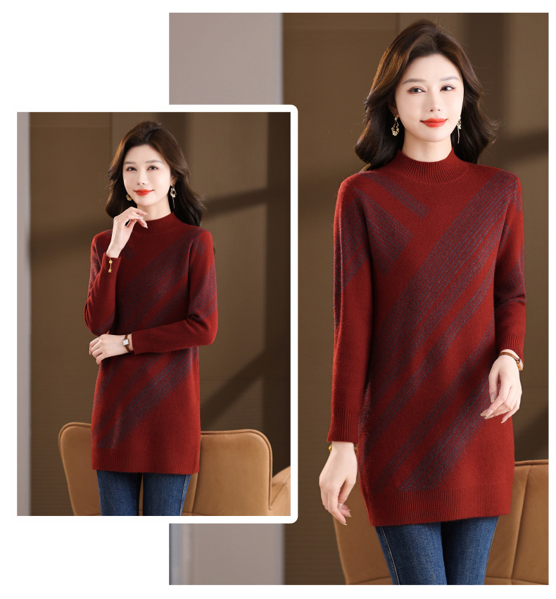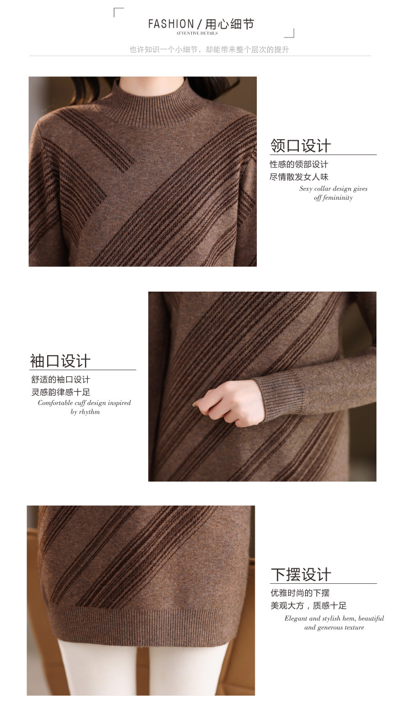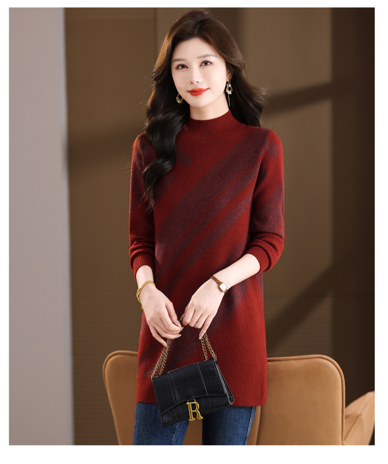 103-26769半高领针织连衣裙女秋冬季斜纹修身中长款气质显瘦保暖百搭毛衣裙