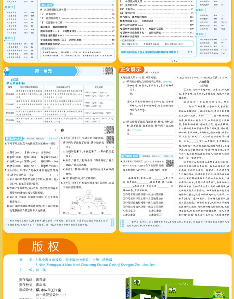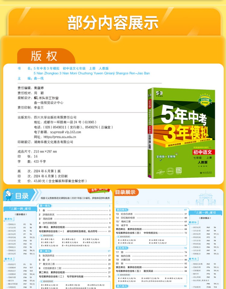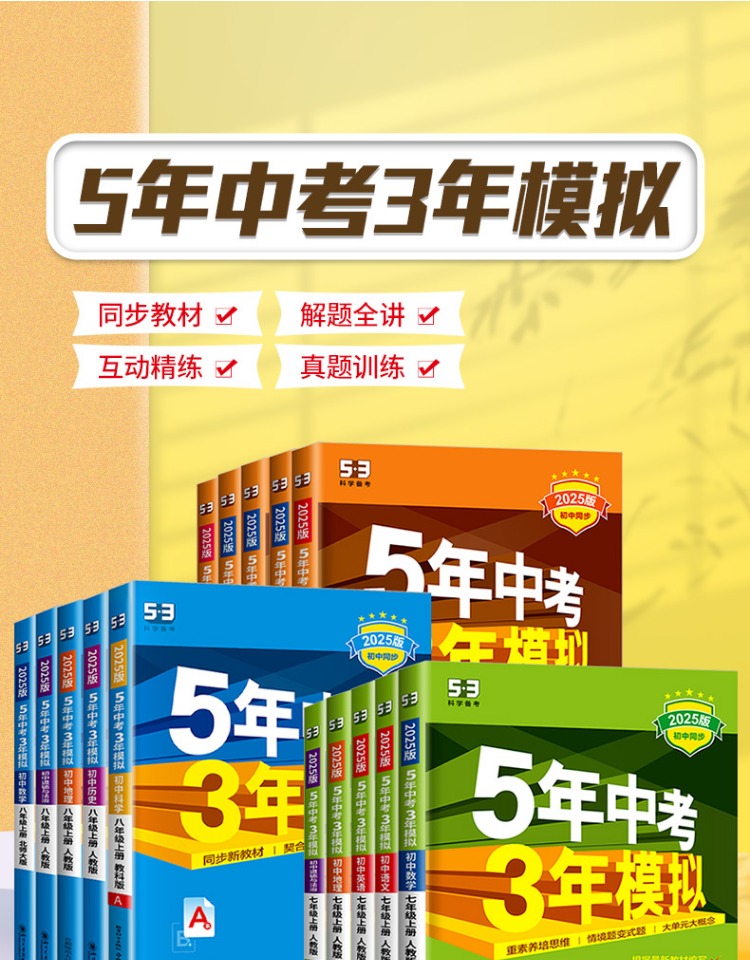 2025版五年中考三年模拟七八九年级上册科学语文数学英语历史地理可选