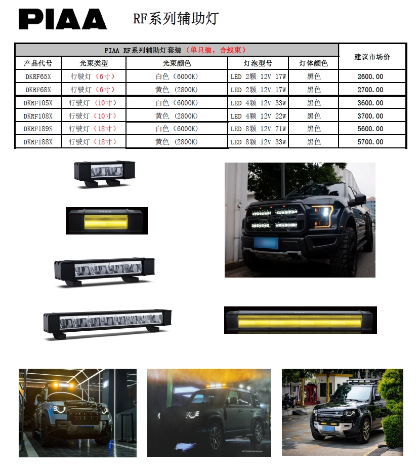 PIAA RF系列条状辅助灯|6~18寸多规格|白光/黄光全覆盖 |CLAUTO酷乐汽车 x PIAA中国官方 No.250622