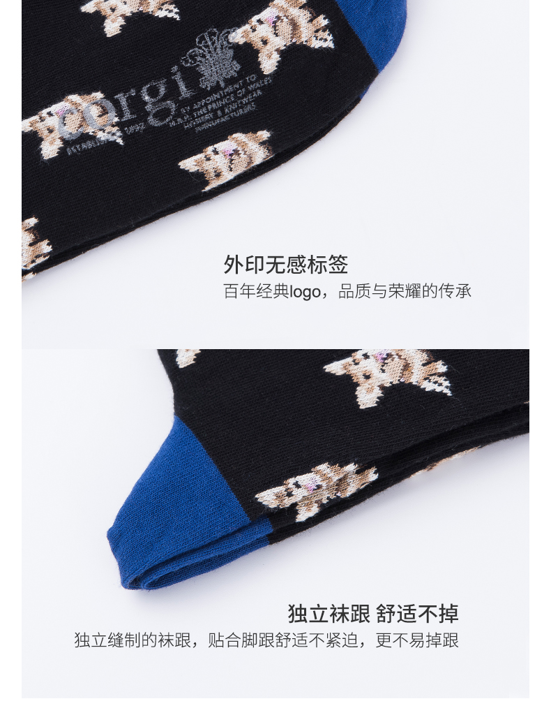 英国CORGI男士袜子 柯基狗狗印花中筒袜