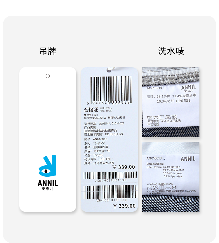 【实体店同款】女童全腰梭织裤春季新款安奈儿童装AG616018