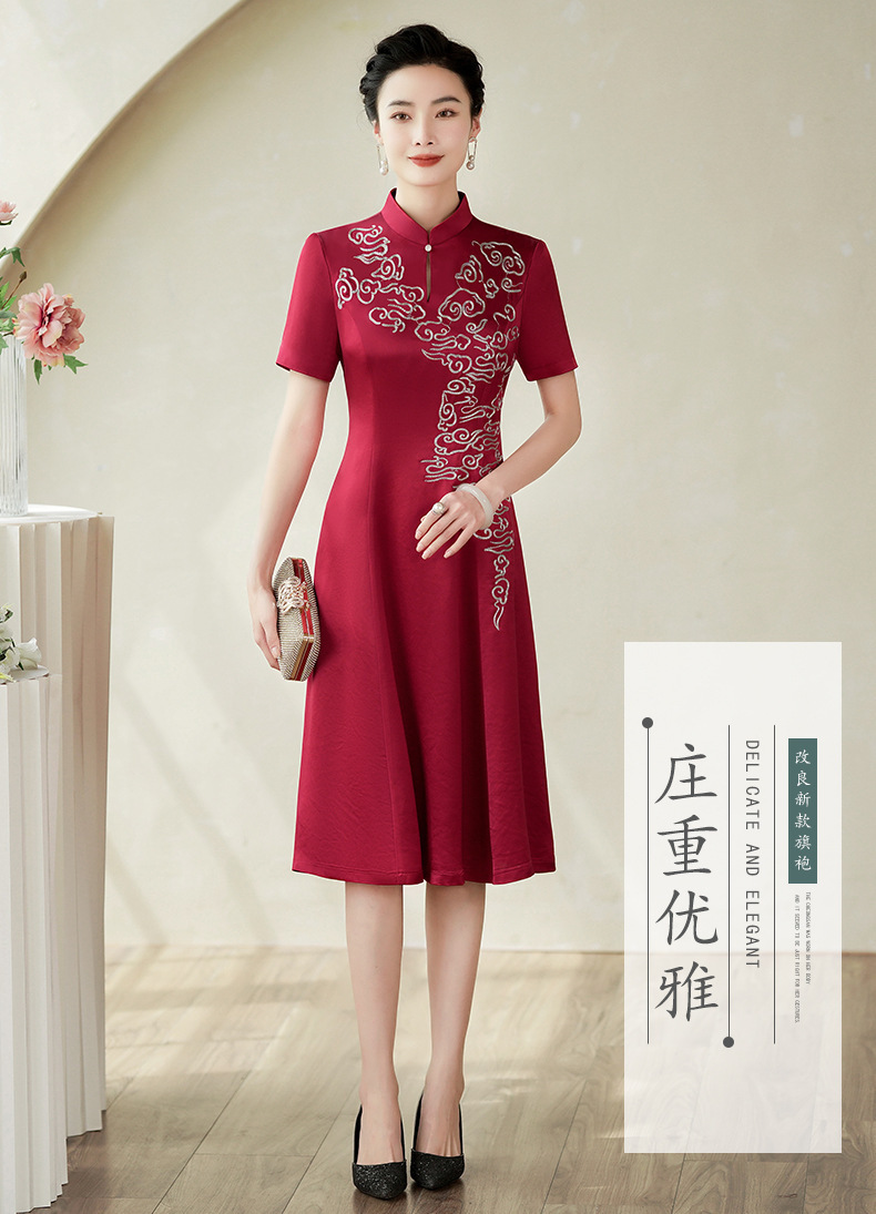 款中式醋酸敬酒妈妈装复古时尚年轻款旗袍连衣裙GY-23-197