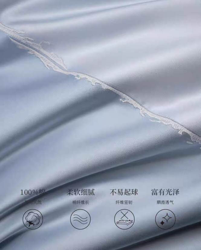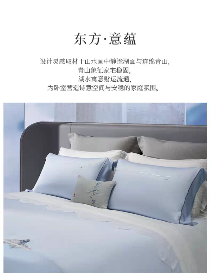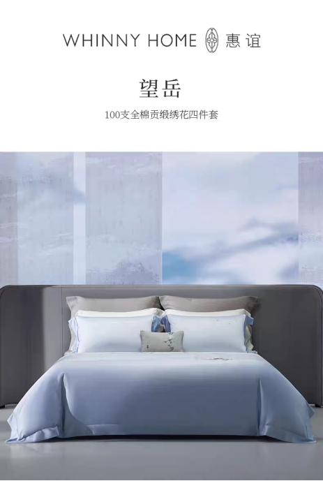 惠谊现代中式系列100支全棉新疆长绒棉刺绣四件套 望岳