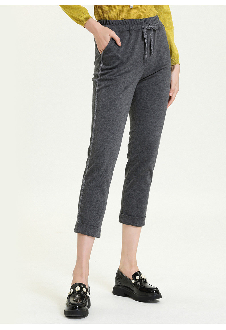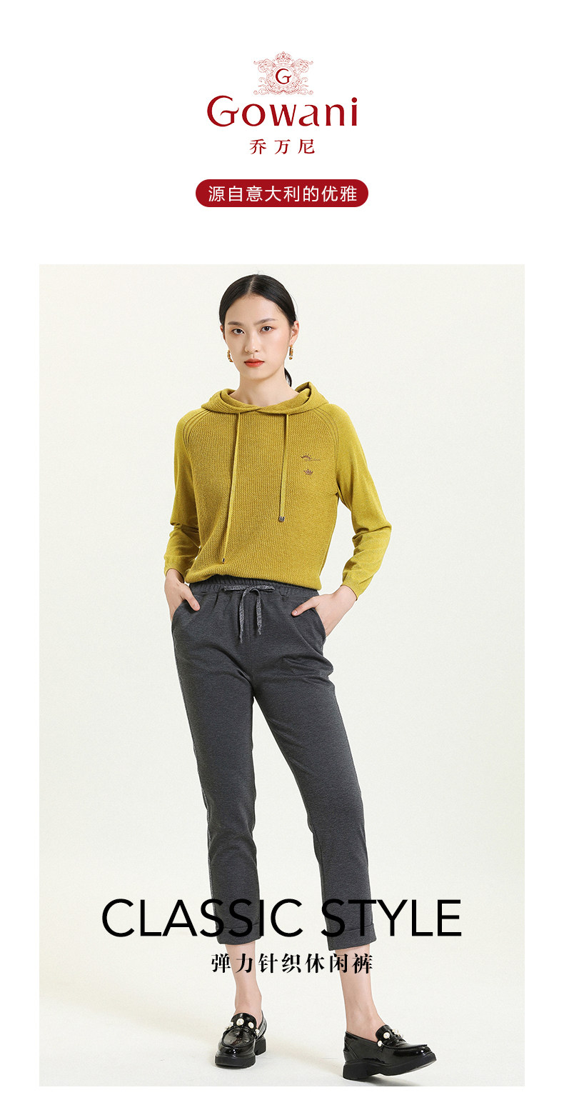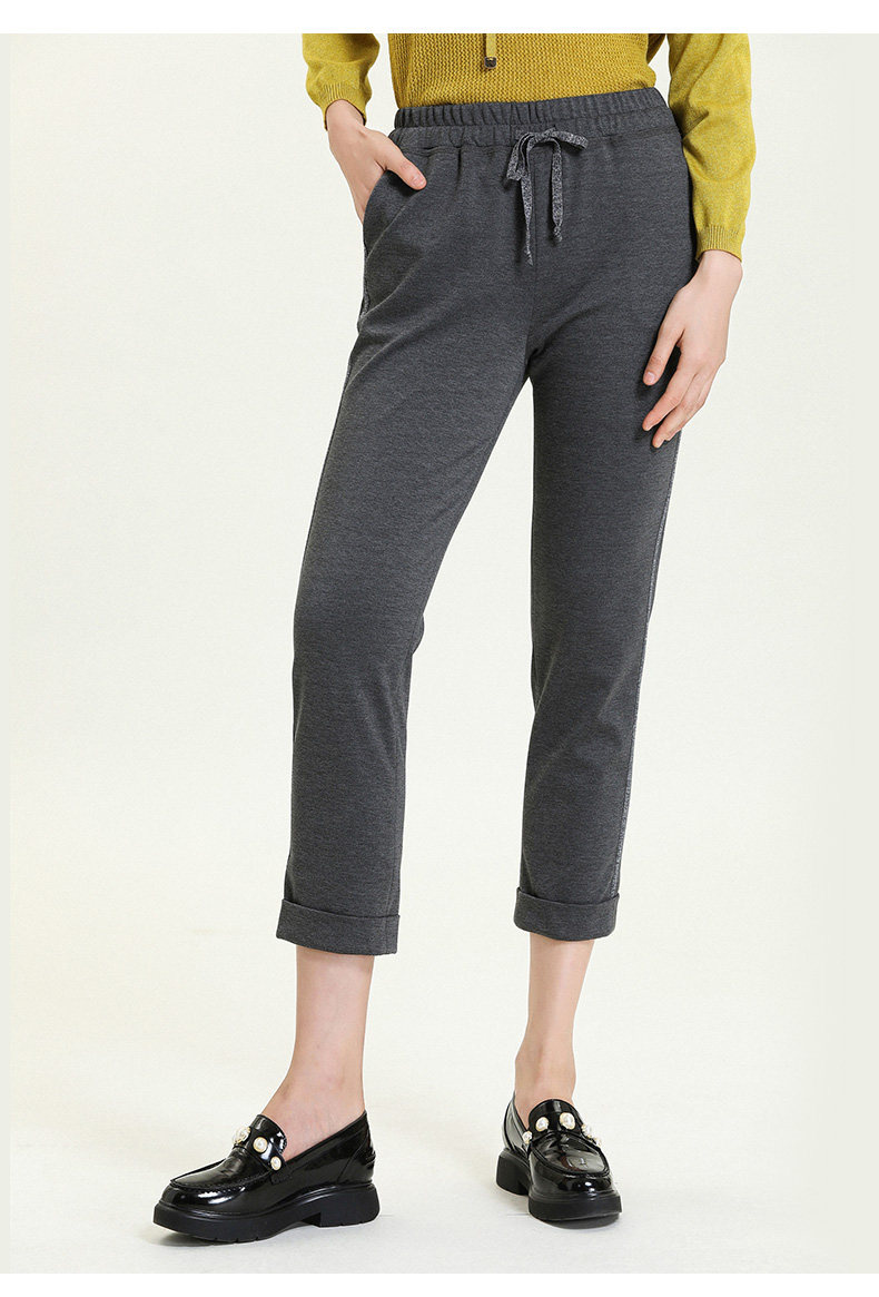 乔万尼秋季新品简约气质中腰舒适抽绳九分裤休闲裤女ES3F546
