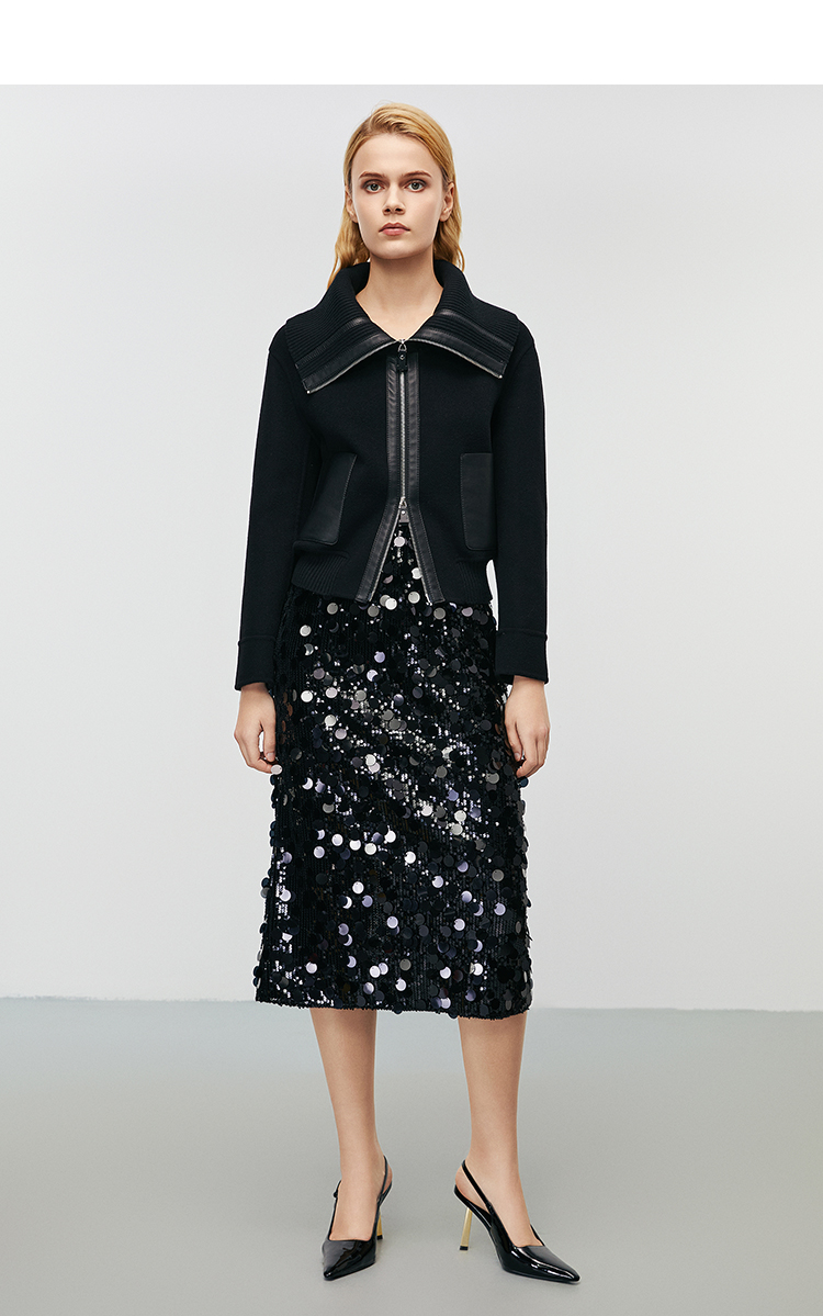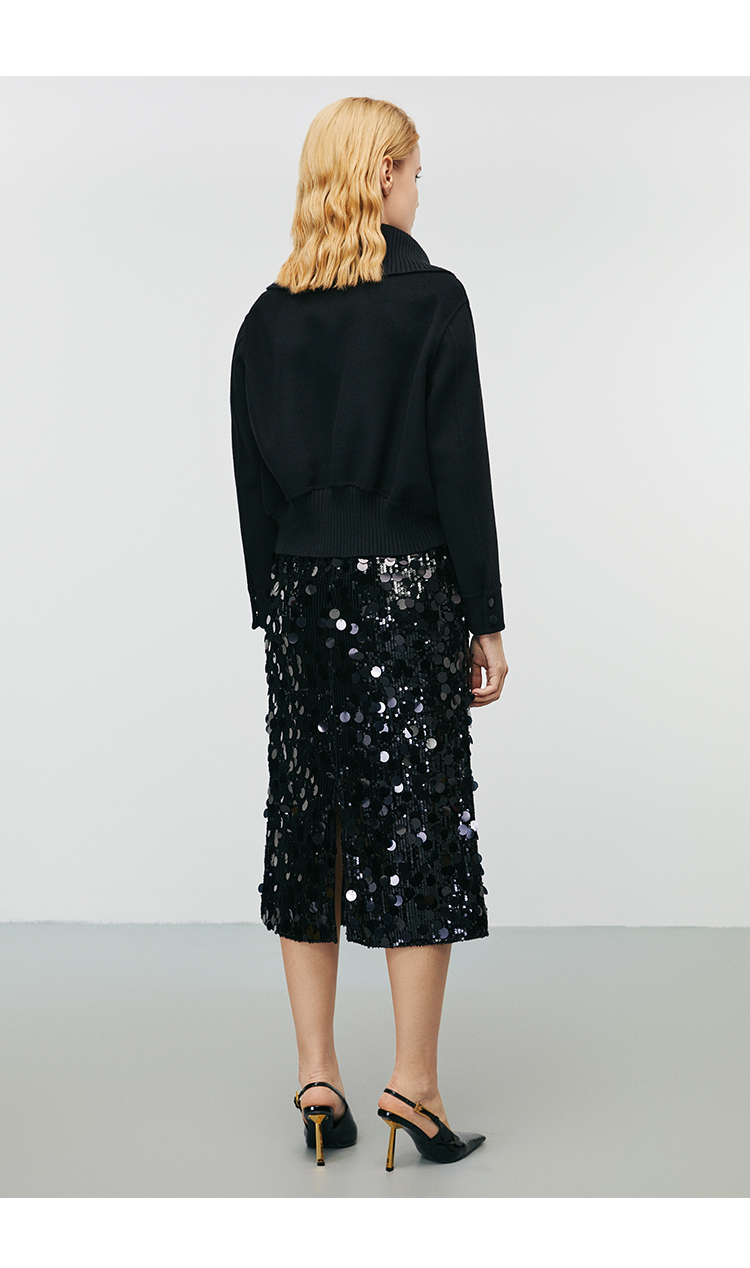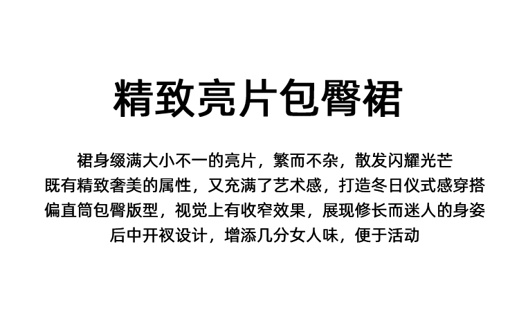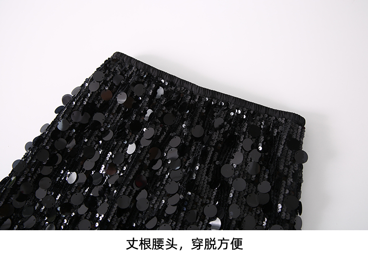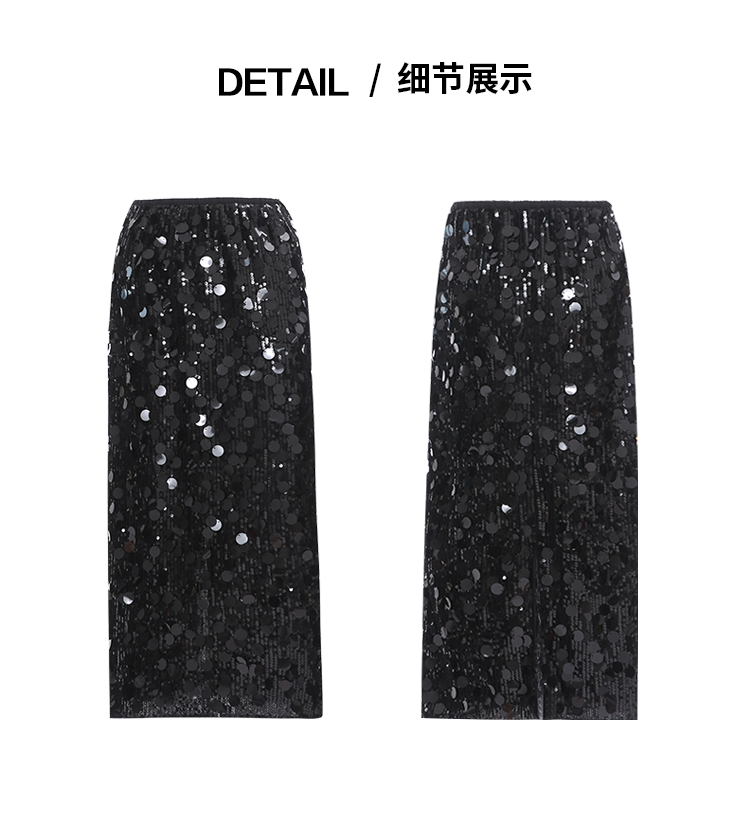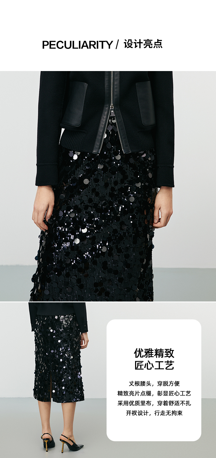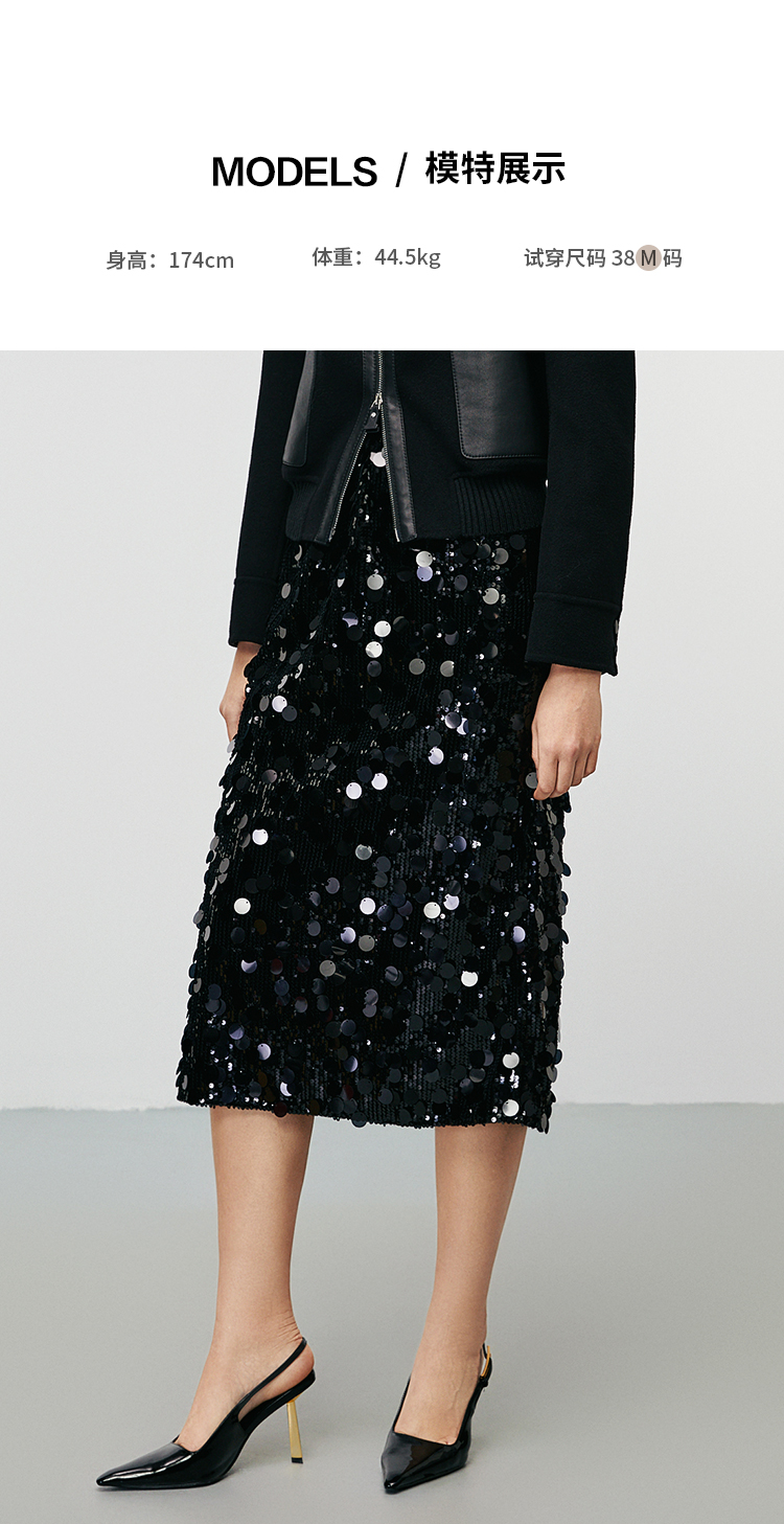 EITIE爱特爱精致高腰包臀直筒亮片黑色半身裙冬季新款8006704