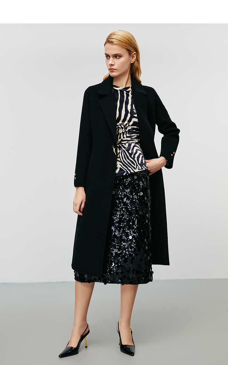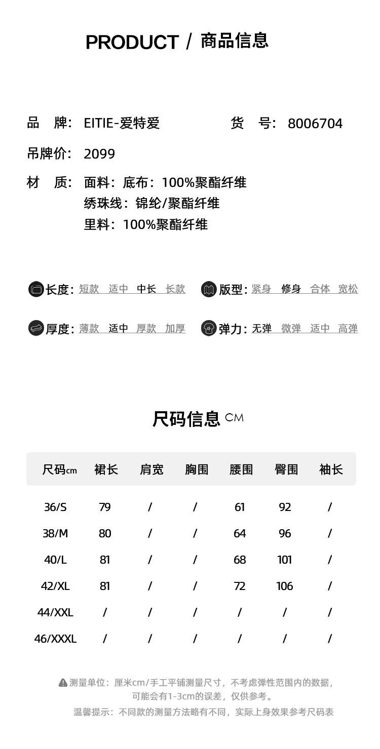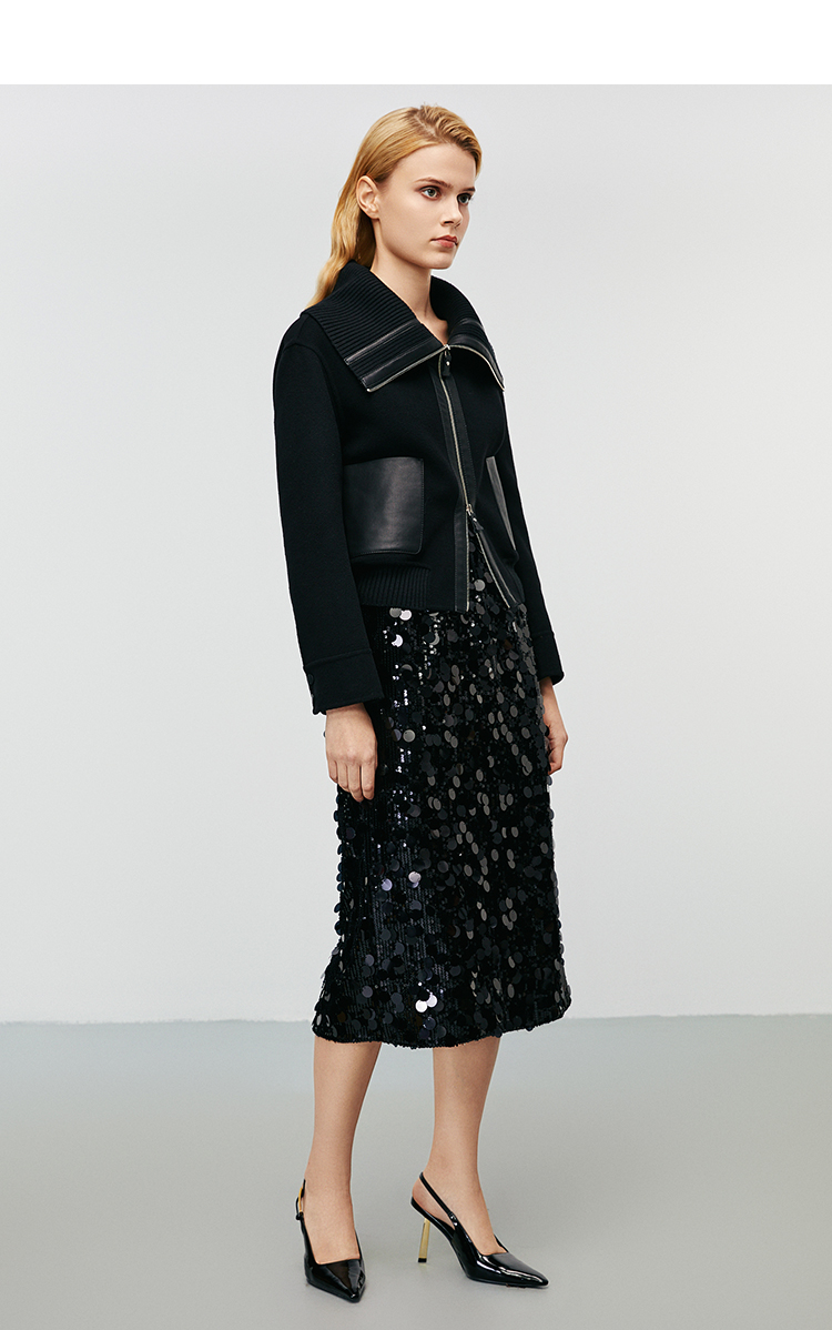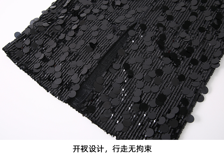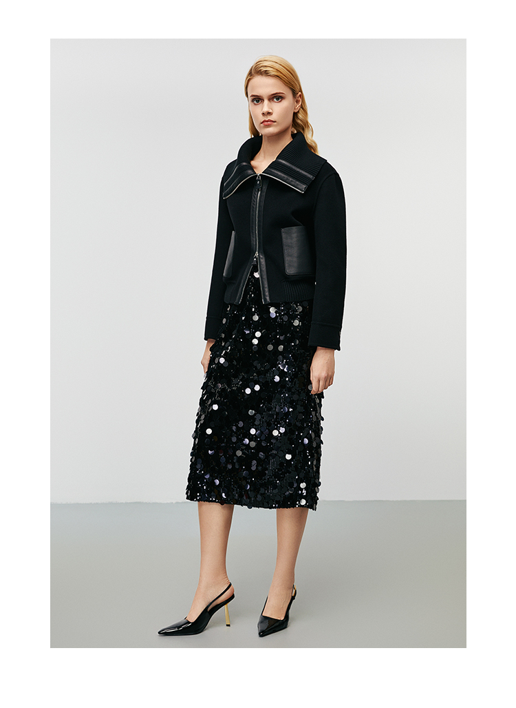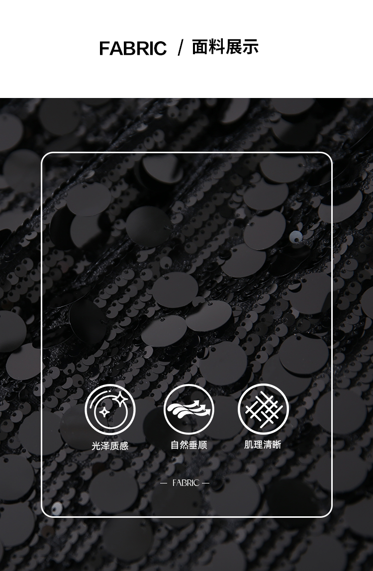 EITIE爱特爱精致高腰包臀直筒亮片黑色半身裙冬季新款8006704
