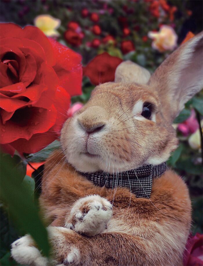 爱在花丛里摆POSE,喜欢躲到床底下,虽然我的脾气倔,但在主人为我拍照片时,我还是会乖乖的哦。这就是我——萌兔史大力!