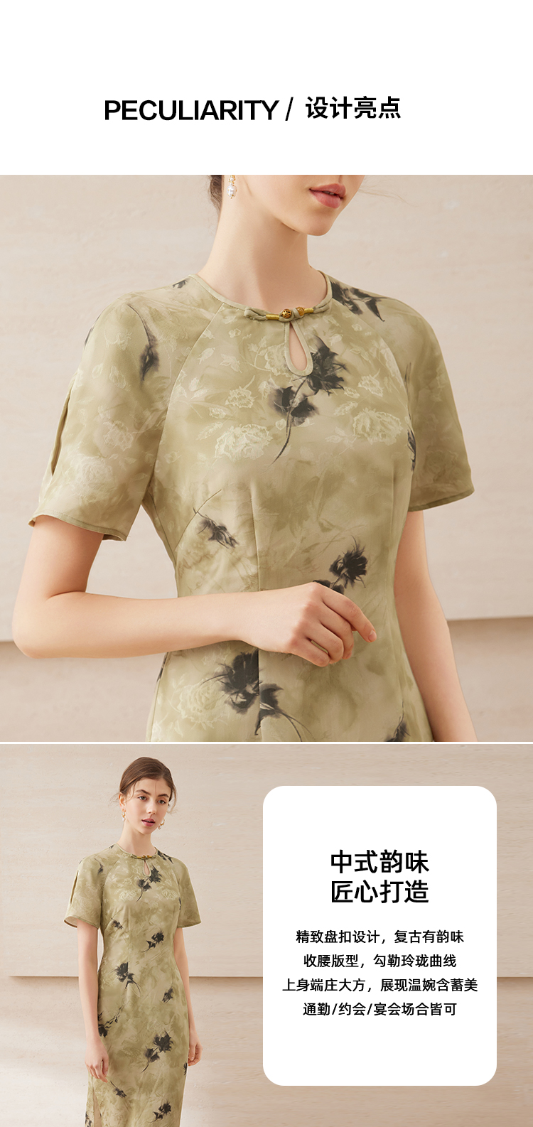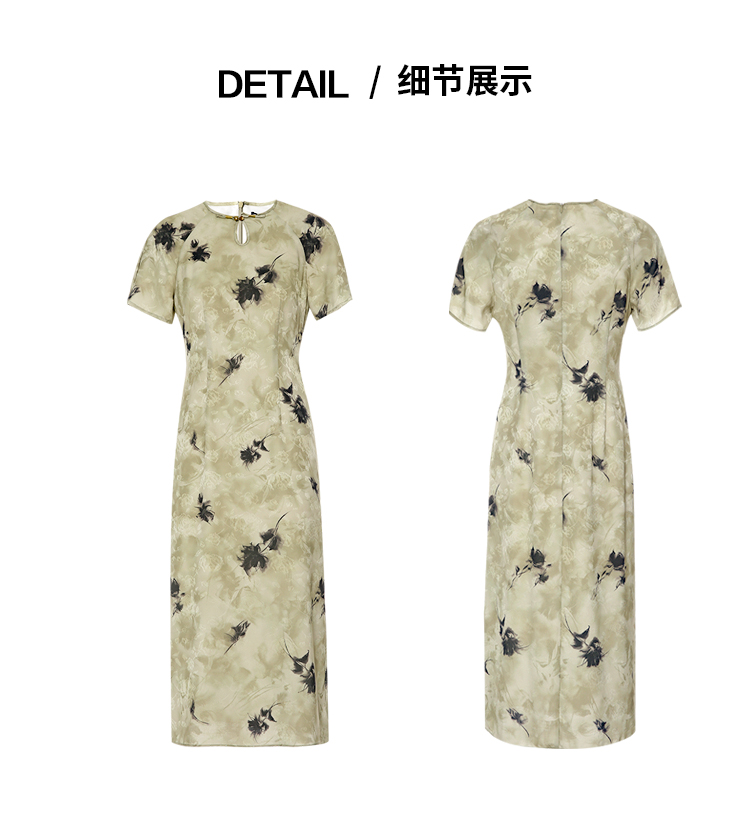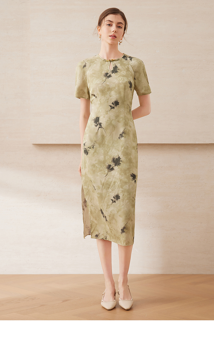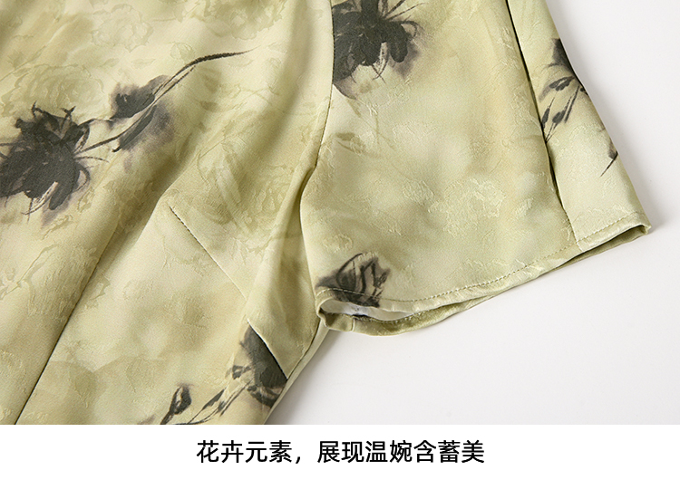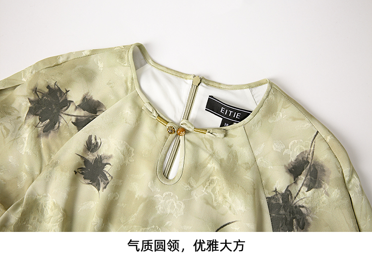【新中式印花旗袍连衣裙】EITIE爱特爱优雅清新绿色2025夏季新款B2507614