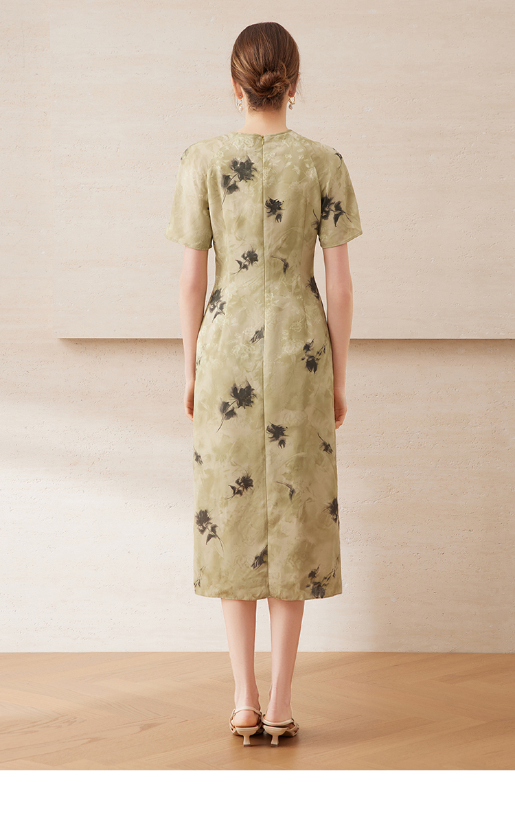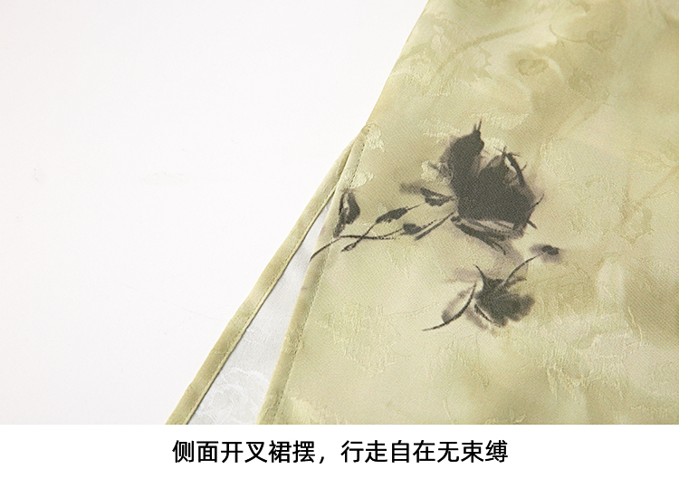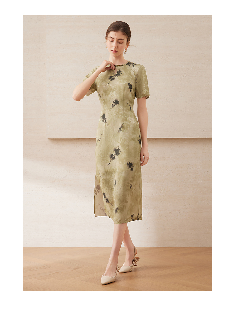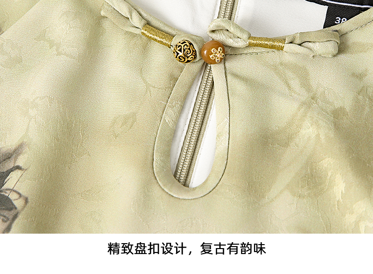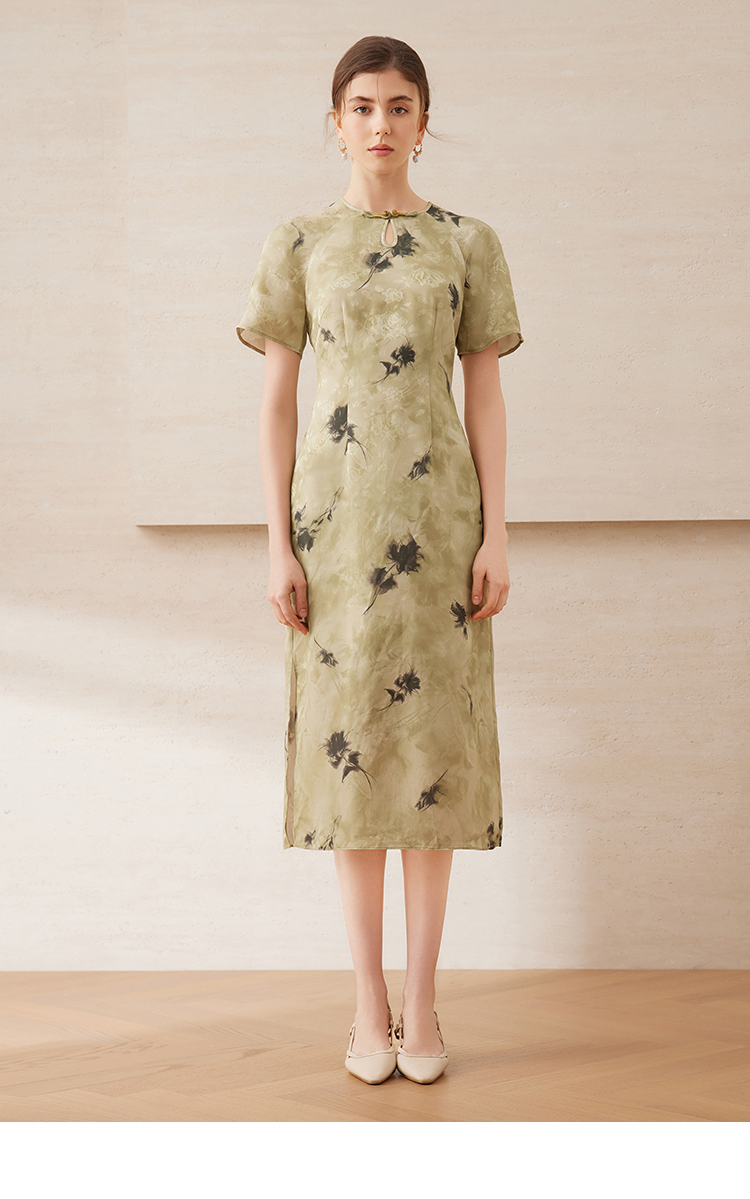 【新中式印花旗袍连衣裙】EITIE爱特爱优雅清新绿色2025夏季新款B2507614