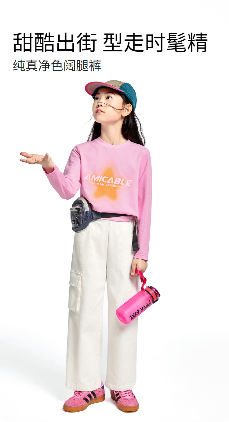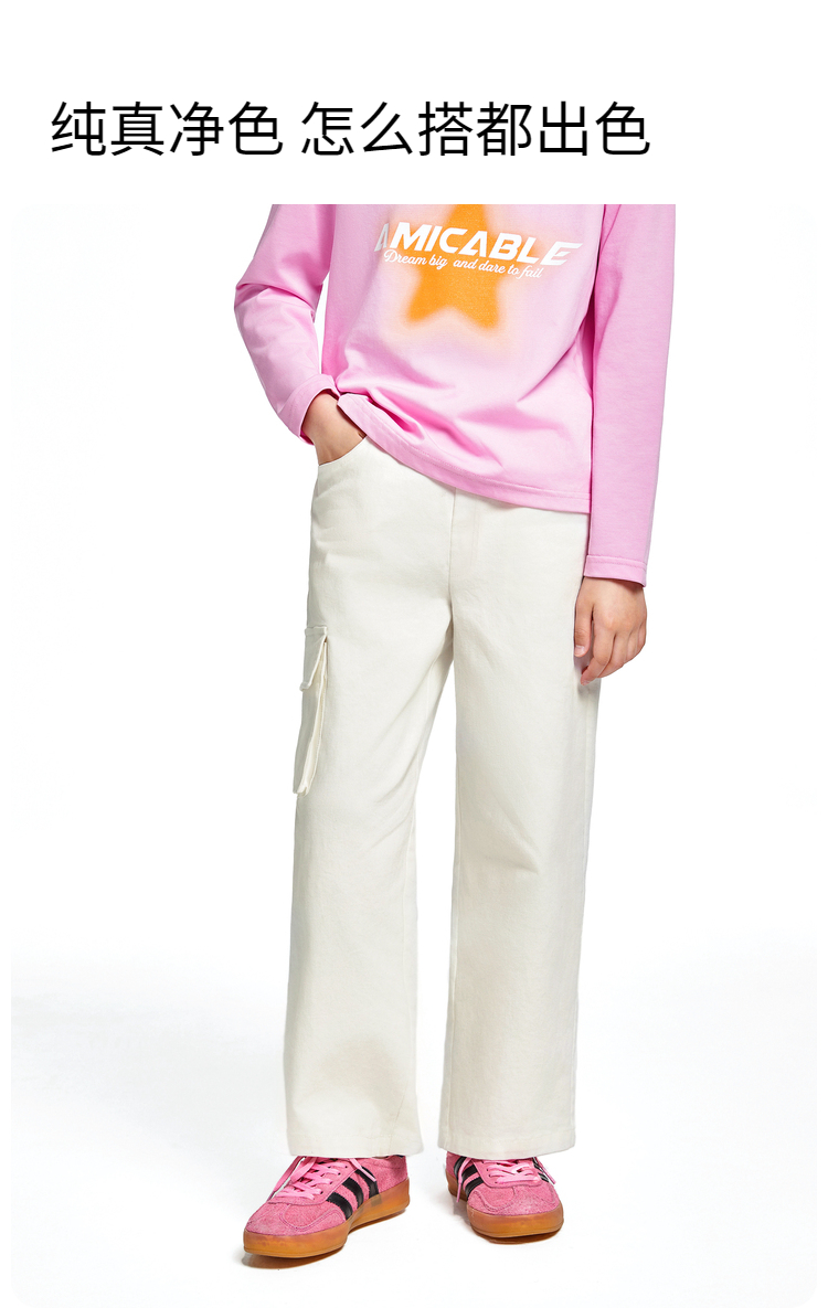 女童休闲单裤工装风运动长裤子阔腿裤新款安奈儿童装EG436518