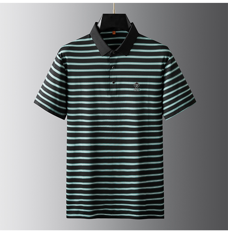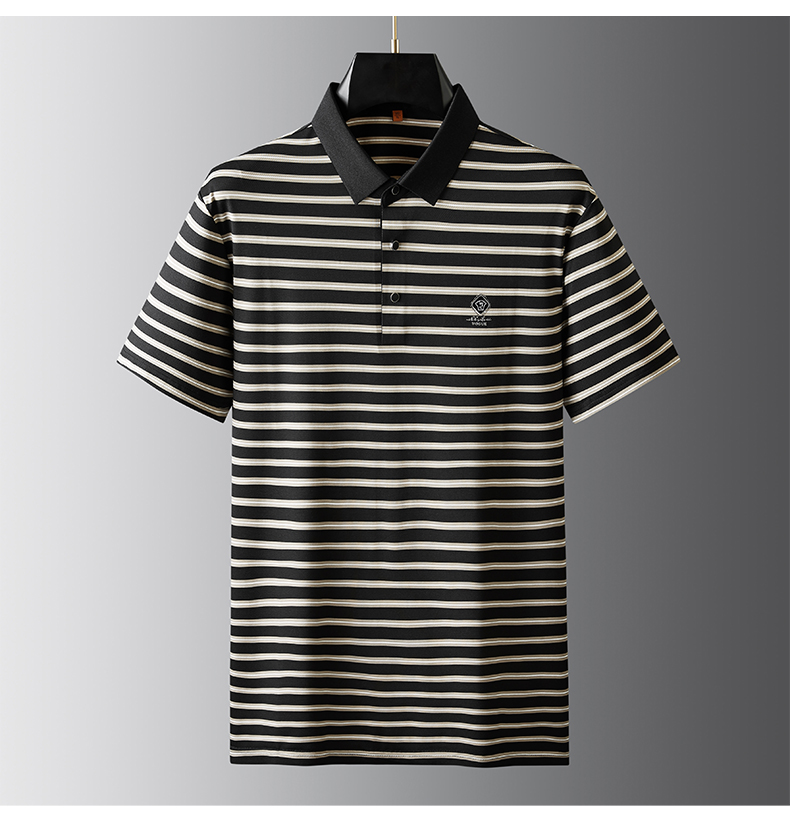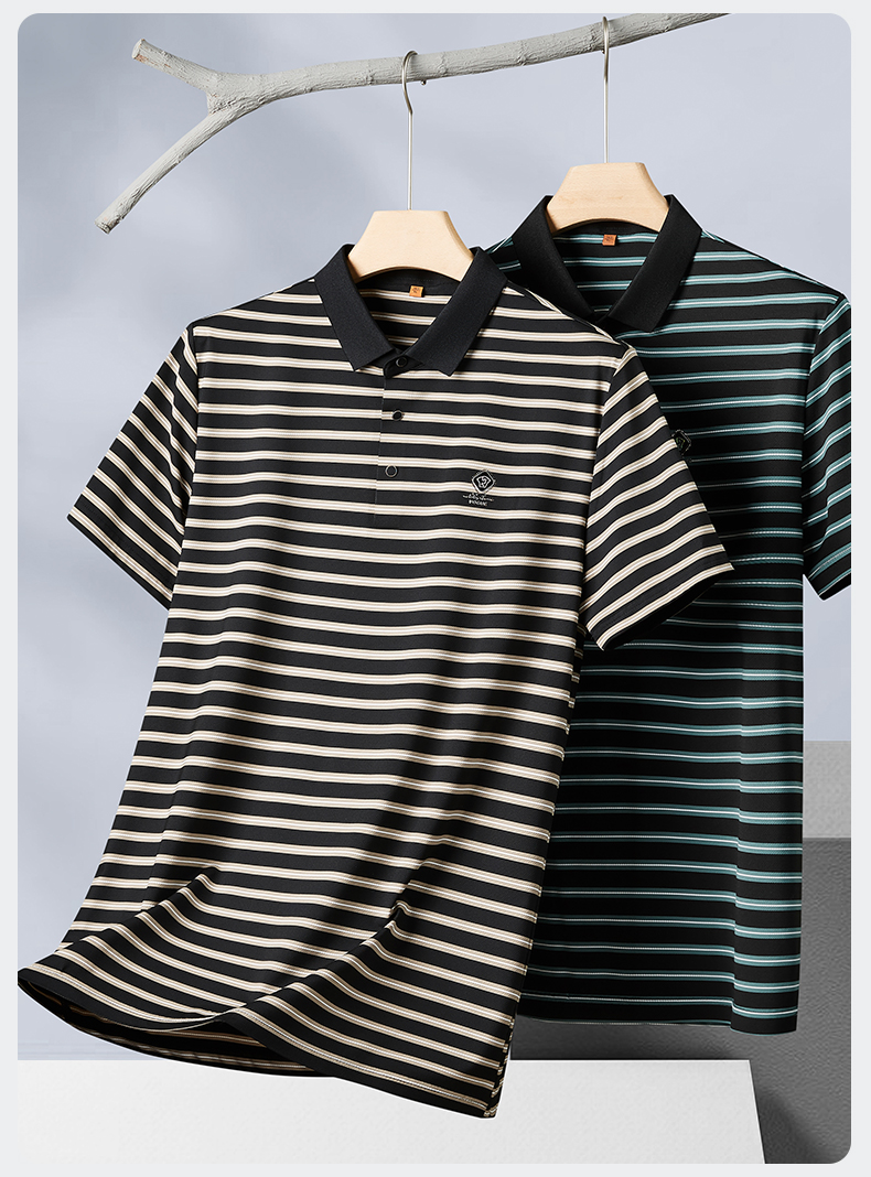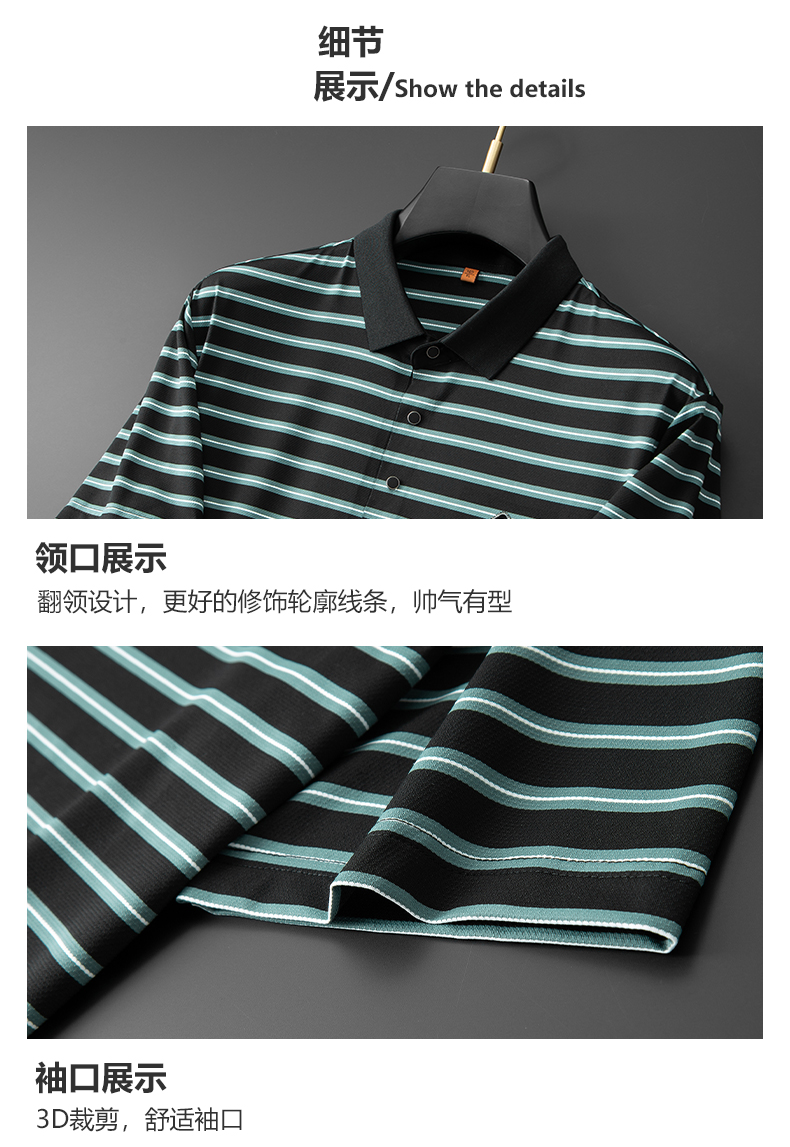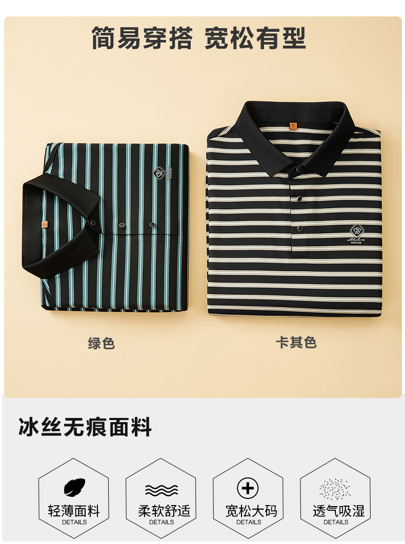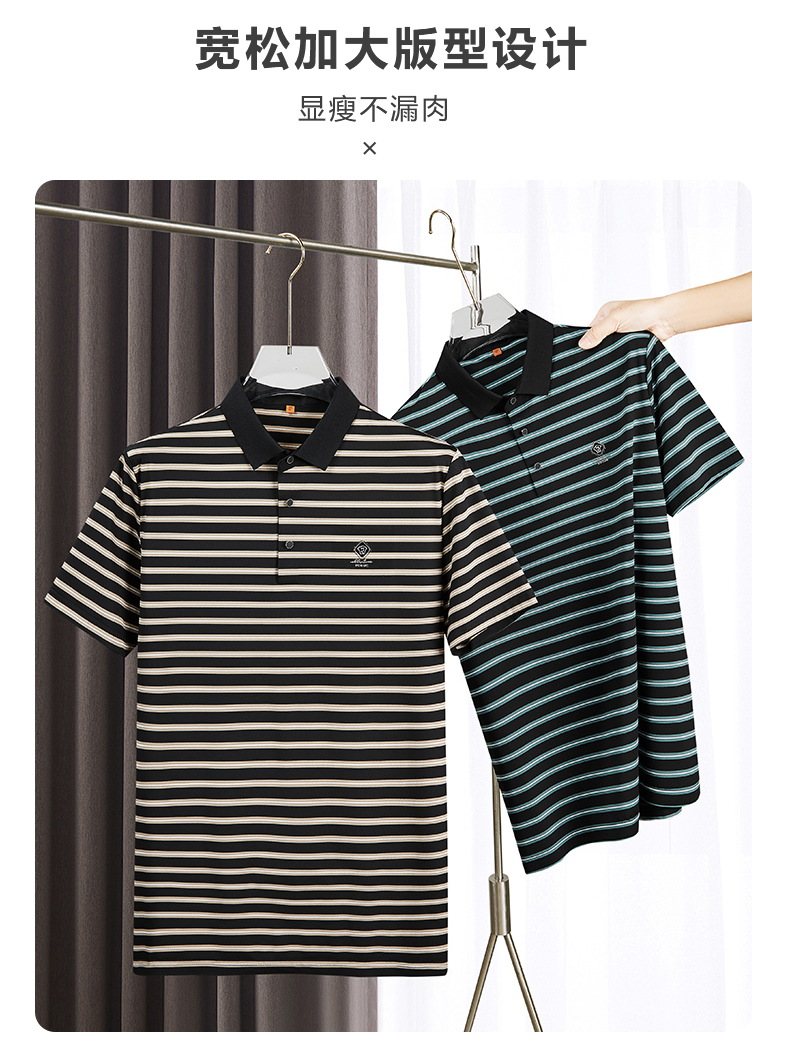 【冰丝高弹】【新款DDP】大依优型大码短袖Polo衫条纹翻领加肥加大男士大号弹力透气舒适夏季半袖