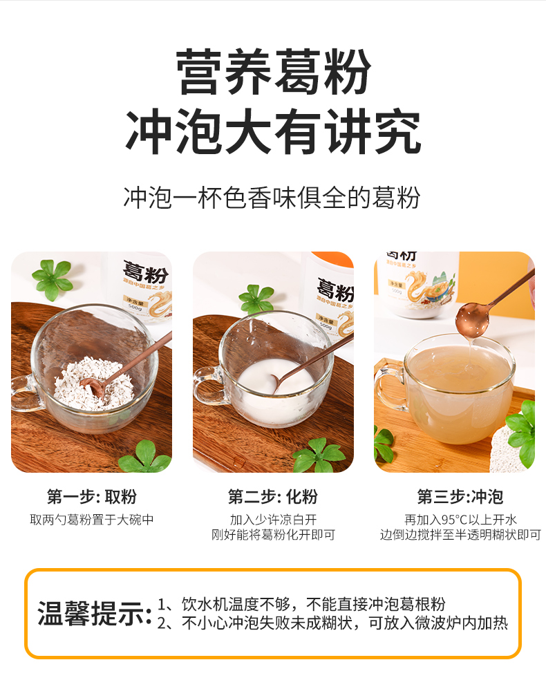 3.饮水机的水温不够,不能直接冲泡葛根粉。