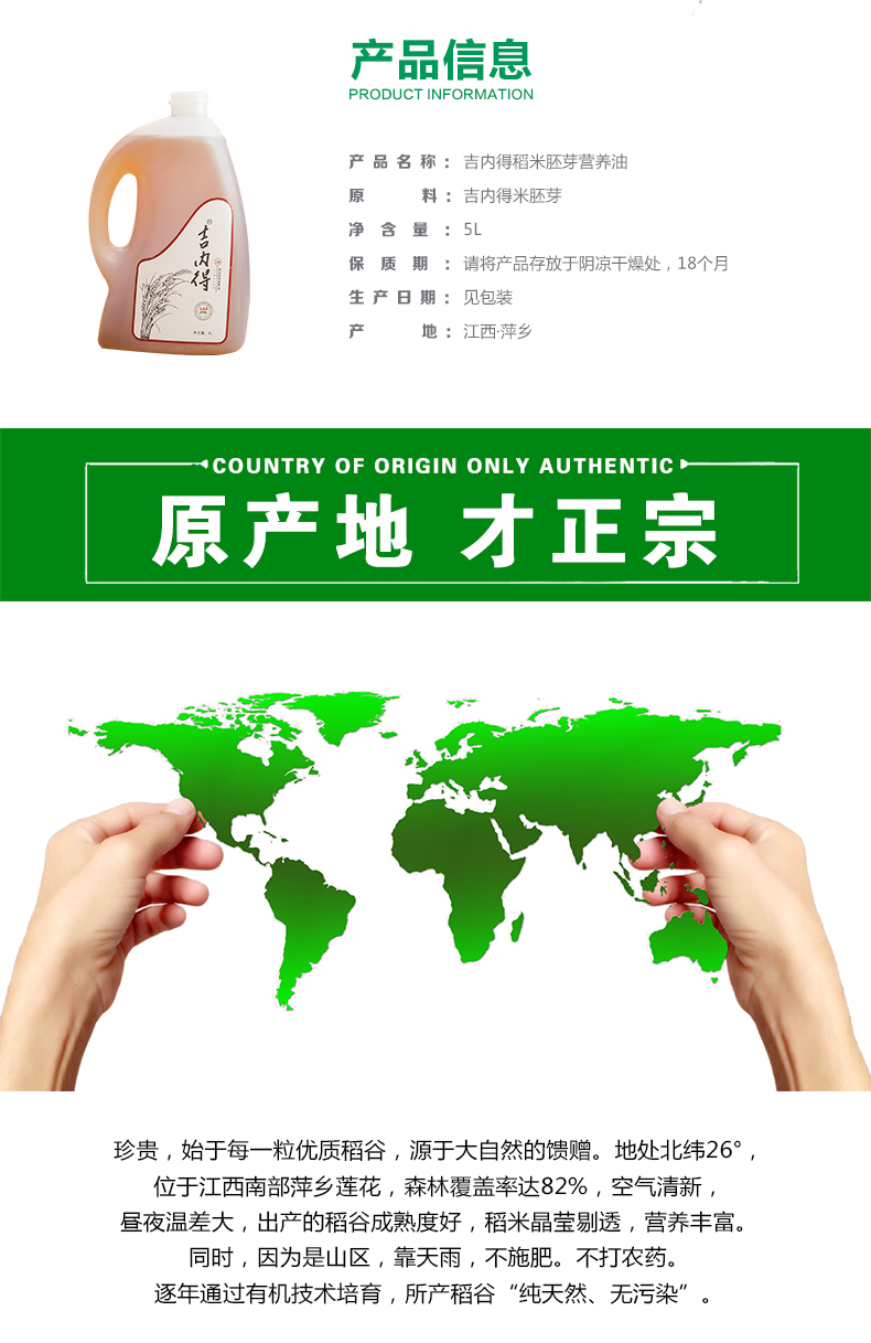 吉内得黄金富含谷维素胚芽稻米油 5L