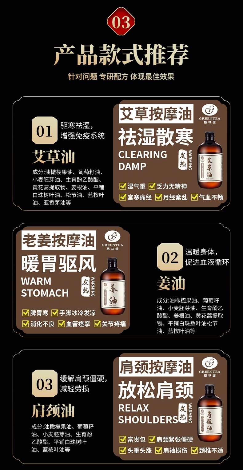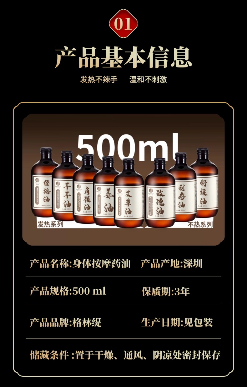 【药油 身体按摩油】500ml 99元2支任选 发热油不发热油艾草油肩颈油玫瑰油姜油舒缓油刮痧油经络油